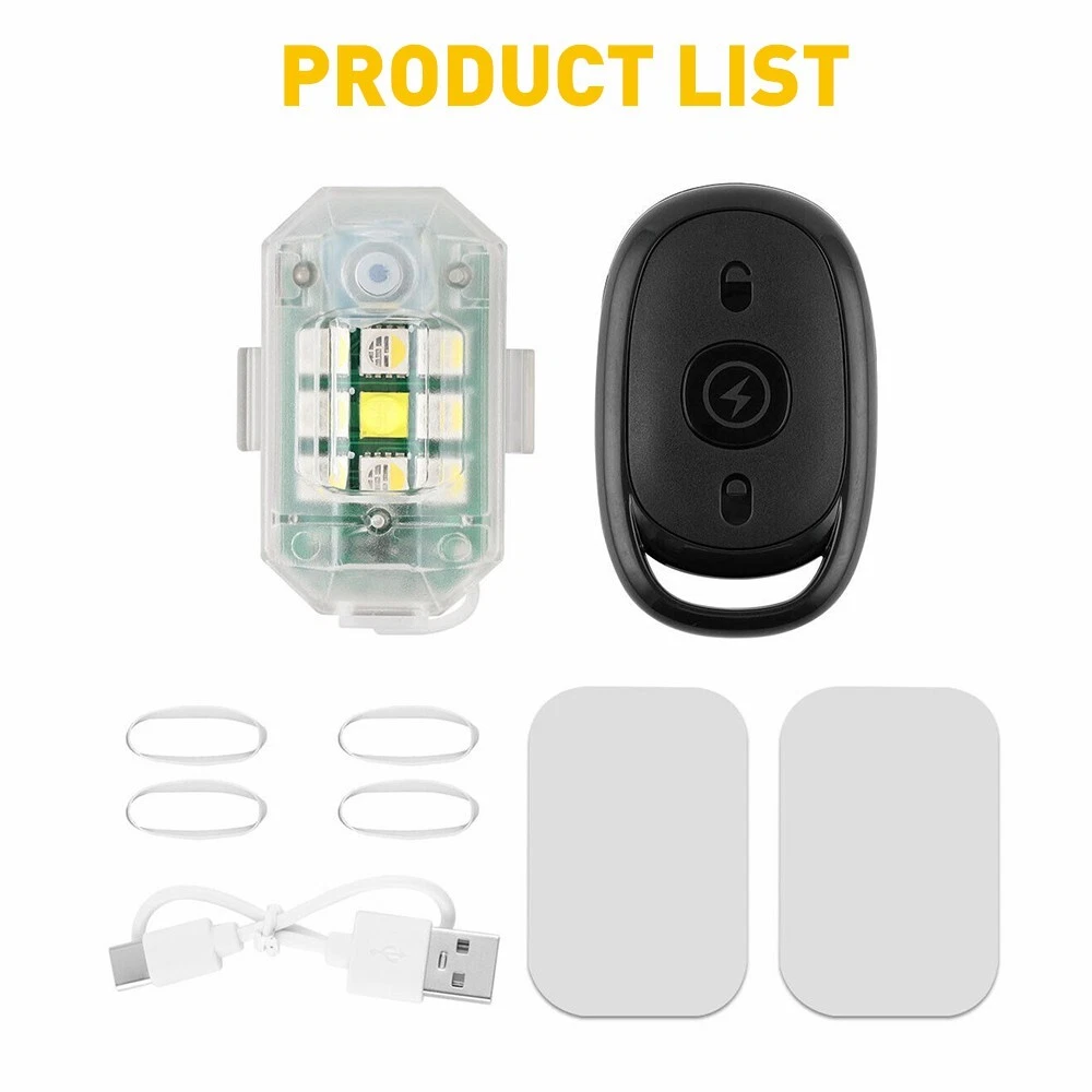 Specifications: Material:ABS Light color: Red/amber/green/blue/white/purple/ice blue Remote range:Within 7m Service time:60 hours in flight with high brightness / 120 hours in flight / 200 hours in low flight Light mode:cycle fast flash/cycle slow flash/fast slow flash/fast flash/slow flash/constant light/civil aviation mode Waterproof grade:IP68 Service life:50000+h Features: *High brightness This wireless LED with remote control lights up to 600 lumens and can be used as a temporary light source in addition to flashing. *Two installation methods 1. Paste it directly. 2. Tied with a rubber. *Multiple colors 7 Colors Rechargeable Flashing Lights High Brightness LED Wireless Strobe Light Specifications: Material:ABS Light color: Red/amber/green/blue/white/purple/ice blue Remote range:Within 7m Service time:60 hours in flight with high brightness / 120 hours in flight / 200 hours in low flight Light mode:cycle fast flash/cycle slow flash/fast slow flash/fast flash/slow flash/constant light/civil aviation mode Waterproof grade:IP68 Service life:50000+h Features: *High brightness This wireless LED with remote control lights up to 600 lumens and can be used as a temporary light source in addition to flashing. *Two installation methods 1. Paste it directly. 2. Tied with a rubber. *Multiple colors There are seven kinds of LED colors with high-brightness wicks for you to switch and enhance driving safety warnings and prevent rear-end collisions. *Long remote range The wireless remote control flashing light can remotely switch the light mode within 7 meters of flying in the air. *High waterproof grade Built-in 350mAh/3.7V battery and USB charging cable with long service life and waterproof performance to make it work even in harsh outdoor environments. Packaing include: 1*tail light 1*charging cable 2*strap 1*remote control Item Specifics Brand Unbranded Features High Brightness Rechargeable Waterproof Light Color Multicolor Lighting Technology LED Manufacturer Part Number M3 Aircraft light 1 Light 1 Remote Control Suitable For Tail Light Warning Strobe Light Type LED Strobe Light OE/OEM Part Number NA Universal Fitment Yes Country/Region of Manufacture China Manufacturer Warranty 2 Years Material ABS Remote range Within 7m Service time 60 hours in flight with high brightness Waterproof grade IP68 Service life 50000 h Packaing include 1*tail light 1*charging cable 2*strap 1*remote control Service life 50000 h Packaing include 1*tail light 1*charging cable 2*strap 1*remote control Payment We accept PayPal via eBay Secure Check-Out only. Immediate payment needs to be processed for items with Add to Cart option so that any promotional discounts can be applied to your order immediately. Shipping 1 .We do everything we can to ship your orders out as soon as possible. 2. Shipping and Handling: We process orders within two business day after the payment was clear. Returns Our 30-day Satisfaction Guarantee assures our customers that they will receive all orders promptly and exactly as described. In addition, it allows customers to return new and unused products in their original factory condition for any reason within 30 days from the date of purchase. 1. All returns must be pre-approved by AUXITO and have a return merchandise authorization(RMA) number. Unauthorized returns will not be accepted. 2. Buyers are responsible for appropriate packing, returning shipping cost, insurance and returning the item in "new" condition. Used items will not be accepted for return. 3. We will replace the returning item with an identical item, issue a full store credit or a full refund. Contact Us Our Working Time:(GMT+8)Monday to Friday,9:00-18:00. For inquires and customer support, please send your email via ebay email system. All emails will be responded to within 24 hours during business days. Feedbacks 1. We appreciate your business and strived to improve our customer service and our commitment to quality. 2. We will leave a positive feedback immediately after payment is received. We appreciate a positive feedback as much as you do. 3. If for some reason there is any issue with the purchase, please contact us prior to leaving feedback, and we will be glad to work with you to have it resolved. DESCRIPTION PAYMENT SHIPPING RETURN POLICY CONTACT US Hot Item left right High Quality Roof Trim Molding Kit Fit For Toyota Corolla 2009-2013 USD 18.99 146PCS For Toyota RAV4 Fender Door Hood Bumper Trim Clip Retainer Fastener Kit USD 10.92 4" Red Truck Long Performance High Flow Cold Air Intake Cone Dry Filter Cotton USD 27.54 190 PCS Bumper Fender Moulding Side Garnish Grille Retainer Clip ABS Various USD 10.44 Waterproof Motorcycle Handlebar Dual USB Phone Charger Cigarette Lighter Socket USD 13.29 Hot Item left right High Quality Roof Trim Molding Kit Fit For Toyota Corolla 2009-2013 USD 18.99 4" Red Truck Long Performance High Flow Cold Air Intake Cone Dry Filter Cotton USD 27.54 Waterproof Motorcycle Handlebar Dual USB Phone Charger Cigarette Lighter Socket USD 13.29 190 PCS Bumper Fender Moulding Side Garnish Grille Retainer Clip ABS Various USD 10.44 146PCS For Toyota RAV4 Fender Door Hood Bumper Trim Clip Retainer Fastener Kit USD 10.92 7 Colors Rechargeable Flashing Lights High Brightness LED Wireless Strobe Light Specifications: Material:ABS Light color: Red/amber/green/blue/white/purple/ice blue Remote range:Within 7m Service time:60 hours in flight with high brightness / 120 hours in flight / 200 hours in low flight Light mode:cycle fast flash/cycle slow flash/fast slow flash/fast flash/slow flash/constant light/civil aviation mode Waterproof grade:IP68 Service life:50000+h Features: *High brightness This wireless LED with remote control lights up to 600 lumens and can be used as a temporary light source in addition to flashing. *Two installation methods 1. Paste it directly. 2. Tied with a rubber. *Multiple colors There are seven kinds of LED colors with high-brightness wicks for you to switch and enhance driving s