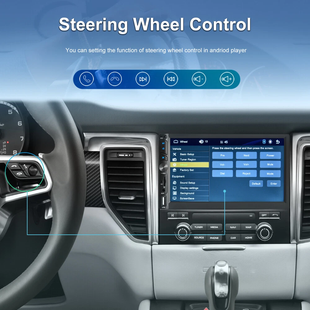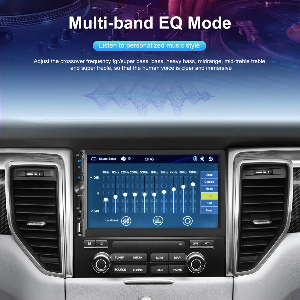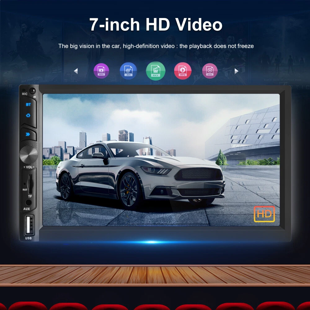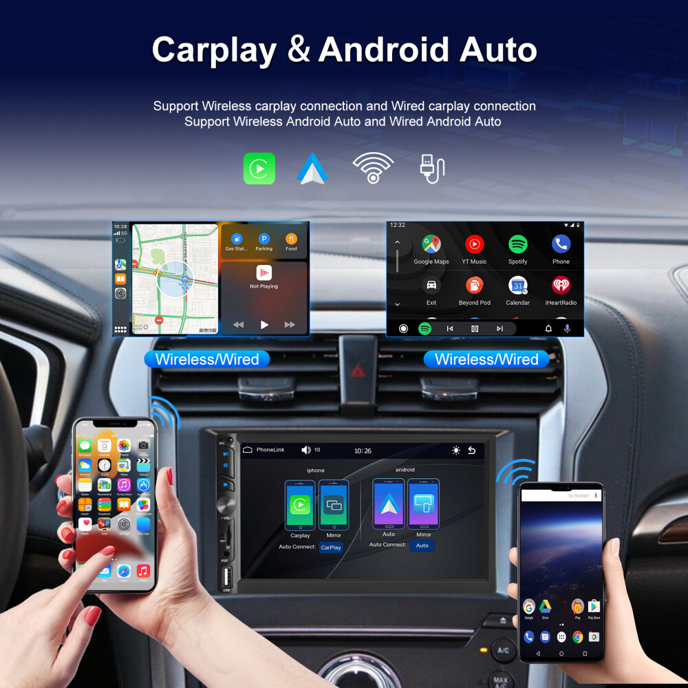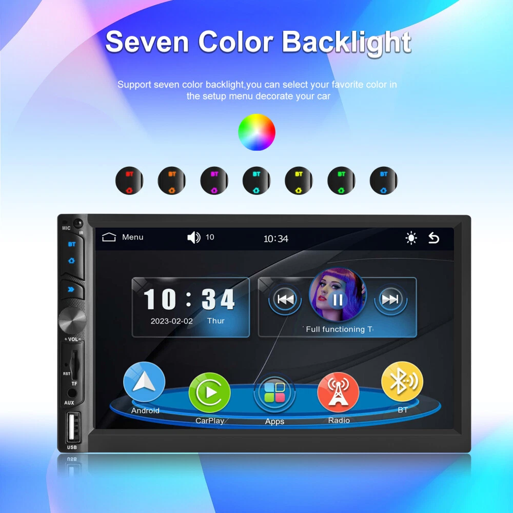 Double Din 7" Car Stereo Apple Carplay & Android Auto Play MP5 Radio+Camera Description Features : ● Wireless Carplay: You can choose wired connection or wireless connection to carplay, connect to Apple mobile phone, access mobile phone address book, mail, notification, map navigation, music, video and other information, and realize voice control. ● Wireless Android auto: The Wireless Android auto car system can closely integrate the user's Android phone and player, and realize navigation, make calls, send and receive information, listen to music and other operations through data cable connection. ●Screen: 7-inch high-definition video playback. ●Mirror Link: Support Android/ Iphone Mirror Link,through phone's original USB line Can synchronized to the on-board screen,which can support Apple mobile phone 13.4 version, Android mobile phone version 10.1. More than this version or does not support mobile phones, need to upgrade the software after the original factory debugging. ●Built-in Bluetooth function, can connect to phone, and handsfree calling, more safer when driving car, bluetooth music play. ●Various UI theme wallpapers to choose from, switch styles at any time, bringing a different visual experience. ●FM radio: You can listen to real-time traffic, news boradcasts, weather forecasts, etc receiver 18 preset Store Function. ●Support Steering wheel control function : Quickly switch functions which you want with your car's steering wheel,more convenient. ● Rear view camera input function(optional): Need to choose the camera, if connect to a car backup camera, the car stereo monitor will turn to rear view reversing details automatically(require optional). ● Colorful backlight settings:Support seven color backlight,you can select your favorite color in the setup menu decorate your car. ●AUX audio input interface supports external MP3, mobile phones, music players, etc. ●Multi-function USB: support USB input to play music, as well as high current USB output to be charged mobile phone Specification : System: F133 Size: 7.0 inches Voltage: 12V Audio amplifier: 7388 Bluetooth: 5.1 Screen resolution: 1024*600 Output power: 4*45W USB interface: USB2.0 Reversing input: CVBS&AHD720 Radio range: FM 87.5-108.0MHZ (Europe) External microphone: support DVR: Support (designated USB recorder) Working temperature: -20℃ ~ 70℃ Factory Settings Key: 113266 Audio format: MP3/WMA/WAV/APE/FLAC Video format: MKV/AVI/TS/TP/MP4/M4V Max Bit Rate (50Mbps-80Mbps) Languages: English, French, Spanish, Russian, Italian, Portuguese, German, Polish, Chinese (simplified), Turkish, Arabic, Hebrew Package Included : 1 x car player 1 x Power Cable 1 x Horn Cable 1 x Remote Control 1 x external microphone 1 x User Manual Payment Shipping Returns Contact Us 1. Only accept Paypal 2. All major credit cards are accepted through our secure payment processor PayPal. 3. We ship to your Paypal address. Please make sure your Paypal address is correct before you pay. Please make sure your eBay shipping address is correct for your receiving. We will try our best to solve any dispute and try our best to satisfy you. If you are not satisfied with our product, please contact first . We will gladly accept any return and give a full refund (minus shipping costs) on any item. The item must be returned to us in original condition with the health and hygiene seal intact. If you have not got it within the shipping time, please no hesitate to contact us. We will check it for you with the post office and customs. Because sometimes it will be delayed for traffic or flight jams. Please do not open dispute to us. We will take responsibility to resend or refund for any lost item. Please contact us in time if any enquriy under any circumstances. We greatly appreciate your positive feedback and we'll do the same to you. We care about our valued customers, and will always try our best to help you, if you have any problems. Working time: GMT+8 / 9:00-18:30 in normal we will reply you in one working day.