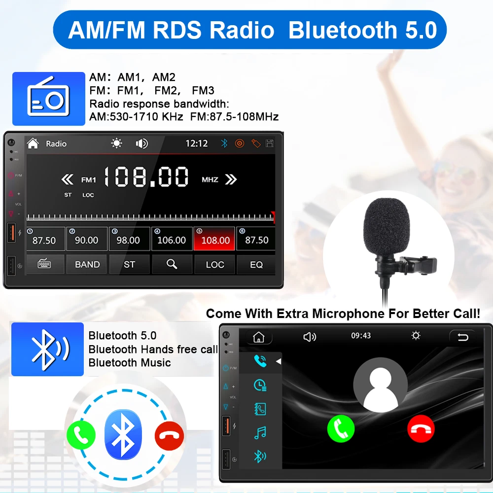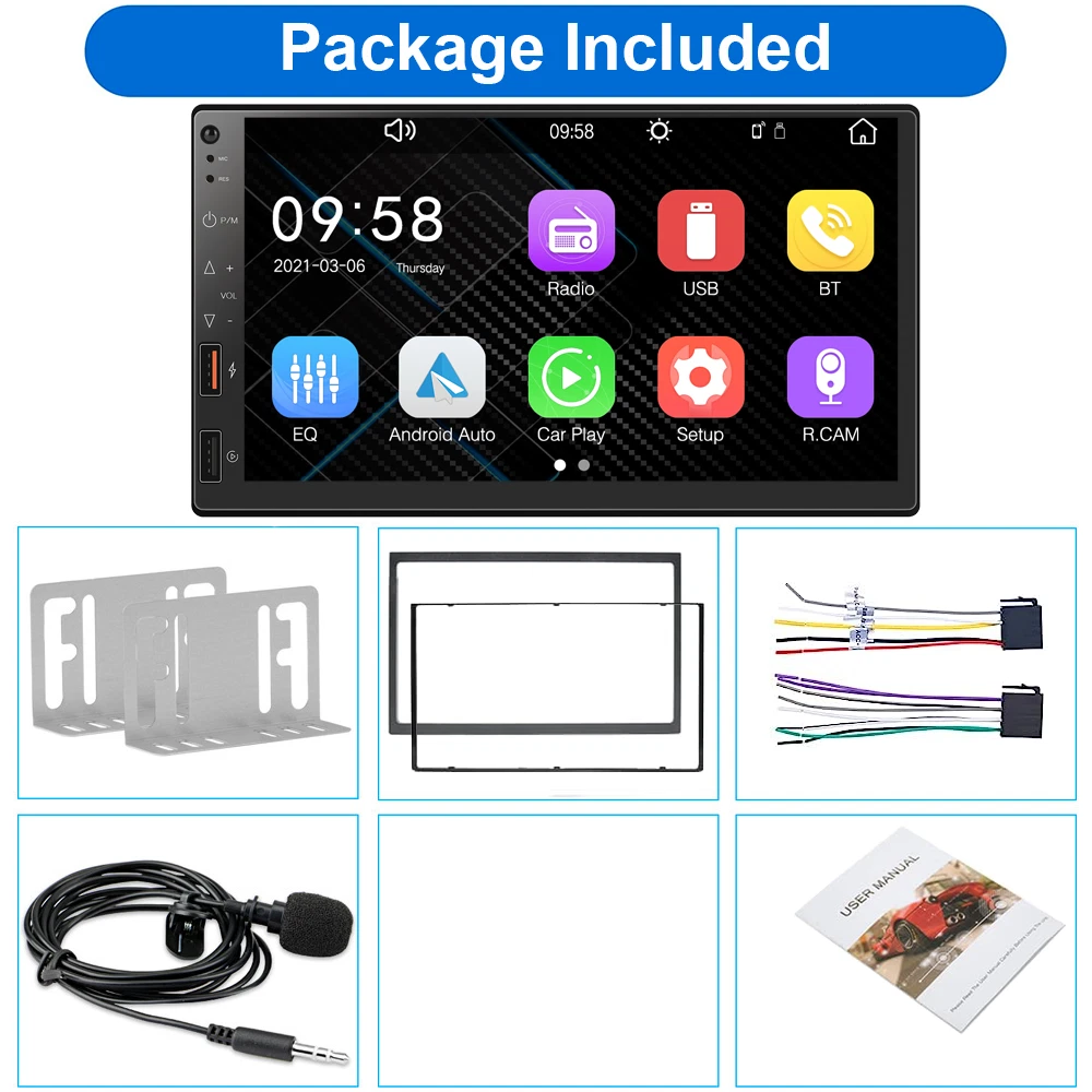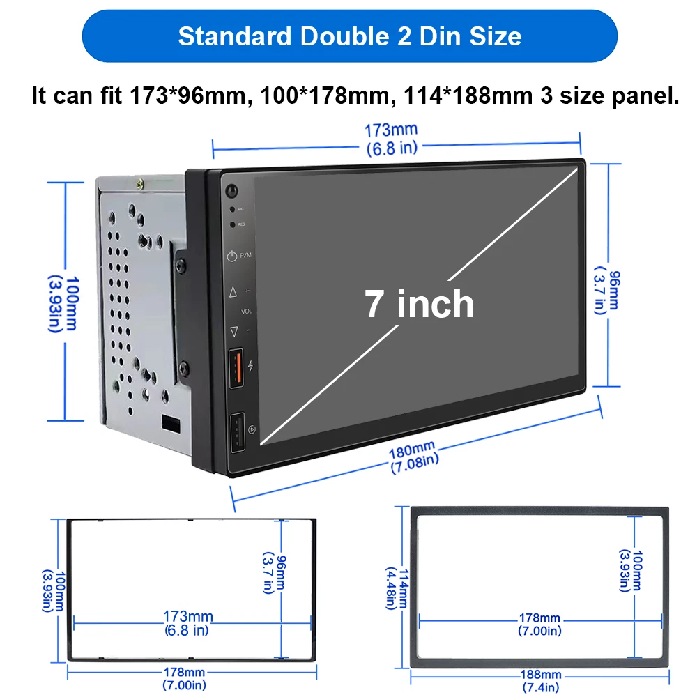 Universal 7" Double 2Din Touch Screen Car Stereo Radio MP5 Player Wireless Apple CarPlay & Android Auto Mirror Link EQ DSP Note:Please Check Radio's Size with Car Dashboard Before Buying !!! Features: 1. Wireless/Wired Apple CarPlay & Android Auto 2. Smartphone Mirror Link Android/iOS 3. 30 Band EQ, DSP 4. Bluetooth 5.0 5. 7 inch Capacitve Multi-touch Screen 6. Reverse Rear View Camera Input 7. Audio Output, Video Output, Audio Output, Audio Input 8. Original Car Steering Wheel Control 9. AM/FM RDS Radio 10. AUX Input, U disk (audio/video/photo) 11. QC3.0 phone fast charging port 12. 7 Colors Key Light Product details : Model: 7247 Unit Size: Double 2 Din Voltage: DC 12V Type: Car MP5 Player System: Linux Configuration: Full capacitive touch screen Solution: 8268K Screen Size: 7 inches Resolution: 1024x600 Panel Size: 173x96mm/178x100mm Lighting Panel: Colored lights Host Depth: 96mm Single Weight: 680g Mirrorlink: Mirrorlink (Android / iPhone) Apple Carplay & Android auto: Support wireless or wire connection Radio: FM / AM RDS Radio Chip: ZT0811 Power: 60W Audio Output: 4x 50W Temperature: -10 ~ 60 ℃ Reverse Image: Support Brake Reminder: Support Steering Wheel Control: Support Bluetooth: Version 5.0 Radio Frequency: FM 87.5 ~ 108MHz AM 522 ~ 1620KHZ Video Output: Support USB Interface: Front panel USB 2.0 Reset Button: Have Button: Touch button RCA Terminal: 2 audio output, 1 reverse input, 1 video input, 2 video output AUX Input: Have Audio Format: MP3 / WMA / AAC / APE / OGG / M4A / RA / WAV Video Format: H264 DIVX HD (720P 1080I 1080P) AVI / FLV / MKV / RMVB / MPEG / ASF / TS / H264 / QT Picture Format: JPEG / PNG / BMP / GIF / TIFF Language: English / Spanish / Portuguese / Simplified Chinese / Chinese / Traditional Chinese / German / French / Turkish / Japanese / Russian / Italian / Polish / Dutch / Danish / Greek / Israelis Package Included: 1 x Car MP5 Player 2 x Power Cable 1 x Microphone 1 x User Manual Payment 1. We only accept payment via PayPal, other payment is not acceptable. 2. Please make sure your shipping address is the same of your PayPal address before you pay. Shipping 1. We ship to Worldwide,e xcluded some far away places. 2. We only ship to confirmed PAYPAL address; your PAYPAL address must match your Shipping address. 3. Any non-received items caused by invalid address registered on PayPal are not in our full refund or replacement policy. Shipping fee has including the local handing and packaging fee. 4. All the items will be shipping within 1-2 working days after receiving the payment, except some holidays. 5. When the shipping method is express delivery, some areas need to pay remote fees to the courier company. Taxes, Customs & Duties 1. Some countries are required to collect customs duties. Please confirm your local customs duties before placing orders. 2. We will not be responsible for any custom delay or tax, because transit time is highly depended and provided by postal Service. Returns 1. If you have not satisfied as you received the item, please return it within 30 days for a replacement or money back. Please contact us before you return it. 2. All returned items must be in the original packaging with all components and accessories included, and you must provide us the return shipping information (The shipment or the tracking number) 3. Return shipping fee is to be paid by the buyers. We will not be responsible for any custom duty or import tax. Warranty 1.One Year Manufacturer's Warranty for defective items (excluding items damaged and/or misused after receipt). 2.Defective items must be reported and returned to us within the warranty period (and in the original packaging, if possible). You must tell us what the defect is and give us your eBay ID. We do not repair or replace items with an expired warranty. Feedback
