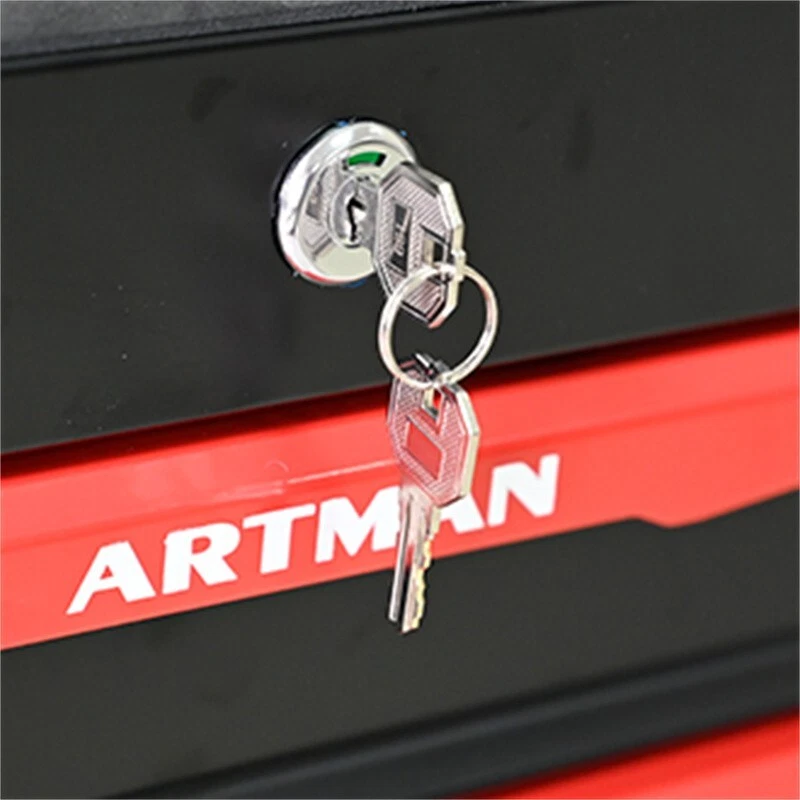 Model: Does not apply Type: Tool Chest Item Weight: 56 lb Item Height: 25.83 in Number of Drawers: 7 Item Width: 12.99 in gtin13: Does Not Apply MPN: Does not apply Number of Items: 1 Finish: Powder Coating Material: Steel Brand: ARTMAN UPC: Does Not Apply Color: Black+Red Item Length: 20.63 in Features: Keyed Lock, Lockable, Wheels, With Handle Country/Region of Manufacture: China