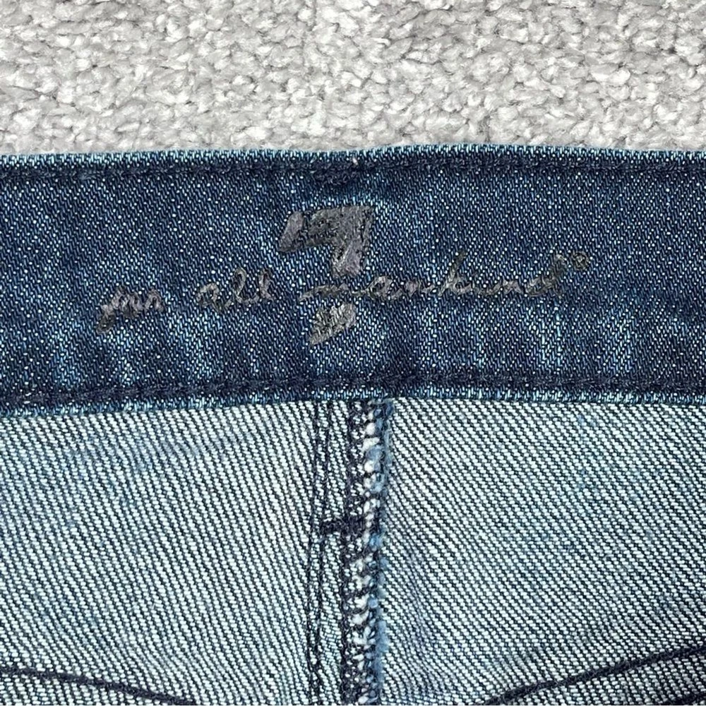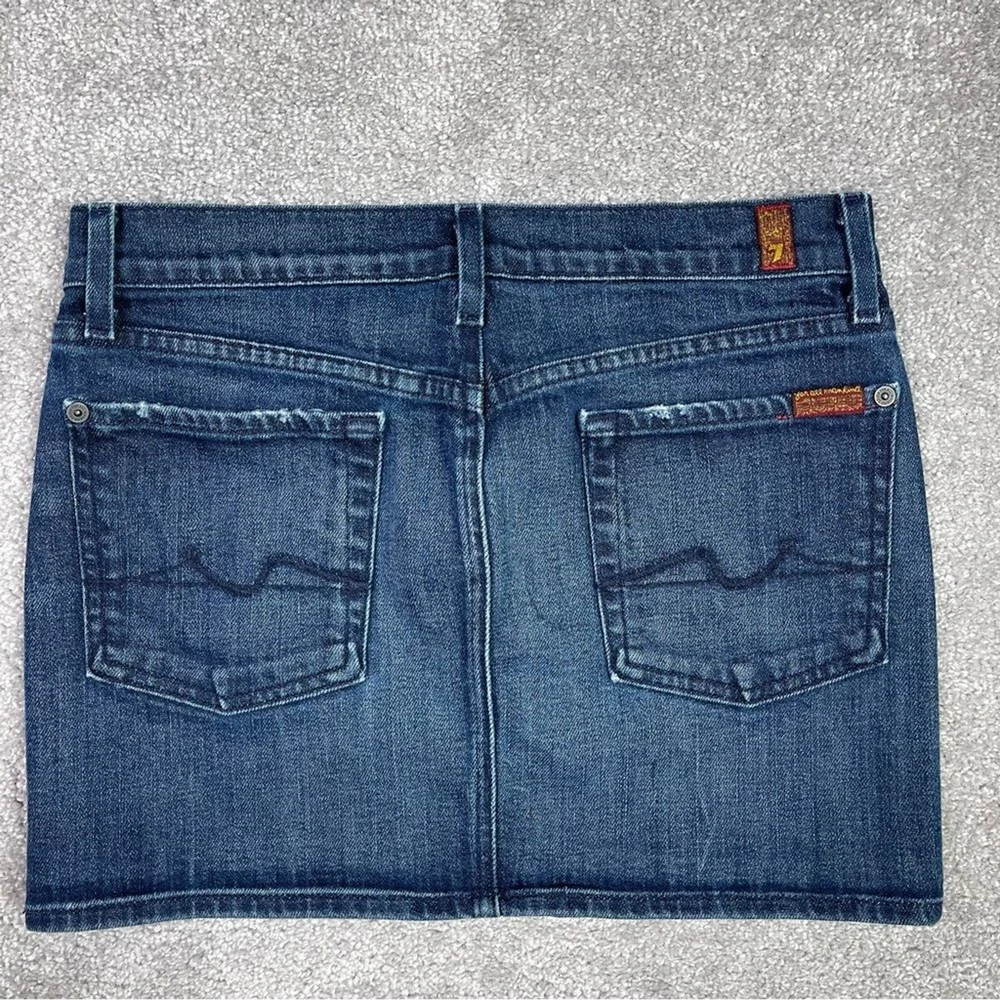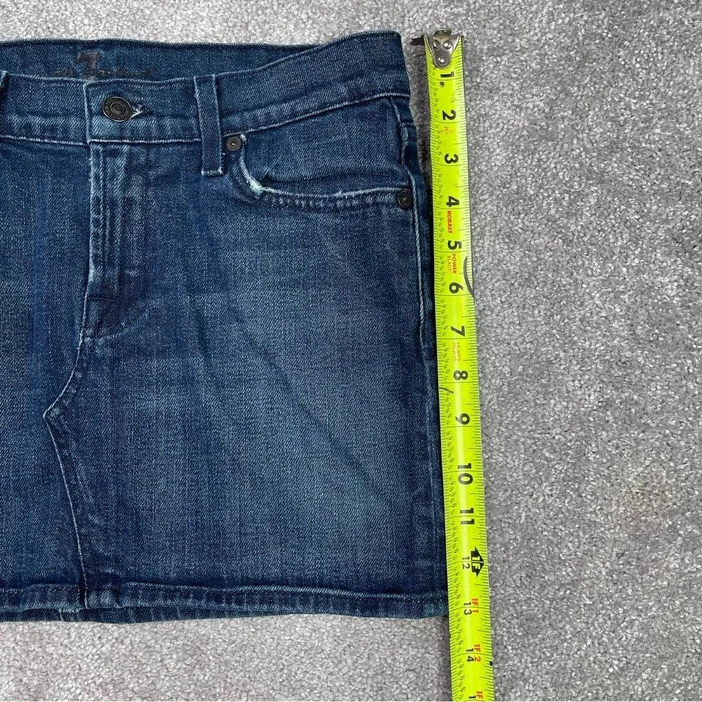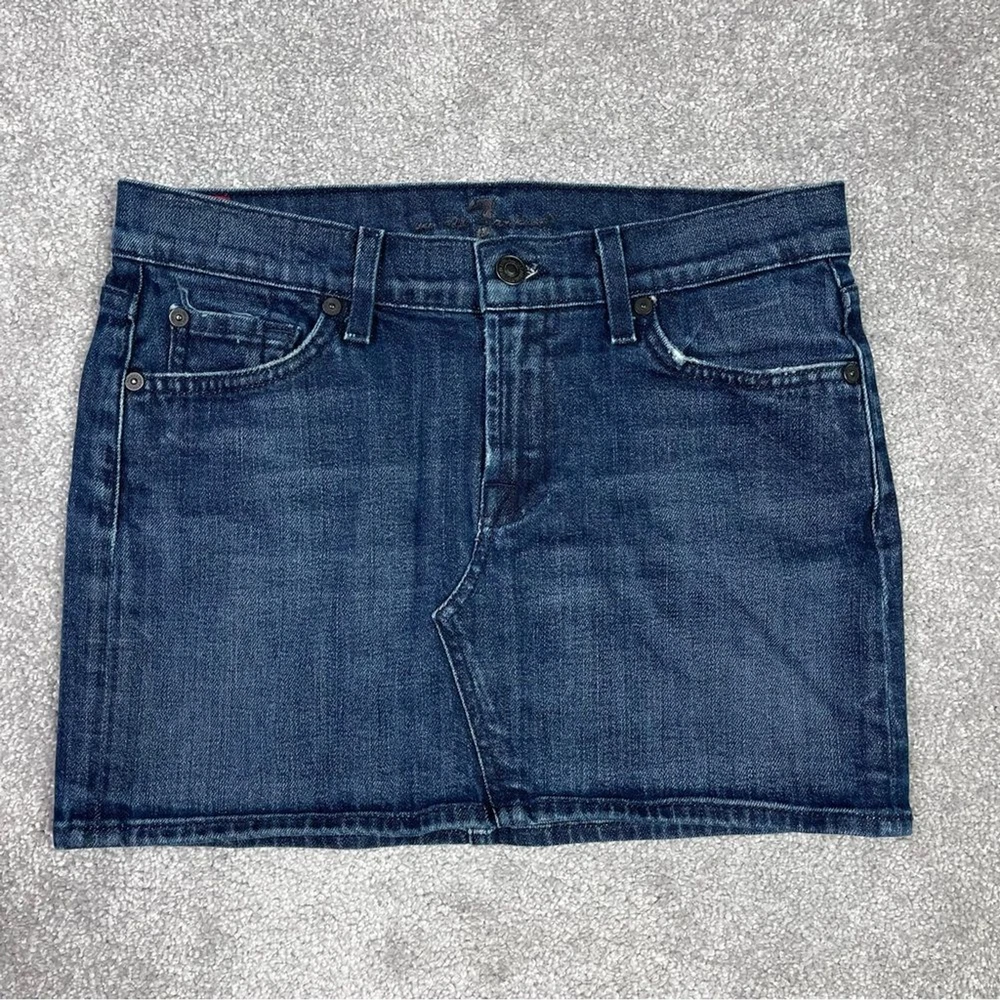 Vintage: No Closure: Zip Features: Pockets, Stretch, All Seasons Material: Cotton, Polyurethane Handmade: No Occasion: Casual Department: Women Brand: 7 For All Mankind Type: Skirt Color: Blue Country/Region of Manufacture: United States Pattern: Solid Size: 27 Season: Winter, Summer, Spring, Fall Personalize: No Garment Care: Machine Washable Accents: Logo Rise: Low Size Type: Regular Fabric Type: Denim Theme: American, Bohemian, Preppy Skirt Length: Short Style: Mini