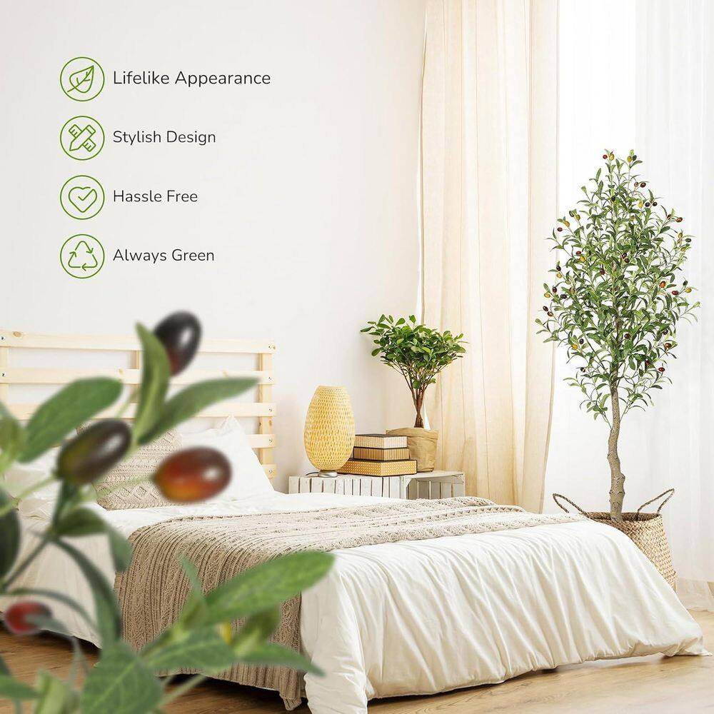 Fast Shipping On All Items 30 Days Money Guarantee Customer Support Excellent Service 100% Satisfaction Satisfaction Guaranteed 7 Ft. 2-Piece Artificial Tree, Faux Olive Tree Faux Simulation Fake UV Resistant Plants with Planter and Moss in Pot Specification Color Family Green Container Finish Family White Container Material Plastic Container Type Pot Indoor/Outdoor Indoor,Outdoor Material Plastic Plant Type Olive Product Weight (lb) 25 lb Returnable 90-Day Container Depth (in) 25.25 in Container Height (in) 4 in Container Width (in) 4 in Product Height (ft) 7 ft Product Height (in) 84 in Product Width (in) 20 in 20.0 inches x 25.25 inches x 7.0 ft. Weight: 25.0 lb Item Description Made of high-quality PE and PP to ensure durability Bendable steel wire branches allow easy shaping for custom look 7ft. tall artificial olive tree adds vertical interest Product DescriptionLive Life smarter. aims to provide multi-functional, high-quality, efficient, and space-saving products and services Previous page is a woman-owned start-up. Having easy-to-use, energy-saving and quality in mind, we design and sell products that help us to save time and money without sacrificing the quality and elegance We are enthusiastic and ambitious and aim to bring real change in people's home life. Bring timeless sophistication to any space with artificial olive tree, meticulously designed to replicate nature, this faux tree features Natural aesthetics: over 1,800 PE leaves with gradient coloring and soft edges create depth, while a hand-painted wood trunk adds organic texture, delicate fabric olives enhance realism Durable construction: high-quality pe+pp materials resist fading, even in sunny areas, bendable steel-wire branches allow easy shaping for a custom look Effortless styling: the included modern planter complements any décor, simply adjust branches to fill gaps or create a fuller silhouette Space-Enhancing height: at 7 ft tall, it adds vertical interest without overwhelming rooms pair with smaller plants for a curated indoor garden Perfect for those seeking hassle-free greenery, this olive tree is a statement piece for homes, offices, airbnb staging, or event backdrops About us We offer the best prices around on high quality products. Our E-store includes media such as books, movies, music and games while offering electronics, toys, sporting apparel, clothing, tools, general home, garden items and more. Shipping We are always working hard to ensure your package arrives as soon as possible. Please understand that some factors like weather, high postal traffic, and the performance of shipping companies are outside of our control. We offer free shipping to the lower 48 states and ship within 2-3 business days of payment, usually sooner. We do not accept P.O. Boxes. Please provide a physical address. For shipping outside of the continental USA, we only use eBay's Global Shipping Program.The item is shipped to KY and then sent to the rest of the world. International customers are responsible for all duties and taxes. Continue to check out to calculate costs for shipping the item to your country. Messages regarding eBay's Global Shipping Program MUST be directed at eBay EXCLUSIVELY. Returns We offer a 30-Day Return Policy on items in which you are not completely satisfied with. You have the option of a full-refund or an exchange of the item. No returns are available on items shipped outside of the USA Satisfaction We try over very best to make sure every customer is completely satisfied. If there's a problem, message us! We're happy to help. Payment Options Shop With Confidence