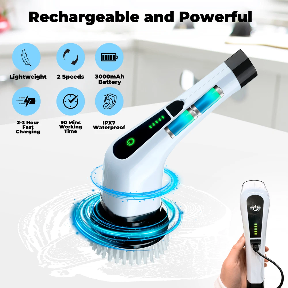 7 Heads Electric Spin Scrubber Cordless Bathtub Power Scrubber Cleaning Brush US