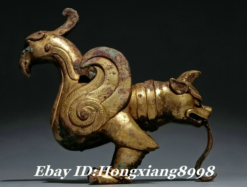 Welcome to my Ebay store: Hongxiang8998. I believe my shop can bring you enough shock and surprise. Chinese antique culture enjoy worldwide reputation because of its unique. We have always been cooperated with Chinese Museum and many of our antiques are exhibited in Chinese Museum and I have been always making efforts to find antiques for Chinese Museum. My grandfather who enjoys a good reputation in Tibet was a chief Lama in a Tibetan Buddhist Temple. We mainly sell China collections and Tibetan Buddhist products. We recommend the combine shipping ,If you won more items once that we will give you a 5 -25% discount off the shipping cost also price discount , Here the discount standard as follow : Buy 2-3 items once we can offer you the 15% discount on shipping, Buy 4-6 items once we can offer you the 20% discount on shipping, Buy 7-10 items able to get 25% discount on shipping and 5% discount on price. Over 10 items please feel free to email us request for especially price ! h h Here is an 7" Old China Han Dynasty Bronze Gold Gild Dragon Phoenix Bird Animal Sculpture , As you can see the image, It is in good condition, and was created by skilled craftsmen in traditional style with fine handcrafts . This is a great piece of valuable collection, a valuable personal alter or a very good present. the handwork is very fine with incredible detailing. Don't miss out this chance to get it .Wish you good luck! Materia l: Bronze Gold Size: Height 6.0 inch .Long 7.0 inch . breadth 2.8 inch Weight: 1.8 KG----included the weight of packing materials Condition: Good condition Origin: China hipping cost by EMS / UPS / TNT / Fedex / (7-13 days):Free Paypal and bank transfer ( highly recommended ) We can accept the payment through PayPal or other way. But if you have problem on this method please contact me and If you are the final winner of this item, please pay within 7 days. However, if you are still bidding on our other items and want to combine shipping, just let us know, we will send a combined invoice to you We provide two options for shipping : DHL & EMS ( Express Mail Service) Since we get the agreement with the both shipping company. they are all fast and safe worldwide ways that easy to tracking online any time also arrive home directly. Mostly items will be using by EMS that only Very Larger items we will using by DHL. When you purchase is completed, we will immediately the customs inspection, this may take a few days time, because it is antique products, customs need to strict inspection, when we send, will immediately tell you tracking number. All the item will be packed by specialty with strong packing for shipping and High quality items for arrive to let you 100% happy. if for whatever reason you are not completely satisfied, simply cancel within 30 days of application for a full refund. the item must be in it's original condition. CONDITION OF RETURNED ITEMS: As received. ORIGINAL ARE RETURNS ALLOWED: Only if different from description or larger broken. TIMING OF RETURNS :Items can be returned within 30 days. NOTICE SELLER BEFORE RETURNING : We will trying to make your 100% Happy. RETURNED FEES: 10% 0ffered by Us. About Us: We guarantee 100% satisfaction on all of our auction Items. Our ultimate goal is providing 100% satisfaction to every customers, customers' repeated business and good positive feedbacks. If you do experience any problem with your items purchased from us , Kindly inform us in order to provide us a chance to resolve the unsatisfaction. So if you are not satisfied with the item you've purchased, you can contact me within 2 weeks or 10 business days after the end of auction and we will give you a full refund upon the receipt of the item. (S&H fees are not refundable). Please do not leave a negative feedback before connect me. We will strive to fulfill bidders' satisfaction. We encourage you to contact us in all cases, we always try to help our clients and ensure that you are happy with the transaction.2021.06.04