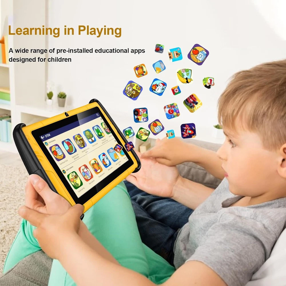 7 Inch Kids Tablet, Android 12 Tablet for Children with Game Yellow Product Details Standing screen display size: 7 Inches Screen Resolution: 1024x600 Max Screen Resolution: 1024 x 600 Pixels Processor: 1.5 GHz Card Description: Integrated Wireless Type: 802.11n Average Battery Life (in hours): 6 Hours Brand: VOLENTEX Model Name: K7 Memory Storage Capacity: 64 GB Screen Size: 7 Inches Display Resolution Maximum: 1024 x 600 Pixels 【High-performance Configuration】: The Volentex 7-inch kids tablet boasts a powerful configuration. It runs on Android 12 and features a 1.5GHz quad-core processor, coupled with 3GB of RAM and 64GB of internal storage. With expandable 512GB (microSD card not included). With a 300,000-pixel front camera and a 2 million-pixel rear camera to capture beautiful moments. Making it an ideal companion for children and igniting their learning interests, imagination, and creativity. 【Edutainment &&Eye Protection】: Kid tablets for toddlers with our pre-installed IWAWA app, children can enjoy the perfect blend of education and entertainment. Parents can also download child-specific apps from the Google Play Store. Additionally, the tablet comes with a child-friendly pre-installed video app , creating a safe online environment for joyful and productive learning. The eye protection mode can be enabled during extended tablet usage to safeguard children's eyes from harm. 【Controllers & Racing Protective Case】: The tablet for kids to enhance the user experience, offer dedicated accessories: controllers and personalized racing protective cases. These accessories not only allow children to immerse themselves in the world of gaming but also incorporate educational elements to promote learning through play. The eye-catching design of the accessories is sure to captivate children's attention. (the case is non-removable). 【Parental Control System】: Our kid tablet features a comprehensive parental control system. It allows parents to effectively manage their child's tablet usage by setting time limits and choosing suitable educational videos, games, e-books, and fun content. Parents can also set educational goals for their children and ensure that they are exposed to growth-enhancing content while filtering out any material that may hinder their development. 【Packaging&After-sales Service】: The product package includes a children's tablet, two controllers, a controller connector, an adapter, and a charging cable. If you have any questions or encounter any issues during the purchase or usage process, please do not hesitate to contact us. We are dedicated to providing excellent after-sales service and support.