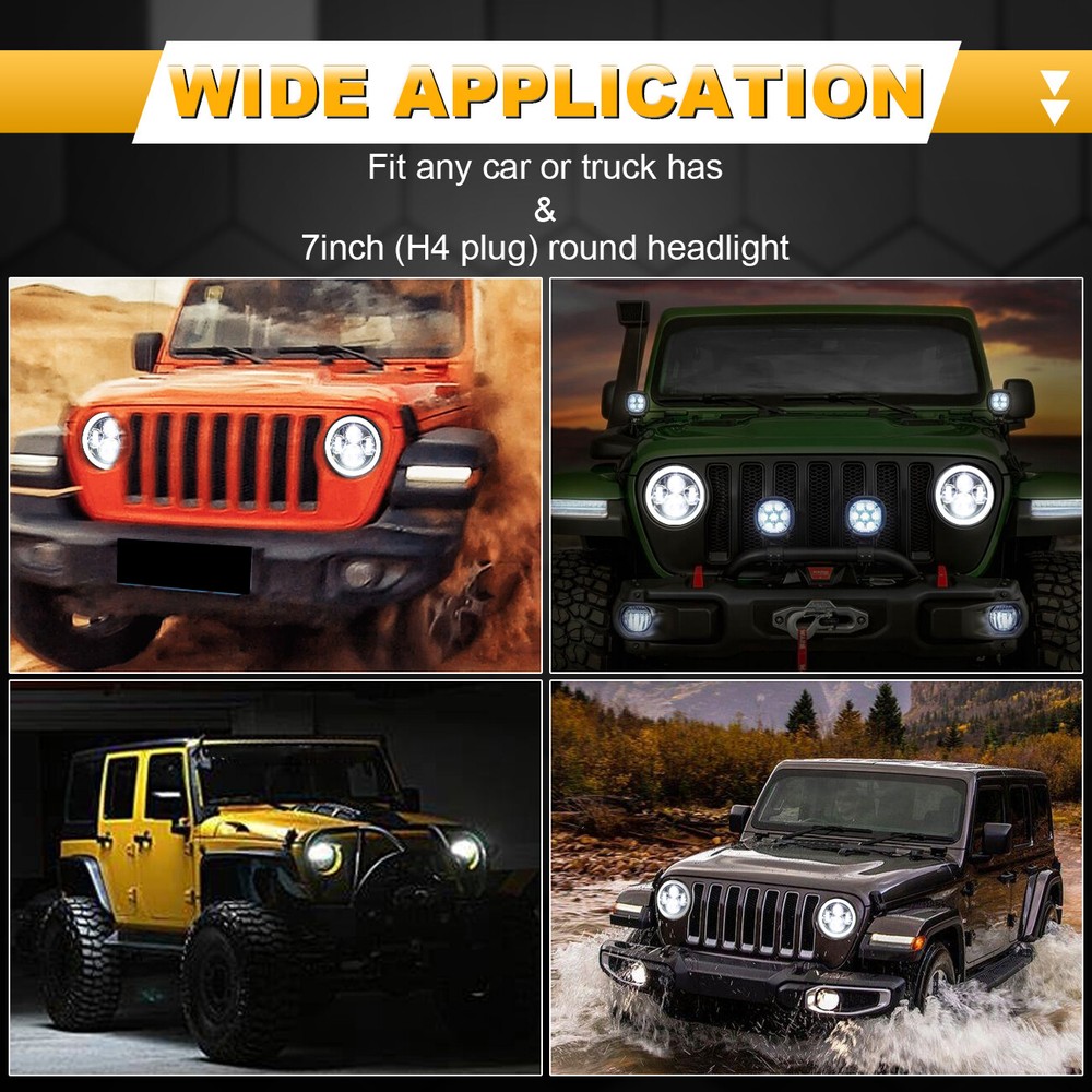 vernavali Welcome Product Description 2Pcs 7"inch LED Headlight 150W Chrome Lamp for Honda Ymaha Suzuki Davidson Motorcycle Specification: Power: 150W Headlight Type: 7" round, chrome inner bezel Input Voltage: DC12V/24V Current Draw: 3A@12V,1.5A 24V LED Quantity: 4(Pure White 6000K) Effective brightness Flux: 15000lm@high beam,10000@low beam Protection Rate: IP67 Material: Chrome die-cast aluminum housing, clear PC lens Size (D*H): Approx. 178 mm (7")*98 mm (3-7/8") Two Modes: High beam-all LEDs on, Low beam- two side +upper LEDs on Description: Please verify that this headlight fits your vehicle before you purchase. Fits 2012-later FLD, 1994-2013 Touring (except Road Glide, Street Glide) 2009-2013 Trike models, also fits 1994-later Soft ail models equipped with Freight Train Headlamp Nacelle Kit. 2006-2010 FLHTCUSE models require separate purchase of wiring Harness P/N 71628-04. 7" round LED headlight, high performance Hi-Lo beam UV-resistant, innovative 4D round+ D-shaped projector lens. Superior light output but soft light, efficiently relieve driving fatigue. Full aluminum housing for extra durability while doubling as heat sink. Solid-state, can withstand vibration & shock with ease. IP 67 rated Construction, great performance of waterproof dustproof. Directly replace stock 7" round seal-beam headlight. Note: Please allow 1-2 cm differences due to manual measurement. Due to the shooting environment and the individual's different perceptions of color, and the deviation of the display, there will be a slight chromatic aberration. Package Include: 2* 7" round LED headlight 2* H4 to H13 adapter harness Product Display Payment We accept PayPal via eBay Secure Check-Out only. Payment is expected within 7 days of auction close. Unpaid Items will be forfeited per eBay . Immediate payment needs to be processed for items with Add to Cart option so that any promotional discounts can be applied to your order immediately. Shipping Notice: 1 .We do everything we can to ship your orders out as soon as possible. 2. Shipping and Handling: We process orders within one business day after the payment was clear. ---For domestic economic shipping, It normally takes 2-8 days for delivery. We may ship your order(s) from different warehouses for expedited delivery as we utilize alternative warehouses across the Continental United States.You may upgrade to UPS 3-day Selected which delivery time is typically 1-3 business days. Please be noted that, this service is more recommended for Monday-Thursday orders. Orders on Friday may be processed on following Monday by UPS, according to UPS's policy. ---For International Orders, items may be shipped from our warehouse in south China. Both are the same products and same warranty. Duties and taxes may apply. Please check with your country's custom and eBay policy for more information. Returns Our 30-day Satisfaction Guarantee assures our customers that they will receive all orders promptly and exactly as described. In addition, it allows customers to return new and unused products in their original factory condition for any reason within 30 days from the date of purchase. 1. All returns must be pre-approved by Rbigdoggy and have a return merchandise authorization(RMA) number. Unauthorized returns will not be accepted. 2. Buyers are responsible for appropriate packing, returning shipping cost, insurance and returning the item in "new" condition. Used items will not be accepted for return. 3. We will replace the returning item with an identical item, issue a full store credit or a full refund. The sole and exclusive maximum liability to Rbigdoggy arising from any product sold on Rbigdoggy ebay account shall be the price of the product ordered. Feedback 1. We appreciate your business and strived to improve our customer service and our commitment to quality. 2. We will leave a positive feedback immediately after payment is received. We appreciate a positive feedback as much as you do. 3. If for some reason there is any issue with the purchase, please contact us prior to leaving feedback, and we will be glad to work with you to have it resolved. Thank you for visiting my store!