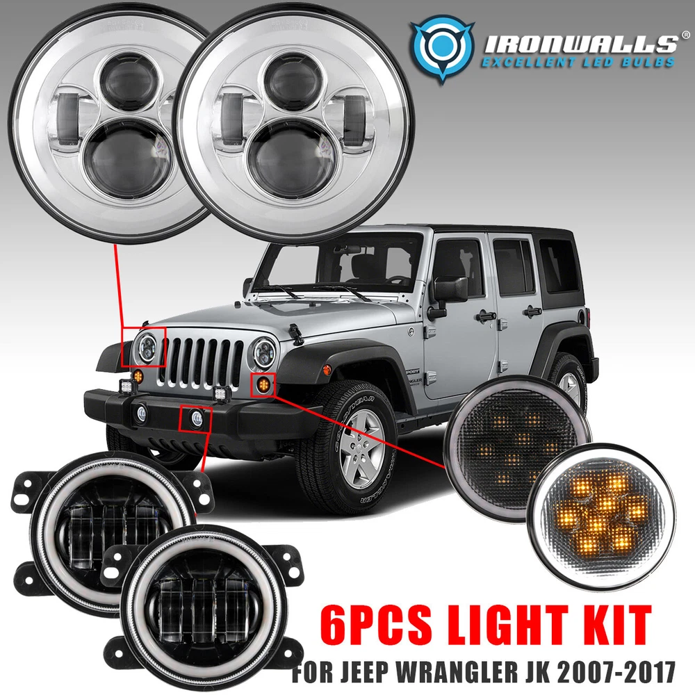 uncledavid2010 Welcome Description Fitment: Fit for Wrangler JK 2007-2017 7" LED Headlight Kit: Specification: Power: 150W Headlight Type: 7" round, chrome inner bezel Input Voltage: DC12V/24V Current Draw: 3A@12V,1.5A 24V LED Quantity: 4(Pure White 6000K) Effective Lumens: 15000lm@high beam,10000@low beam Protection Rate: IP67 Material: Chrome die-cast aluminum housing, clear PC lens Two Modes: High beam-all LEDs on, Low beam- two side +upper LEDs on Description: Please verify that this headlight fits your vehicle before you purchase. Fits 2012-later FLD, 1994-2013 Touring (except Road Glide, Street Glide) 2009-2013 Trike models, also fits 1994-later Soft ail models equipped with Freight Train Headlamp Nacelle Kit. 2006-2010 FLHTCUSE models require separate purchase of wiring Harness P/N 71628-04. 7" round LED headlight, high performance Hi-Lo beam UV-resistant, innovative 4D round+ D-shaped projector lens. Superior light output but soft light, efficiently relieve driving fatigue. Full aluminum housing for extra durability while doubling as heat sink. Solid-state, can withstand vibration & shock with ease. IP 67 rated Construction, great performance of waterproof dustproof. Directly replace stock 7" round seal-beam headlight. Fog Light Kit: Specification: Operating Voltage:10-30V DC Power: 30W( 6pcs*5W)(Spod Beam) brightness flux: 430lm Waterproof: IP68 Color Temperature: 3000K-6000K Amber White Ring Material: Aluminum Housing, PC Lens, Stainless Mounting Bracket Surface Color: Black Life-span: 50000+hours Size: approx.4" x 4" x 3.3"(100mm x 100mm x 83mm) Features: 1. High quality and weatherproof material. 2. Extremely bright,faster on/off response time for driving safety. 3. Simple design,enhance your car's exterior look. Turn signal Light Kit: Features: * High-quality and long-lasting : made of high-quality ABS plastic shell, sturdy PC lens, dust-proof and shock-proof. * High-intensity LED chip: Turn signal LED lights are very bright, more long-lasting than factory bulbs, and provide excellent amber signal lighting. Faster on/off response time ensures safe driving. * Unique appearance: These amber LED turn signal light kits with white DRL provide your car with an excellent stealth appearance, giving your car a unique appearance. * Easy installation: The LED turn signal is easy to install, plug and play directly, and the simple design improves the appearance of your car. *Accessories: fit for Jeep Wrangler JK 2007-2018 with OEM grille turn signal hole. The sealed LED bulb unit is waterproof and dustproof. Specification: Name: Turn signal Shell material: die-cast aluminum alloy Power: 3W Voltage: 10~30V Color temperature: 6000K Lumens: 7200lm Light color: white light + amber Quantity: 2Pcs/set Working life: 30000 hours Working temperature: -40~60 ℃ Protection level: IP68 Diameter: 87mm / 3.42" Shell color: black Package included: 2 x 7 inches Round LED Headlight 2pcs * LED Fog Lights 2 x Turn signal (Installation instruction is NOT included) Note: 1. Please allow 1-3cm (0.4-1.18") difference due to manual measurement and slight color variation for different display setting. 2. Due to the light and screen difference, the item's color may be slightly different from the pictures. Please understand. Product Display Payment We accept Ebay Payment via eBay Secure Check-Out only. Payment is expected within 7 days of auction close. Unpaid Items will be forfeited per eBay . Immediate payment needs to be processed for items with Add to Cart option so that any promotional discounts can be applied to your order immediately. Shipping Notice: 1 .We do everything we can to ship your orders out as soon as possible. 2. Shipping and Handling: We process orders within one business day after the payment was clear. ---For domestic economic shipping, It normally takes 2-8 days for delivery. We may ship your order(s) from different warehouses for expedited delivery as we utilize alternative warehouses across the Continental United States.You may upgrade to UPS 3-day Selected which delivery time is typically 1-3 business days. Please be noted that, this service is more recommended for Monday-Thursday orders. Orders on Friday may be processed on following Monday by UPS, according to UPS's policy. ---For International Orders, items may be shipped from our warehouse in south China. Both are the same products and same warranty. Duties and taxes may apply. Please check with your country's custom and eBay policy for more information. Returns Our 30-day Satisfaction Guarantee assures our customers that they will receive all orders promptly and exactly as described. In addition, it allows customers to return new and unused products in their original factory condition for any reason within 30 days from the date of purchase. 1. All returns must be pre-approved by uncledavid2010 and have a return merchandise authorization(RMA) number. Unauthorized returns will not be accepted. 2. Buyers are responsible for appropriate packing, returning shipping cost, insurance and returning the item in "new" condition. Used items will not be accepted for return. 3. We will replace the returning item with an identical item, issue a full store credit or a full refund. The sole and exclusive maximum liability to uncledavid2010 arising from any product sold on uncledavid2010 ebay account shall be the price of the product ordered. Feedback 1. We appreciate your business and strived to improve our customer service and our commitment to quality. 2. We will leave a positive feedback immediately after payment is received. We appreciate a positive feedback as much as you do. 3. If for some reason there is any issue with the purchase, please contact us prior to leaving feedback, and we will be glad to work with you to have it resolved. Contact us Our working time: Monday to Friday, 9:00~18:00 For inquires and customer support, please send your email via ebay email system. All emails will be responded to within 24 hours during business days. Tha