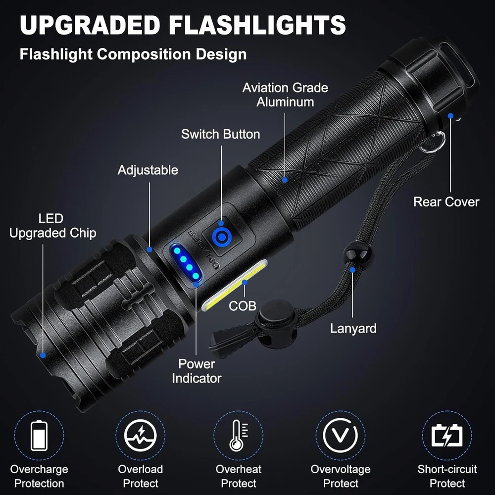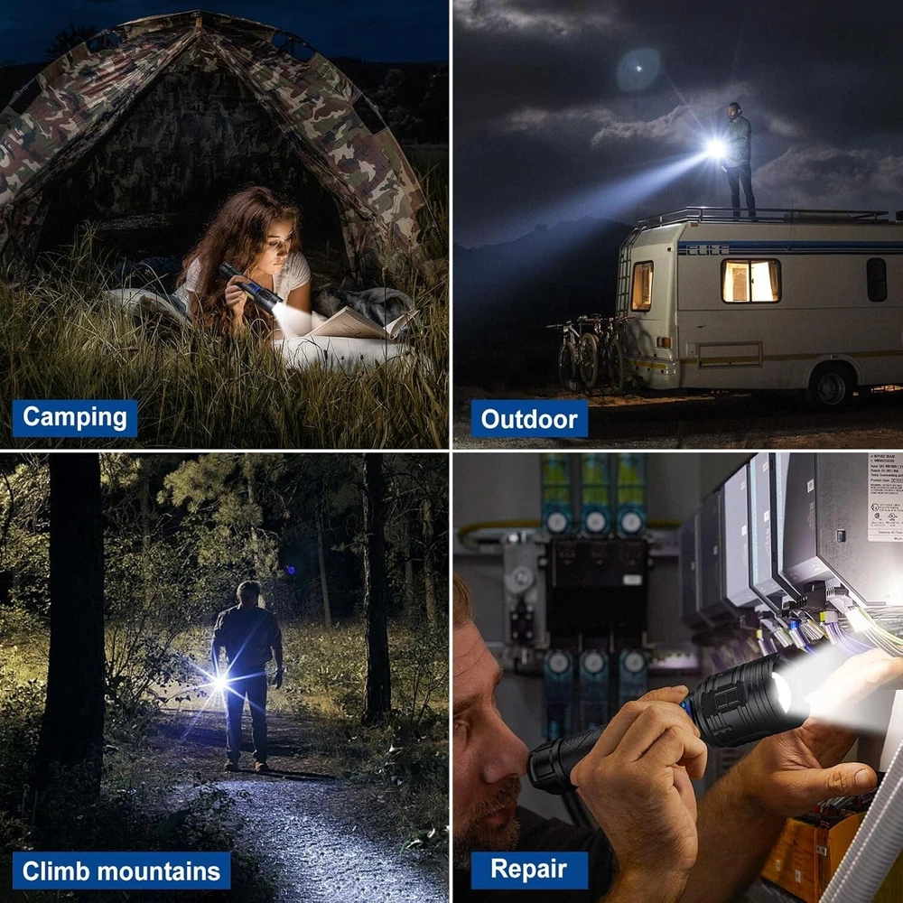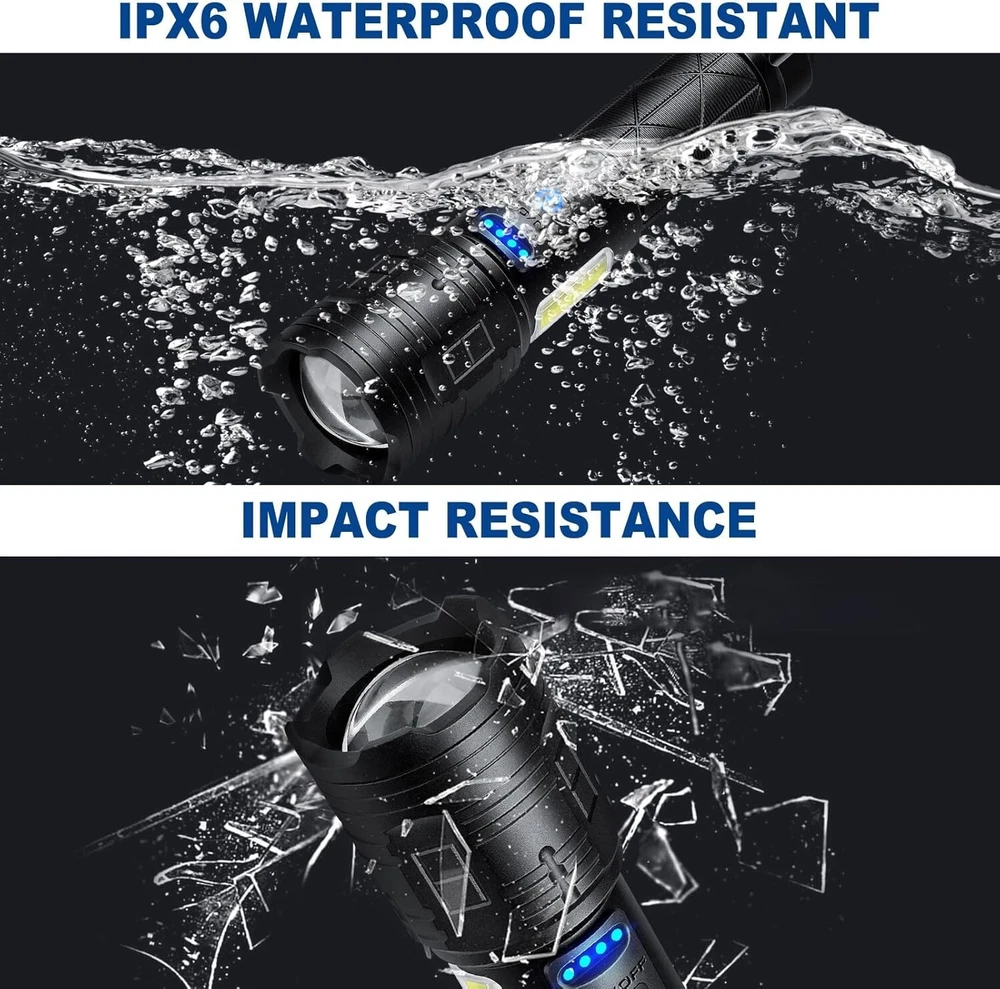 7 Mode Waterproof Flashlight Set - 900000 Lumens Ultra Bright, USB Rechargeable ‹ › ‹ › ‹ › ‹ › ‹ › ‹ › ‹ › ‹ › ‹ › ‹ › ‹ › 7 Mode Waterproof Flashlight Set - 900000 Lumens Ultra Bright, USB Rechargeable Features: Unmatched Brightness: Equipped with Germany-imported Top G2308 LED chips, delivering a staggering 900000 lumens at 8000K cool white. This flashlight is 550% brighter than standard car lights, illuminating up to 205 square meters with ease. Impressive Battery Life: Comes with a high-quality rechargeable battery providing up to 12 hours of powerful, non-diminishing brightness. The four-speed LED power indicator allows real-time monitoring of remaining power. Convenient USB Charging: Features a Type C port and includes a USB cable for versatile charging options with laptops, wall sockets, car chargers, and power banks. 7 Lighting Modes: Easily switch between 3 primary modes (High/Low/Strobe) and 4 COB modes (High/Low/Red/Red Flash) with a simple press of the button. Adjust head for wide and narrow beams effortlessly. Built to Last: Crafted from hard anodizing aircraft grade aluminum alloy with a rugged finish, designed to withstand pressure and tough environments. Water Resistant: IPX6 waterproof design allows adaptability in extreme weather conditions, perfect for camping, hiking, cycling, and emergency situations. Exceptional Value: Includes two flashlights, removable rechargeable batteries, charging cables, adjustable lanyards, and battery casings—all with a user manual. Why Choose Our Flashlight Set? Are you ready to light up your adventures with unparalleled clarity and reliability? The 7 Mode Waterproof Flashlight Set not only delivers an astounding luminosity but also offers prolonged usage for those late-night excursions or unexpected emergencies. The sturdy build ensures durability against the elements and rigorous handling, while the USB charging adaptability adds convenience to your lifestyle. Whether you’re camping under the stars, managing a power outage, or simply wishing to illuminate a pathway, trust this versatile powerhouse to light your way. Experience the perfect blend of innovation, quality, and value—order your 7 Mode Waterproof Flashlight Set today! Shipping Free & Fast Shipping - We offer free shipping to most of the USA with a normal delivery time of 3-7 days. However, due to the current situation, additional delivery time (up to 3 weeks) may be required for some items. Alternative Carriers - We may use alternative carriers (e.g. USPS, FedEx, UPS, etc.) to ensure your package arrives safely and on time. Due to the use of multiple carriers, we are unable to provide a tracking number automatically. Handling Time - Orders are processed and shipped within 1-2 business days of receiving cleared payment. Shipping Restrictions - Shipping to Alaska, Hawaii, Puerto Rico, Guam, and other US territories may incur shipping charges or delivery restrictions. Please contact us before ordering, or your order can be refunded/cancelled. State Restrictions - There may be restrictions based on your state of purchase. For example, certain items may not be shipped to California due to state regulations. Contact for Tracking Updates - If you require tracking updates or have any concerns about the delivery of your order, please feel free to contact us, and we will be happy to assist you. Return 30-Day Hassle-Free Returns - We want you to be completely satisfied with your purchase. If you are not, you can return the item within 30 days of receiving it for a full refund or exchange. Easy Return Process - To start a return, simply contact us and we will provide you with a prepaid return shipping label and detailed instructions. Restocking Fee - There are no restocking fees for returns. However, the buyer is responsible for return shipping costs if the return is not due to a seller's error. Refund Processing Time - Refunds will be processed within 5 business days of receiving the returned item in its original condition. Payment We accept all major credit cards, PayPal, and Apple Pay for your convenience. Your payment information is secure and encrypted to ensure a safe and seamless transaction. Please complete your payment within 3 days of purchase to avoid any delays in shipping. Feedback Your feedback is extremely important to us. We strive to provide the best products and customer service possible. If you are satisfied with your purchase, please take a moment to leave us a positive review. If you have any concerns or issues with your order, please contact us before leaving negative feedback. We are committed to resolving any problems and ensuring your satisfaction. Contact Us If you have any questions or concerns, please feel free to reach out to our customer support team. You can contact us through the eBay messaging system. We are available Monday to Friday, 9:00 am to 5:00 pm EST, and we will do our best to respond to your inquiry within 24 hours. Thank you for supporting our small family business! UPC: Not Set Voltage: Rechargeable LED Flashlights Item Height: Rechargeable LED Flashlights Item Length: Rechargeable LED Flashlights Item Weight: 1.41 lb Item Width: Not Set Model: Not Set Lumens: 900000 lm Number of LEDs: 1 Unit Quantity: 2 Features: Rechargeable,Waterproof,7 Modes,Adjustable,High Power,USB Charging,Heavy Duty Build,Non-slip Handle,Real-time Power Display Material: Aluminum Brand: Unbranded Type: Flashlight Lighting Technology: LED Power Source: Battery Operating Range: 205 m MPN: Not Set Battery Technology: NiMH Number of Batteries: 2 Color: Black Country/Region of Manufacture: Not Set IP Rating: IPX6 Operating Time: More Than 10 Hours Number of Lights: 1-3 Unit Type: lb Personalize: Not Set