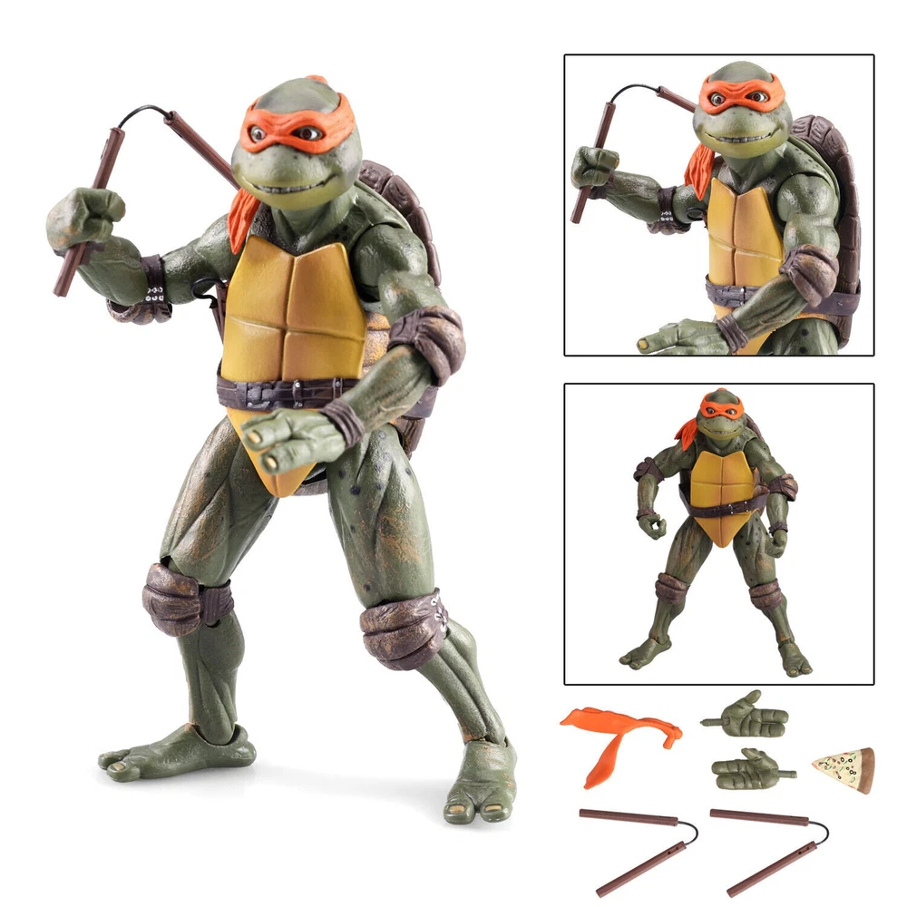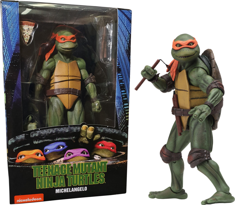 Michelangelo Teenage Mutant Ninja Turtles 1990 Movie TMNT 18cm Action Figur NECA Hersteller: NECA Format: Action Figur Height: 7" (18 cm) This 18 cm (approximately 7 inches) figure is poseable and intricately detailed. Each Turtle figure comes with its own signature weapon and additional accessories, which of course includes a piece of pizza. It is attractively packaged in a windowed box. WARNING! Not suitable for children under 36 months. Choking hazard due to small parts that can be swallowed.