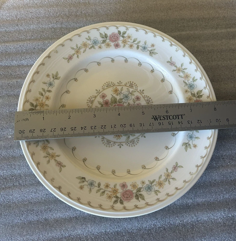 7 Noritake Verse Salad Plates Set Vintage Floral Pink Yellow Versatone Japan .8” Pre owned but in good condition