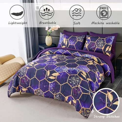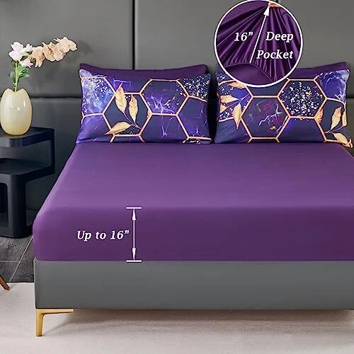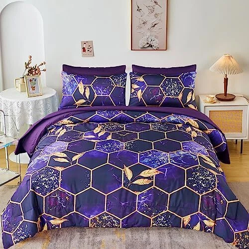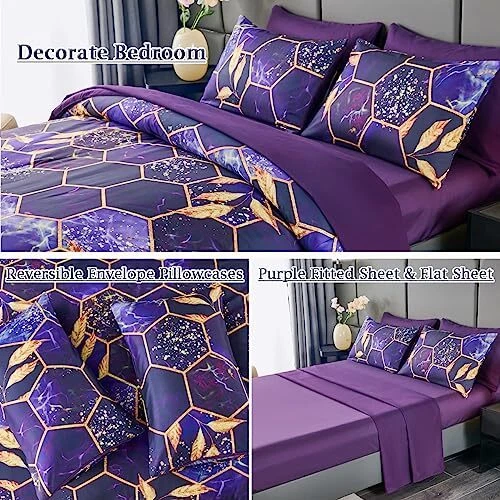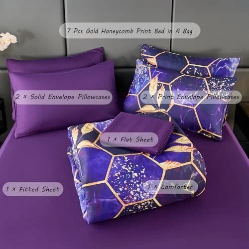 Return Policy Fast Delivery Trusted seller 7 PC Hexagon Purple Queen Bed in A Bag Women Men Honeycomb Geometric Queen Bed Comforter Set Watercolor Print Bedding Set for All Season (Purple, Queen) Product Description [Exquisite Design] The stunning 7 pc honeycomb purple queen size comforter set, a perfect addition to elevate the style and comfort of your bedroom. The all season purple bed in a bag queen ensemble have beautiful hexagon geometric, highlighted by gold trim leaf print. The lightweight watercolor pattern of the purple geometric comforter set adds a subtle and artistic atmosp to the overall design both practical and decorative [7 Piece Purple Queen Comforter Set] 1 Queen Reversible Comforter 90"x90", 1 Flat Sheet 90"×102", 1 Fitted Sheet 60"×80"+16" Deep Pocket, 2 Pillowcases with Honeycomb Geometric Pattern 20"x30", 2 Solid Color Pillowcases 20"x30". Purple queen comforter bed set is meticulously crafted and coordinated to create a cohesive and stylish look for your bedroom [Lightweight Material] The material of purple bedding set queen of unparalleled cozy is carefully selected 100% Microfiber. The geometric bed set is durable, fluffy, breathable, comfortable, providing the right warmth. So, you'll experience nights of restful and sweet sleep [Easy Care] Machine washable in cold water, gentle cycle, low temperature drying, don't bleach and iron. Our purple marble comforter set queen is designed for easy maintenance. Retains honeycomb comforter set queen shape and beauty even after multiple washes, saving you time and effort while keeping your bedding fresh and clean [Nice Gift] Looking for the perfect gift? Our 7-piece geometric bed set queen makes a thoughtful and practical present for housewarmings, Thanksgiving, Mother's Day, Father's Day, Christmas, birthdays or any special occasion. Hexagon 7 piece purple bed set can take your cared ones luxury and comfort feel Shipping Returns Payment Shipping Shipping is FREE to all addresses other than APO/PO boxes in the lower 48 states. All our stock ships from US-based warehouses. Shipped via USPS or UPS (depending on location and package weight) Unless stated otherwise, all orders will ship within 24-72 hours of your payment being processed. Check our feedback to see the great reviews of FAST shipping we offer. Returns Seller does not accept returns Payment We currently accept payment via eBay managed payments only. Once payment is cleared, we will dispatch your shipment within 1-3 business days. Please refer to the "Shipping" tab for more information regarding shipping speed to your destination.