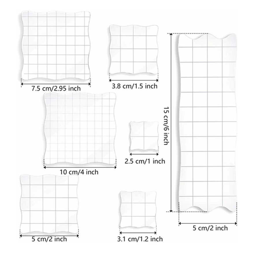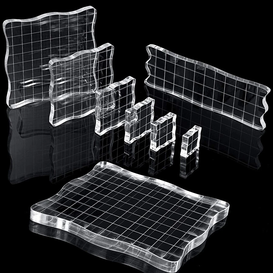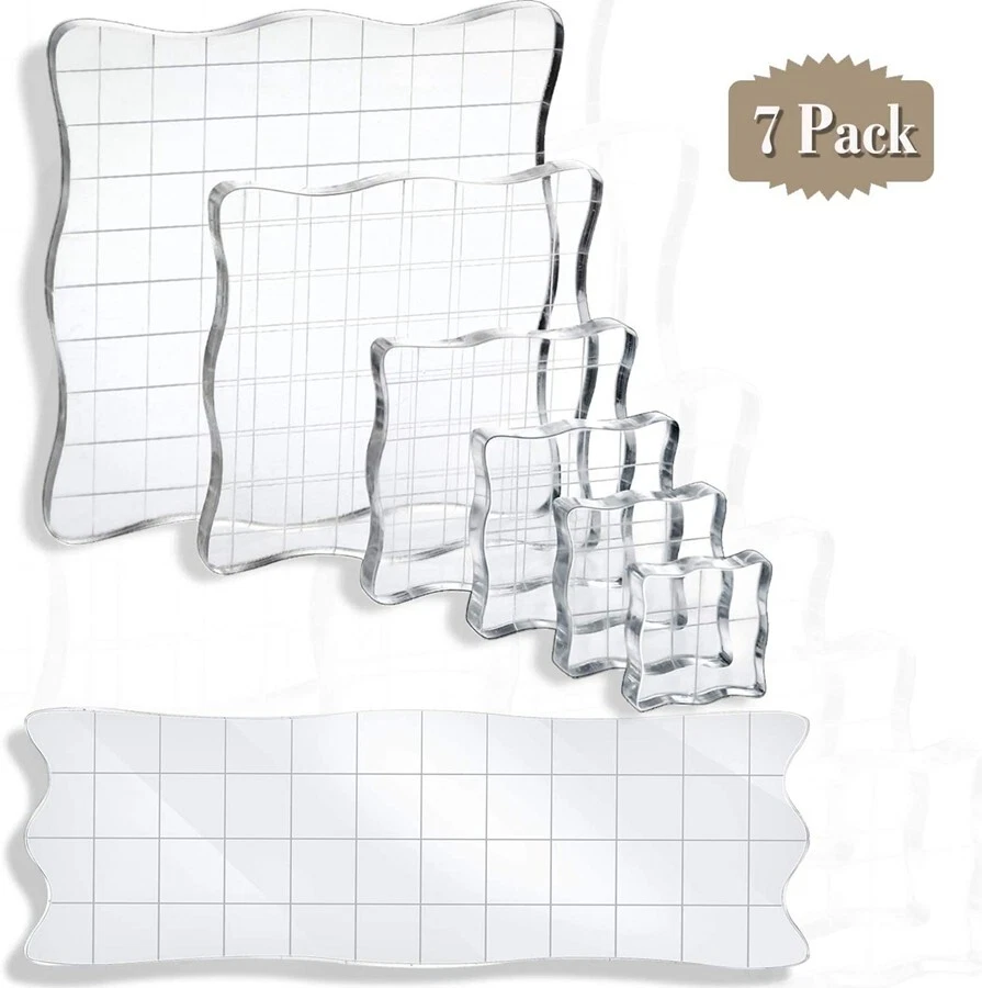 7 PCS Acrylic Stamp Blocks Set Clear Stamping with Grid Grip for DIY Crafts N816
