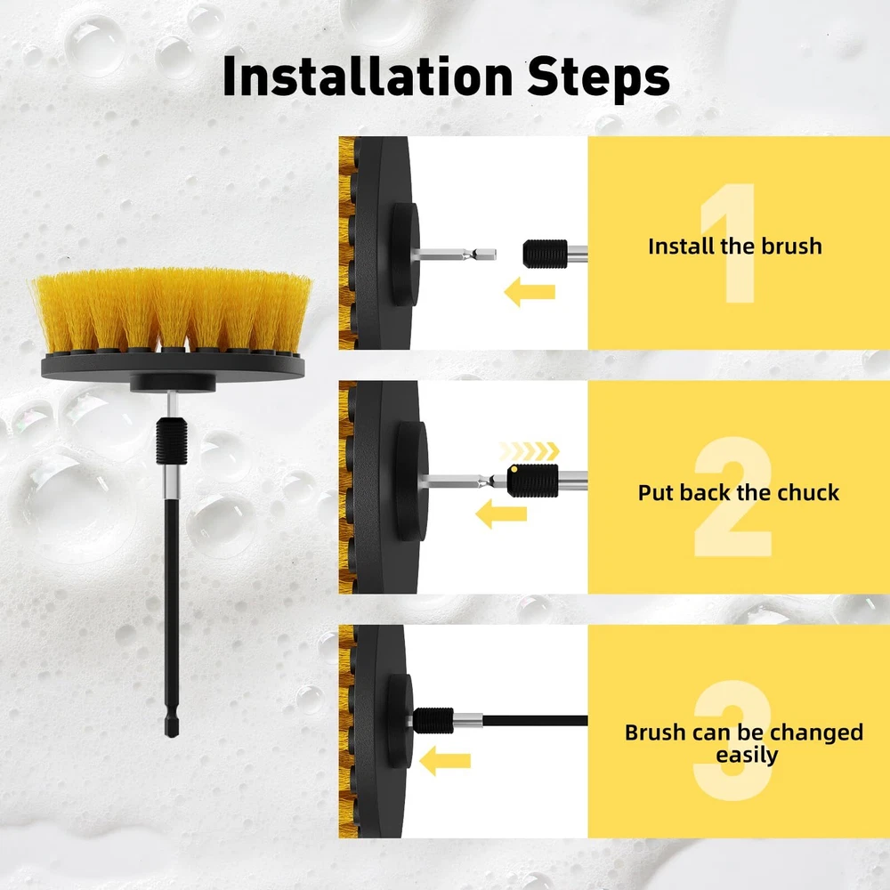 CasaCulina 7 Pack Drill Brush Attachment Set, Drill Cleaning Brush Attachment Multi-Purpose Drill Scrub Brushes with Extend Rod Kit for Grout, Shower, Floor, Tile, Car, Bathroom and Kitchen Surface WIDE APPLICABILITY: The brush attachment for power drill can be used to easily clean bathroom surfaces, tiles, showers, bathtubs, toilets, wheels, kitchen worktops, and all kinds of other household and automotive surfaces, whether it's for routine maintenance or for deep cleaning, the kit can handle it. DURABLE MATERIAL: The drill brush set is made of high-quality nylon bristles and sturdy plastic plates to ensure that the drill brushes maintain good performance and long service life in the face of a variety of stubborn stains, and that they can be used to clean efficiently and effectively in a quick and easy way. MULTIPURPOSE SHAPE BRUSHES: Round brushes in different diameters for large surface areas and detail cleaning; Ball brushes and two sizes of tapered brush heads to help clean uneven surfaces and corners, such as crevices, door and window tracks, and more. The different shapes of the brush heads are versatile and can be used for any deep cleaning needs. EXTENDED CONNECTING ROD: Stainless steel extension poles up to 6 inches long are designed to allow the user to easily access narrow or hard-to-reach areas such as grills, crevices, stove grills, drip pans, car footwells, or spaces between toilets and walls without the need to bend over or overextend their arms. 7 PACK CLEANING DRILL BRUSH SET: DRILL NOT INCLUDED, Includes 2"/ 4"/ 5" round brush, 0.75"/ 2.5" cone brush, 3.5" ball brush and 6" extend long attachment (size tips: 1/4-inch diameter connector between connecting rod and drill, compatible with most standard drills on the market, no need to purchase additional adapters, plug-and-play, convenient and fast) SHIPPING Domestic Buyers - We have confidence in our products, but if you are not fully satisfied please contact us within 30 days of purchase and you will get full refund. - We ship within 3 business days of payment, usually sooner - We offer FREE shipping on all orders! - We only ship to the lower 48 states, no APO/FPO addresses or PO Boxes allowed International buyers – please note: Import duties, taxes, and charges aren't included in the item price or postage cost. These charges are the buyer's responsibility. - Please check with your country's customs office to determine what these additional costs will be prior to bidding or buying. * Order Cancellation Policy ** You can return a product for up to 30 days from the date you purchased it. 1. The seller reserves the right to cancel the special case only due to eBay cancellation fee. 2. The decision of seller is the final. 3. The seller will respond to the cancellation request within 2 business days. Please wait for the result of cancellation. 4. In case the cancellation is not completed by some reasons, the buyer can follow the options below to get the refund. 4.1 The buyer can reject the item when it arrives. 4.2 The buyer can send the item back to the seller within 30 days If the buyer receives item (USA Shipment ONLY). The seller will provide the FREE return label to the buyer when the buyer opens " Return Item" case on eBay by using the reason as "Change my mind" ONLY. 5. When buyer has placed the order. The order will be processed and completed by automatic warehouse system within 5 minutes. In case that buyer sends the cancellation request after 5 minutes of placing the order, the request will be rejected. **Sending direct message to cancel the order is not allowed for every case.* Return Policy For the return case - If buyer would like to return the items for refund or replacement, please CONTACT SELLER to receive the free return label from seller. The refund or replacement will be processed with the tracking number of return label which is provided by seller only. The other ways of return which are not approved by seller will not be processed for the refund or replacement.
