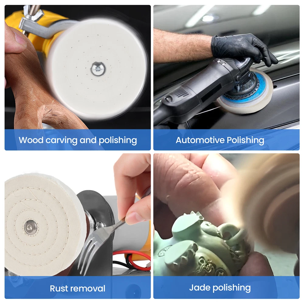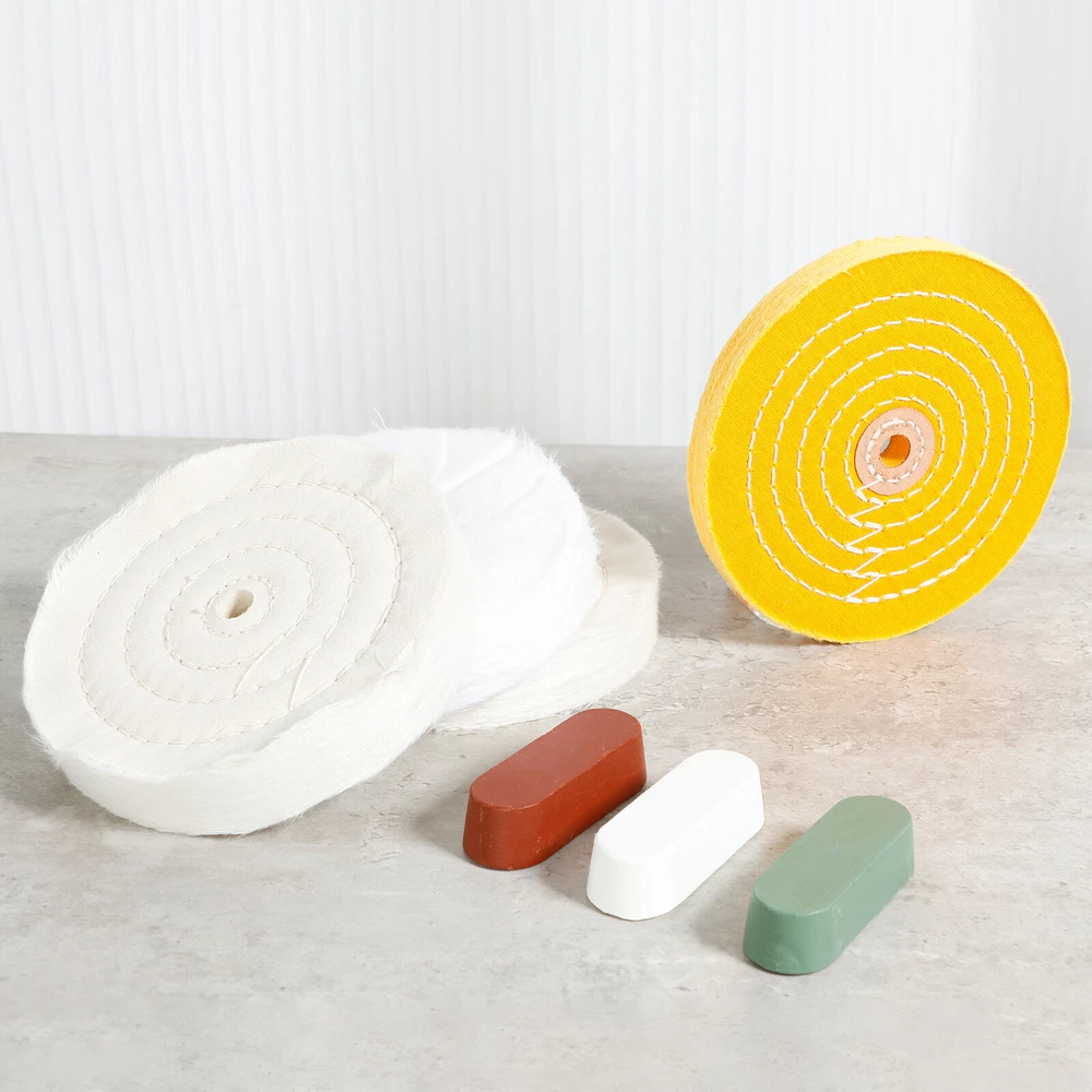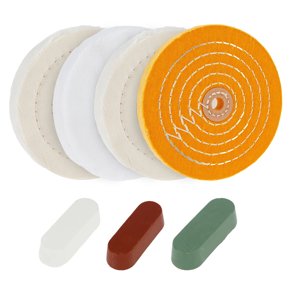 Parts List: 4 x Cloth Polishing Wheel 3 x Polishing Compound Highlight description: Premium Material: The polishing wheel kit is crafted from cotton. It is designed for detail cleaning and can be reused after cleaning. This polishing kit is suitable for multi angle polishing and can polish every corner of the item Polishing Wheels: The buffing wheel kit has cloth wheels with different finenesses. You can do coarse; medium and fine polishing and choose different finenesses according to your needs. Comes with a cleaning cloth for cleaning Polishing Compounds: 3 types of polishing compounds with high hardness and fast polishing speed. Green one for pre polishing of soft metals, brown one for soft metals. Can be used in conjunction with a brightener to give a glossy surface Kit Function: Mount the polishing wheel on a small table buffer or hand drill for cleaning; descaling and polishing. Ideal for stainless steel, brass and other metals, but can also be used to clean jewelry and furniture Wide Use: The polishing kit fits most sizes of drill bits and is not easily dislodged. Suitable for grinding and polishing processes in the jewelry; metal; stainless steel; aluminum; wood; plastic; ceramic; glass and watch industries Detailed description: Description: Our kit contains 4 cloth wheels and 3 polishing compounds, the ideal combination. The polishing kit features cloth wheels with different finenesses so you can do coarse, medium or fine polishing and choose different finenesses as needed. The 3 compounds are hard and fast. Suitable for metal, jewelry, stainless steel, aluminum, wood, plastic, ceramics, glass, etc. Key Feature: Size: The polishing wheel is about 6inch/15cm in diameter. (Remember to apply oil to the spindle after use of the conversion spindle to better protect the finish of the part, prolonging the service life.) Specification: Product Name: Polishing Wheel Kit Size: Cloth Polishing Wheel Diameter: 15cm/6inch Material: Cloth Color: Mixed Colors Note: 1.There may be slight differences between the picture and the actual color of the commodity. We will try our best to show you the exact color. 2.Please allow slight dimension difference due to manual measurement. 3.Remember to take precautions when doing polishing work: wear masks, glasses, gloves, etc.