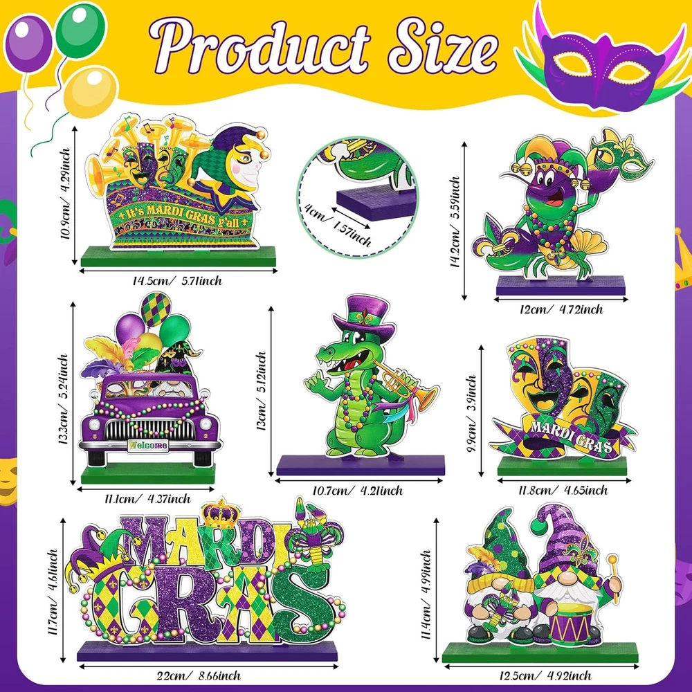 Store New Arrivals Add to Favorite View Feedback Contact Fast deliveries to the customer's home Quality customer service John Make the customers happy! 7 Pcs Mardi Gras Table Decorations Wooden Mardi Gras Centerpieces Mask Alligator Crayfish Truck Gnomes Carnival Float Table Sign for Mardi Gras Party Masquerade Desk Shelf Table Decor Description Mardi Gras Table Signs: You will get 7 pieces wooden mardi gras table centerpieces in 7 different design. Each mardi gras decoration comes with a base, and the rich styles are enough for you to create a joyful party atmosphere Attractive Design: These mardi gras tray signs are mainly green, purple and yellow. They include many mardi gras elements like mask, mardi gras float, comedy tragedy face, MARDI GRAS letters and more. The bright colors and exquisite designs make your party more colorful Wooden Material: Our mardi gras table decor are made of durable wood material with sturdy structure and will not fall apart easily. The sturdy wooden base allows them to stand alone and stably on your desk. They can accompany you for a long time Suitable Size: Each mardi gras masquerade table decorations has different sizes, ranging from 10.7cm/4.21 inches to 22cm/8.66 inches in length, and from 9.9cm/3.9 inches to 13.3cm/5.24 inches in height. The right size makes them very cute, not taking up too much space, and still visible from a distance Wide Application: Our mardi gras themed centerpieces can easily put on table, counter, fireplace, desk, tray and any flat place, which are very suitable for mardi gras party, carnival masquerade party, birthday party etc Feature: Table decorations for mardi gras: Celebrate the holidays in style with our premium mardi gras table signs. Cheerful colors and exquisite designs will surely add a lot of happy atmosphere to your party. Wide Application Whether you use them as mardi gras table decorations or place them around the room to add a little extra sparkle, these decorations are sure to impress. You can also give these table decorations as gifts to your friend and colleagues who are going to hold a mardi gras party. The cute and delicate design makes them suitable for various environments, such as home, restaurant, office, etc. Basic information: Quantity: 7 Material: wooden Color: green, purple, yellow Package include: 7 x Mardi gras wooden table decorations Notes: Manual measurement, there may be slight differences in size. Due to the screen display, the color of the item may differ slightly from the picture. Item model number MIN--2154 Product Dimensions 12.01 x 10.04 x 0.59 inches; 12.64 ounces Country of Origin China ABOUT US We offer the best prices around on high quality products. Our E-store includes media such as books, movies, music and games while offering electronics, toys, sporting apparel, clothing, tools, general home, garden items and more. SHIPPING We are always working hard to ensure your package arrives as soon as possible. Please understand that some factors like weather, high postal traffic, and the performance of shipping companies are outside of our control. We offer free shipping to the lower 48 states and ship within 2 business days of payment, usually sooner. We do not accept P.O. Boxes. Please provide a physical address. For shipping outside of the continental USA, we only use eBay's Global Shipping Program. The item is shipped to KY and then sent to the rest of the world. International customers are responsible for all duties and taxes. Continue to 'check out' to calculate costs for shipping the item to your country. Messages regarding eBay's Global Shipping Program MUST be directed at eBay EXCLUSIVELY. RETURNS We offer a 30-Day Return Policy on items in which you are not completely satisfied with. You have the option of a full-refund or an exchange of the item. No returns are available on items shipped outside of the USA PAYMENT We accept PayPal. CONTACT US This page content is yet to come Please ad us to your favorite seller and visit again later Thank You CUSTOMER SATISFACTION We try our very best to make sure every customer is completely satisfied. If there's a problem, message us! We're happy to help. WE ACCEPT