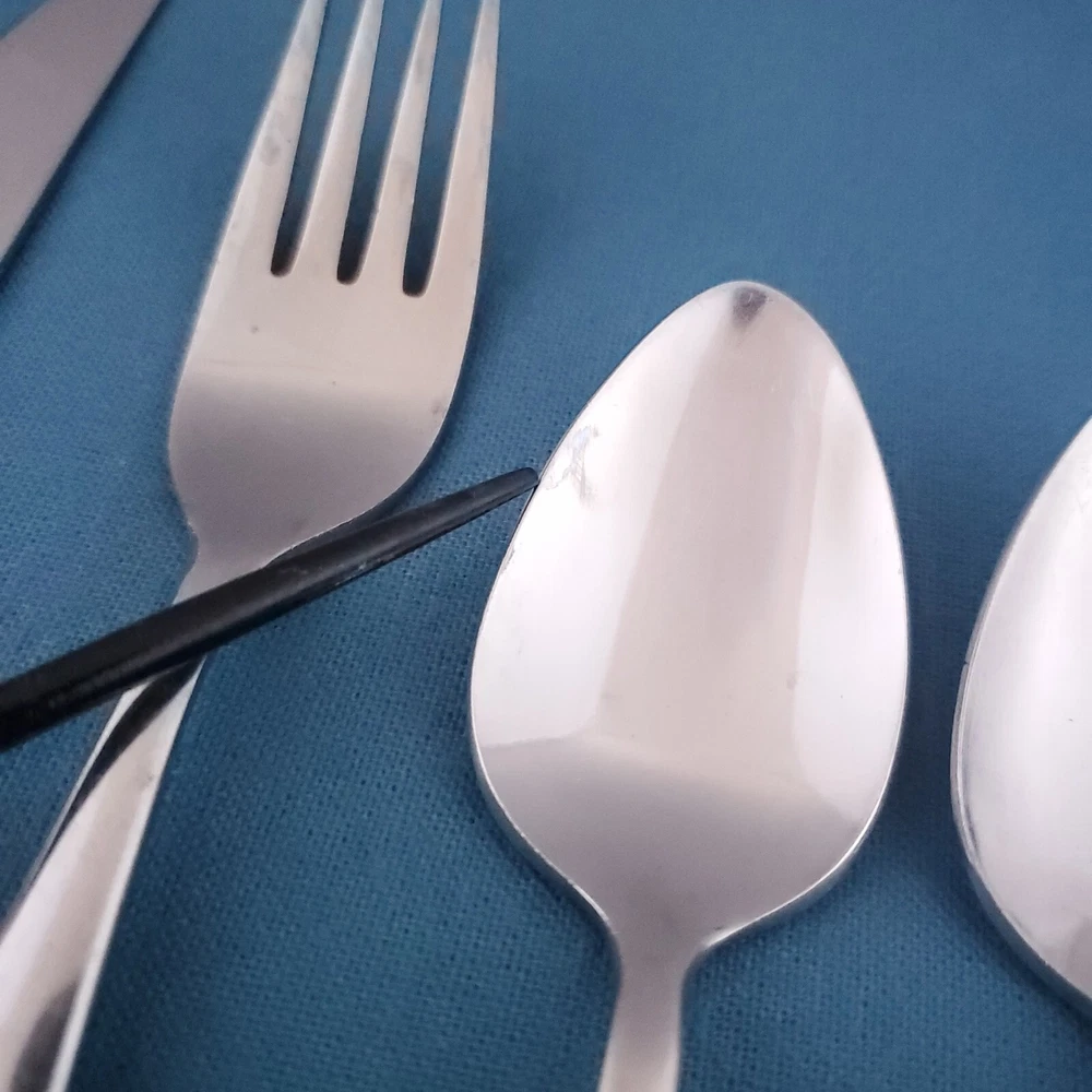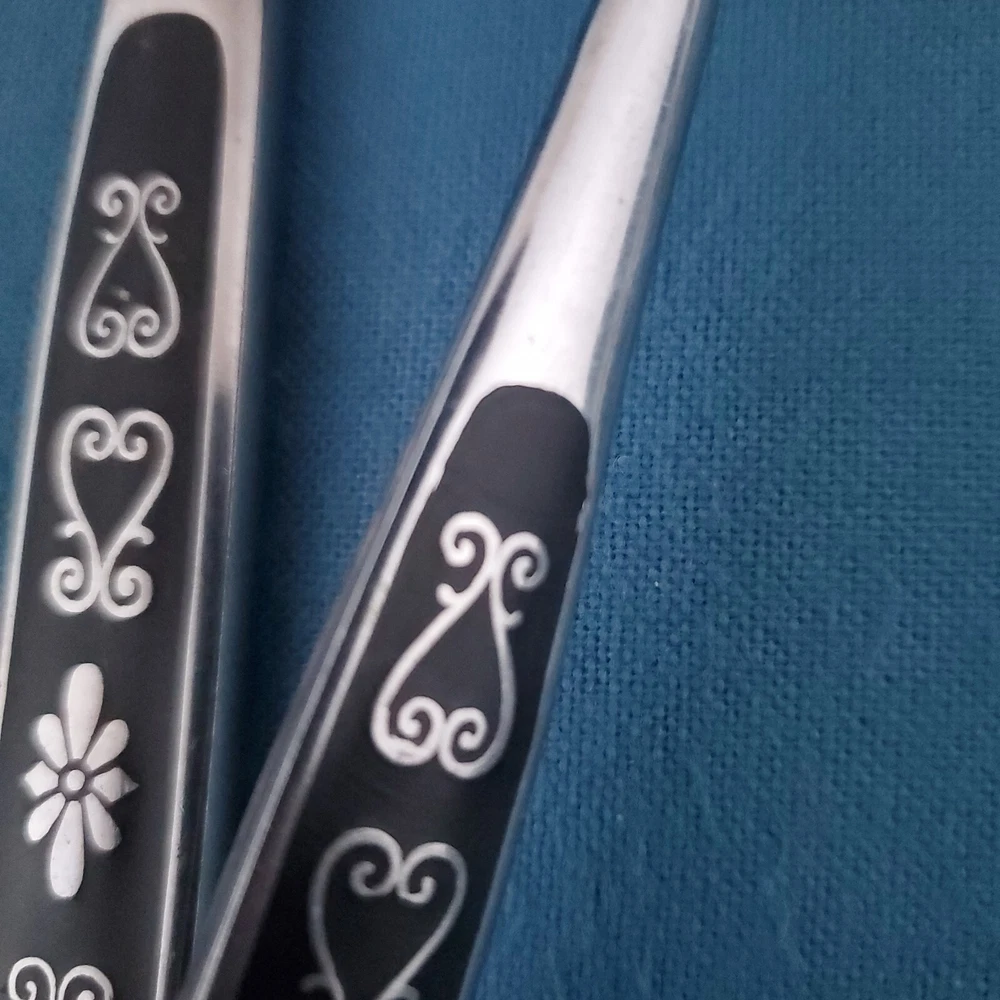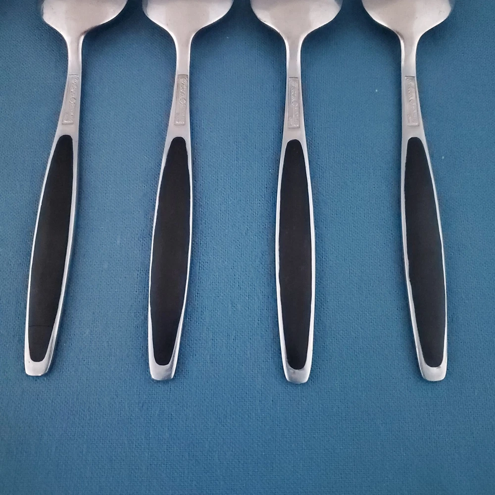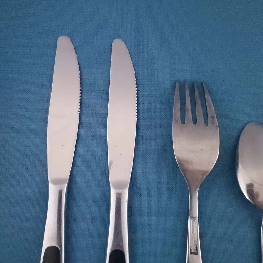 7 Pcs Riviera RIF25 ~ (1) Dinner Fork, (2) Dinner Knives, (4) Teaspoons ~ Black These beautiful pieces are in Used Vintage Condition. There are some marks, scuffs, nicks and surface scratches consistent with age and use as well as some spots and darkening . *Two Pieces have small cracks across the top of the black section ~ the fork and one of the spoons (see photos)* Please view the photos carefully for condition details. Don't forget to check out the other items in my shop. I'm getting in new fun things all the time. Thank you for looking! Have a great day!