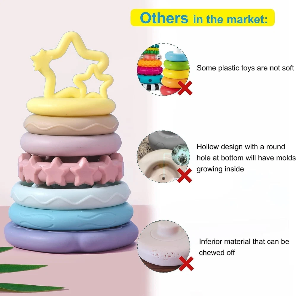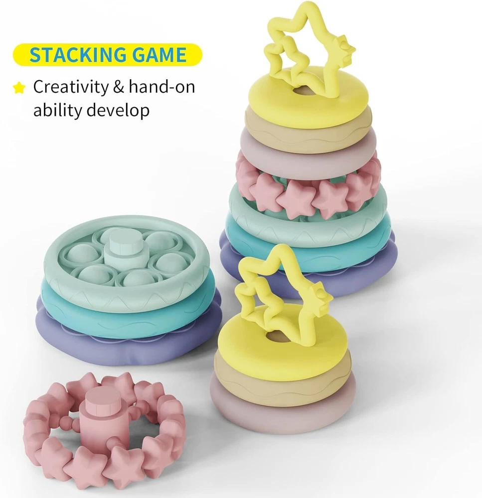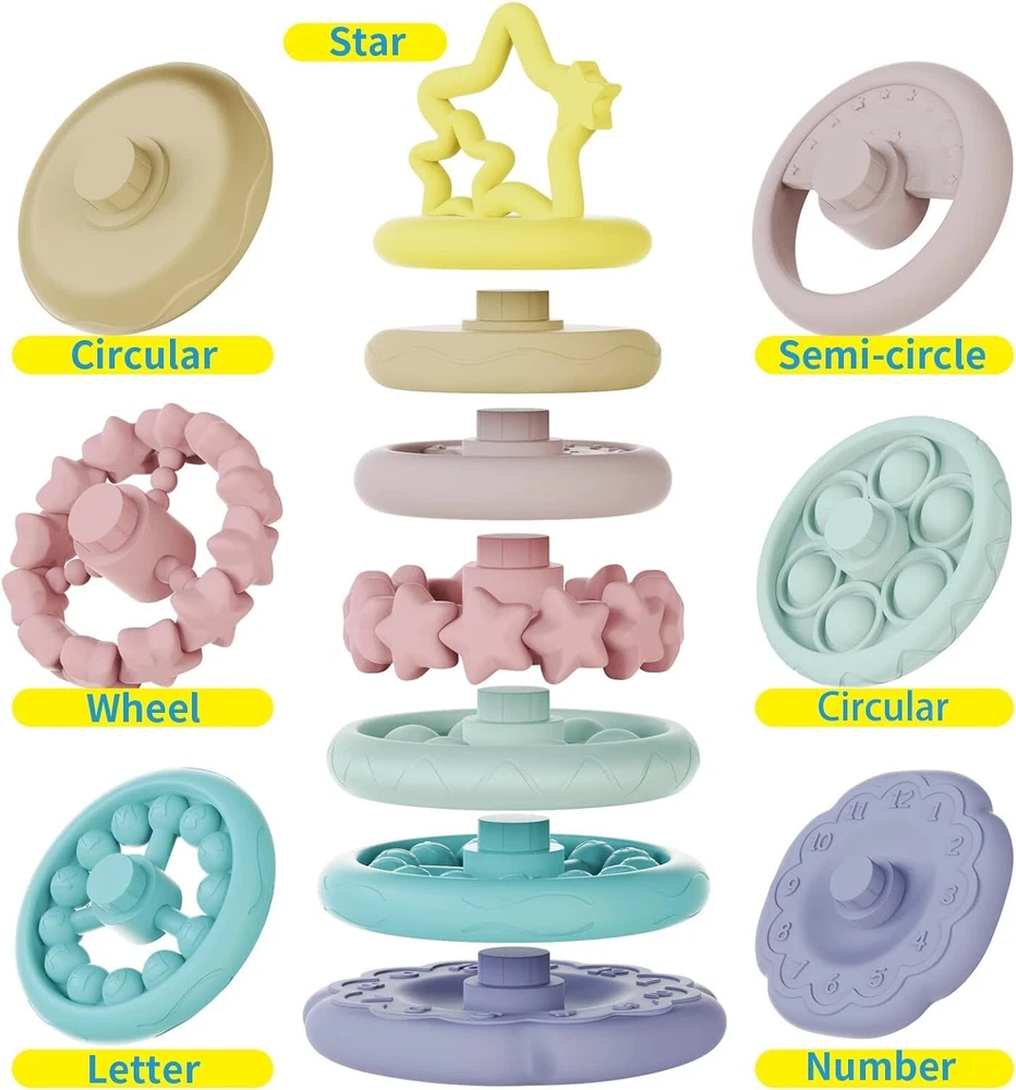 7 Pcs Stacking Toys Baby Toys Toddler Montessori Sensory Soft Rings Stacker T...