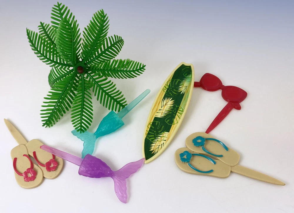 7 Piece BEACH Summer Theme SURFING Cake Toppers Decoration Palm Tree Surfboard Click Photos to Enlarge Description Welcome! Up for Auction is a 7-Piece Beach Themed Cake Topper Set Super fun beach set made from food safe resin Includes a 5" tall palm tree, 4" tall surfboard, red flip-flips, blue flip-flops, blue fish, purple fish and red sunglasses Great for a wide variety of Beach Cake creations! Click on Logo Below to Visit: for more wonderful bargains & save on shipping with multiple purchases! Please email with any questions. Thanks for looking! Payment and Shipping PAYMENT TERMS: Buyer to contact seller or checkout within 3 days of auction end. Seller reserves the right to relist if payment is not received within 7 days. Store Return Policy: All sales are not final. Returns are only accepted if the item does not arrive as described, or if an error was made and is reported within 24 hours of the receipt of shipment. In case of return, THE FULL VALUE OF THE ITEM IS REFUNDED. Shipping fees are not refunded. Only unused items in original package & condition will be considered. SHIPPING TERMS: Please use calculator to determine your shipping costs to anywhere worldwide! All international orders may be subject to taxes, duties and VATs and are the responsibility of the buyer. inkfrog terapeak
