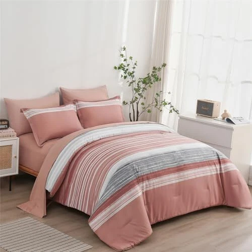 Number of Pieces: 7 Color: Blush Pink Size: Queen(7 Piece Set) Style: Modern Manufacturer: Does Not Apply gtin13: Does Not Apply Country of Origin: China UPC: Does Not Apply Brand: Does Not Apply Theme: Geometric Pattern: Striped Item Width: 11.54 MPN: Does Not Apply Package Dimensions: 16.06 x 11.54 x 6.18 inches Material: Polyester EAN: Does Not Apply Included Components: 1 Fitted Sheet, 2 Pillow Shams, 1 Flat Sheet, 2 Pillow Cases, 1 C Seasons: All Item Weight: 9.06 pounds Fabric Type: Polyester Item Length: 16.06 Product Care Instructions: Machine Wash, Dry Clean Only Type: Does Not Apply Batteries required: No Item Height: 6.18