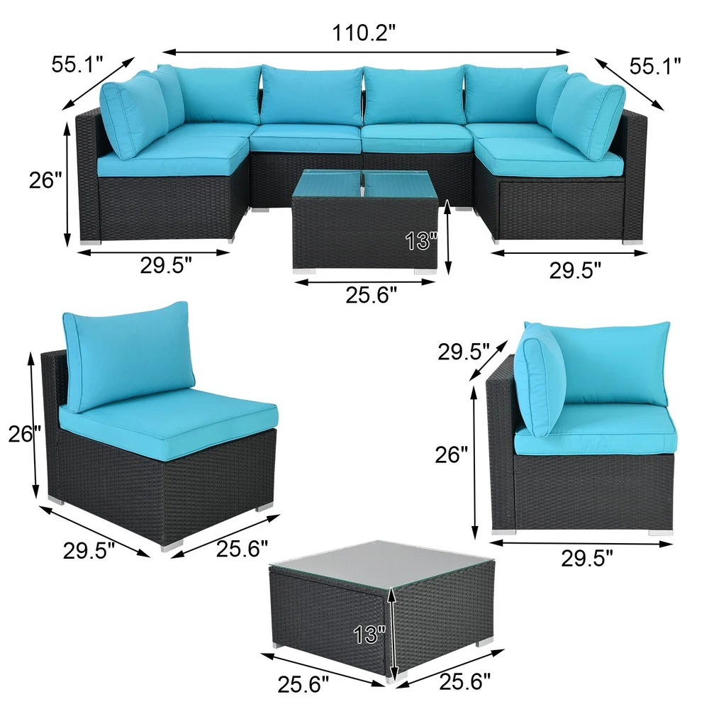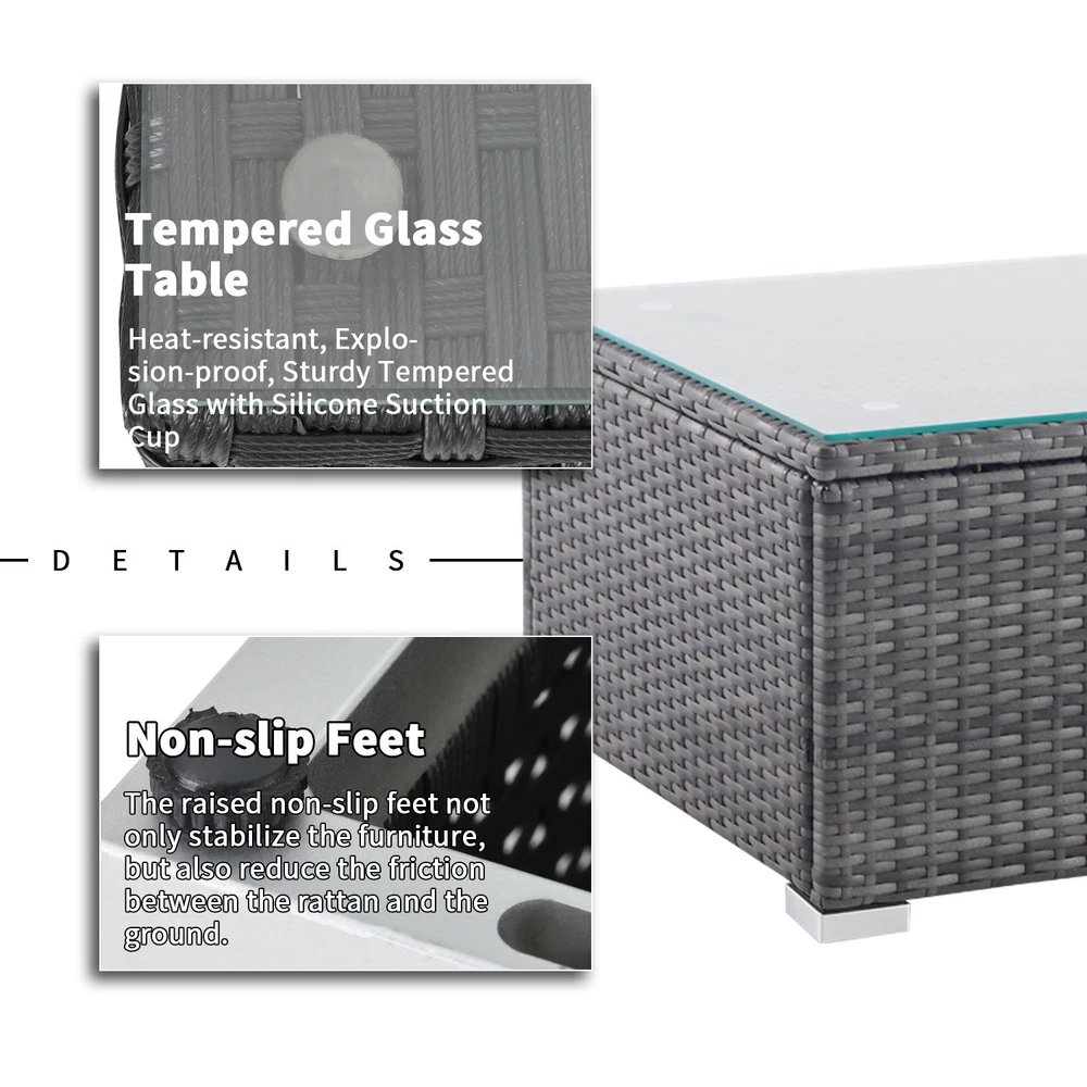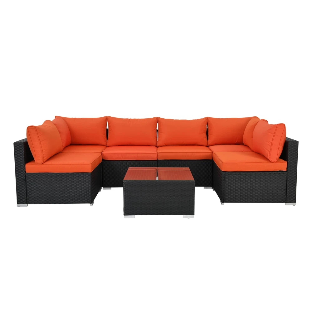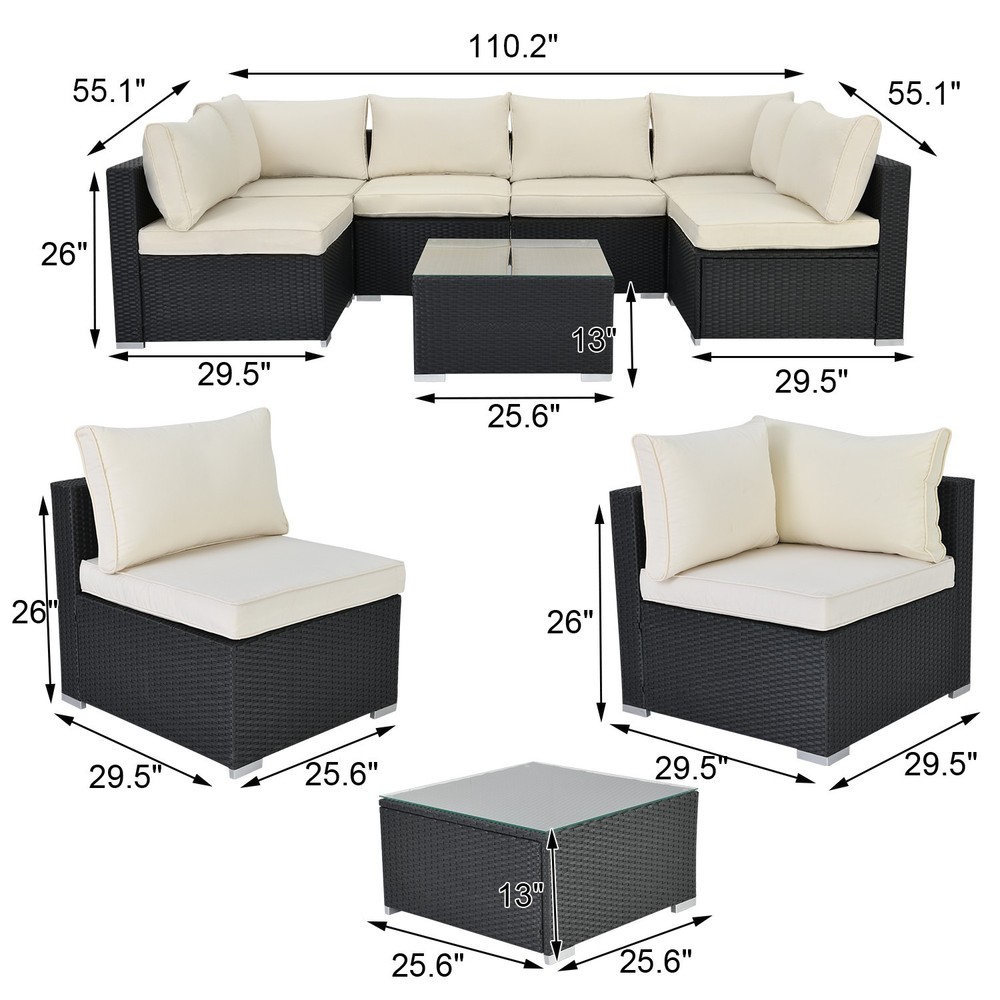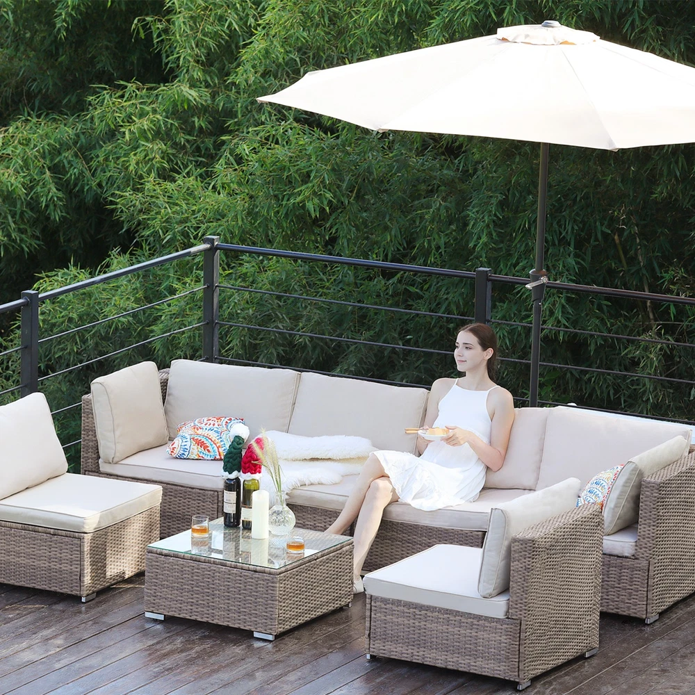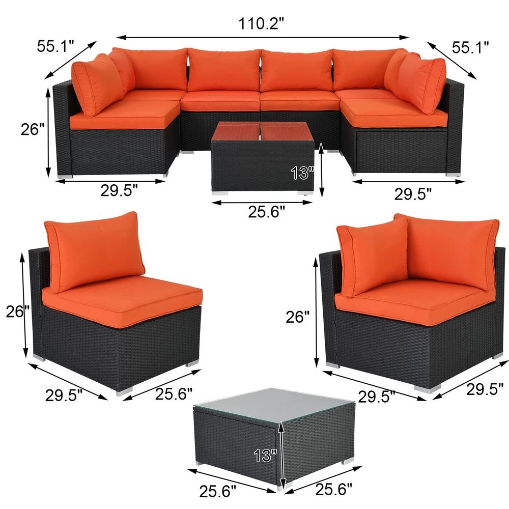 Durable All-Weather Patio Sectional Fureniture Set: This outdoor patio sectional combines hand-woven rattan outdoor furniture with a rust-resistant steel frame for a wicker patio furniture set built to last. Perfect for year-round use, this outdoor sectional furniture withstands sun, rain, and wind without fading, cracking, or sagging Thick Cushions & 2 Extra Pillows for Comfort: Our outdoor sectional includes plush 4" water-resistant cushions plus 2 extra pillows for added back support and style. The removable, washable covers make it easy to maintain your patio sofa, while the fade- and stain-resistant fabric ensures this wicker outdoor furniture always looks fresh Modular Layout for Any Outdoor Space: This outdoor sectional couch can be arranged into a U-shape, L-shape, or linear design to fit patios, decks, balconies, or poolside areas. Connector clips keep each piece of the patio sectional furniture set in place, giving your patio conversation set a clean, polished look Easy Assembly & Versatile Use: Your patio couch set arrive with all hardware, tools, and clear instructions for quick assembly. Whether you need backyard furniture, deck furniture, or a patio couch set, this outdoor sectional sofa adapts to any outdoor living area Stylish Coffee Table for Outdoor Entertaining: The matching wicker coffee table with a tempered glass top completes your patio furniture sectional. It’s perfect for drinks, snacks, or décor, making this outdoor patio set ideal for gatherings, relaxing, and enjoying your back yard furniture set in style