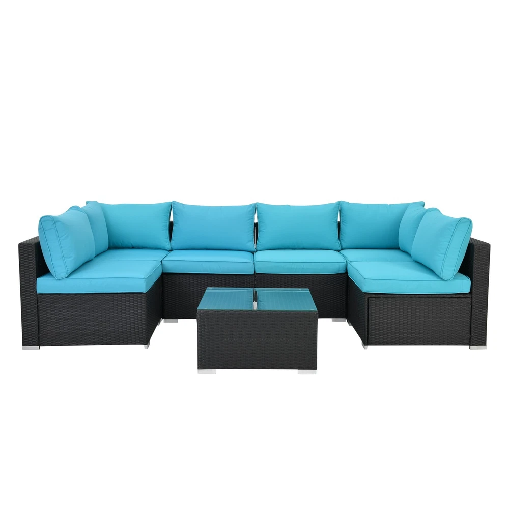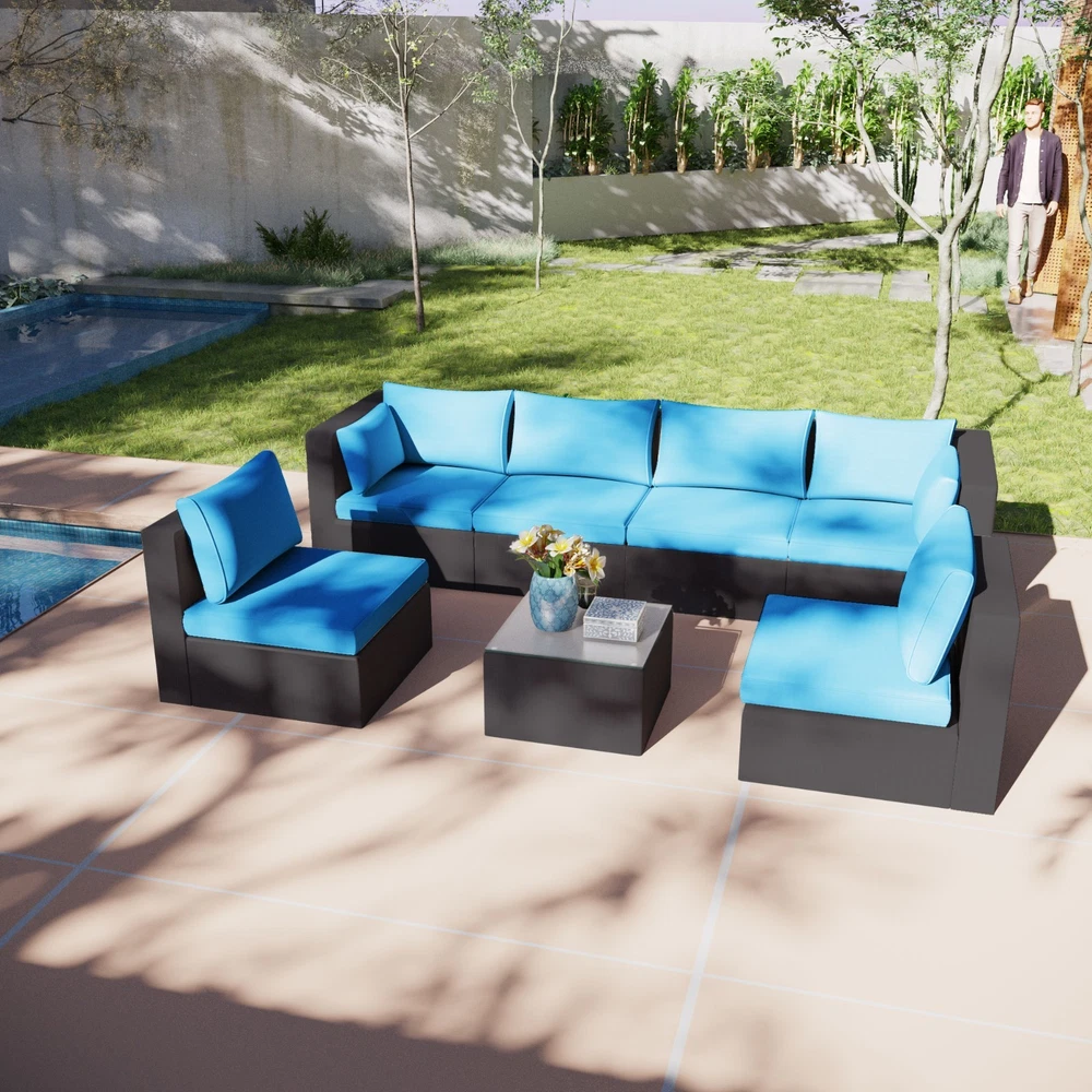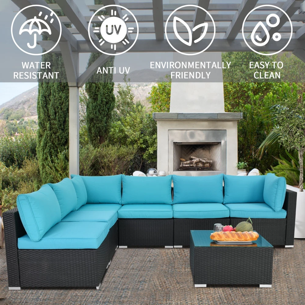 7 Piece Patio Furniture Set, Outdoor Couch Set—w Water Resistant Thick Cushions