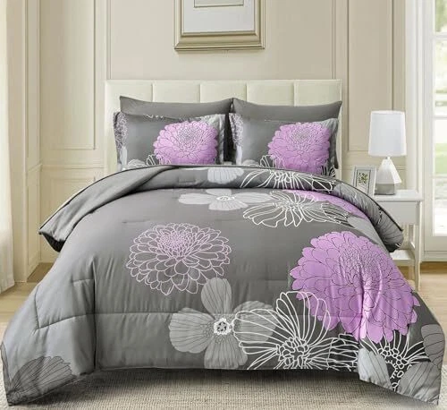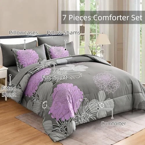 Return Policy Fast Delivery Trusted seller 7 Pieces Bed in a Bag Comforter Set Queen Size Grey Purple Bedding Sets Floral Soft Microfiber Comforter for All Seasons 90"×90" Product Description Floral pattern: This 7 pieces comforter set has flowers of different sizes and colors printed on it.Many flowers bring vitality and vigour to people. It also has a mysterious feeling.Looks elegant and bold. Decorate your bedroom. Can be given as a gift to your friends, family, or yourself. 7 Pieces comforter set: This queen comforter set has 7 pieces.The quantities are as follows: 1 comforter (90” x 90”), 2 pillowcase (20” x 26”), 2 pillow shams (20"x30"), 1 fitted sheet (60 "x80"+12"), 1 flat sheet (90"x102"). The patterns are in the same style and are uniform. You don't have to bother to buy various products of the same style.Save time. Microfiber Material: This 7 pieces comforter set is made of super soft microfiber material. Soft, lightweight, compact and durable,warm. Available in all seasons. Easy to care: Our 7 pieces comforter set are machine washable! Wash in warm or cold water, roll on low and dry, iron if necessary. Very convenient and save time. Satisfactory service: Customer satisfaction is our greatest pursuit,aslo is standard of good products. We hope that the products can meet the various needs of customers. If you have any questions or suggestions about the product, please contact customer service by email in time, and we will give you a satisfactory answer. Shipping Returns Payment Shipping Shipping is FREE to all addresses other than APO/PO boxes in the lower 48 states. All our stock ships from US-based warehouses. Shipped via USPS or UPS (depending on location and package weight) Unless stated otherwise, all orders will ship within 24-72 hours of your payment being processed. Check our feedback to see the great reviews of FAST shipping we offer. Returns Seller does not accept returns Payment We currently accept payment via eBay managed payments only. Once payment is cleared, we will dispatch your shipment within 1-3 business days. Please refer to the "Shipping" tab for more information regarding shipping speed to your destination.