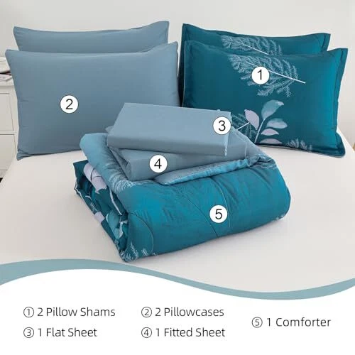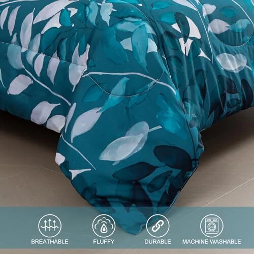 Return Policy Fast Delivery Trusted seller 7 Pieces Teal Botanical Comforter Set Queen Size - Teal Green Floral Bed in a Bag - Elegant Leaves Floral Comforter with Flat/Fitted Sheets Set, All Season Soft Microfiber Bedding Set (90"x90") Product Description 【LUXURIOUS FLORAL DESIGN】7-piece teal queen comforter set features a stunning floral design that adds a touch of elegance to any bedroom decor. The intricate plant leaves pattern in gradient colors extend upwards, impressing and creating a cozy atmosp for a good night's sleep 【SOFT MICROFIBER】Floral comforters queen size is made from high-quality microfiber material, our botanical bedding set is designed to be soft, lightweight, and breathable. It provides a cozy and comfortable sleeping experience, ensuring a restful night's sleep, making it perfect for all seasons 【COMPLETE 7-PIECE BEDDING SET】This bedding comforters sets come with everything you need to create a comfortable and stylish bedroom. The set includes 1 Comforter(90"x90") + 2 Pillow shams( 20"x26")+ 2 Pillowcases ( 20"x30") 1x Flat sheet(90"x102")+ 1 Fitted sheet(60"x80"+12"), making it a complete bedding solution. NOTE: The pillow shams were random clipping, so the pillow shams might be vary. 【MACHINE WASHABLE】This bed in a bag king is machine washable, making it easy to keep clean and maintain. Simply toss it in the washing machine and tumble dry on low for a hassle-free cleaning experience 【ALL SEASON COMFORTER】Our botanical comforter set is crafted with exquisite workmanship, and designed to provide comfort and warmth throughout the year. Precise stitching and the durable fabric ensure it is the perfect choice to be used in your bedroom, guest room, or vacation home Shipping Returns Payment Shipping Shipping is FREE to all addresses other than APO/PO boxes in the lower 48 states. All our stock ships from US-based warehouses. Shipped via USPS or UPS (depending on location and package weight) Unless stated otherwise, all orders will ship within 24-72 hours of your payment being processed. Check our feedback to see the great reviews of FAST shipping we offer. Returns Seller does not accept returns Payment We currently accept payment via eBay managed payments only. Once payment is cleared, we will dispatch your shipment within 1-3 business days. Please refer to the "Shipping" tab for more information regarding shipping speed to your destination.