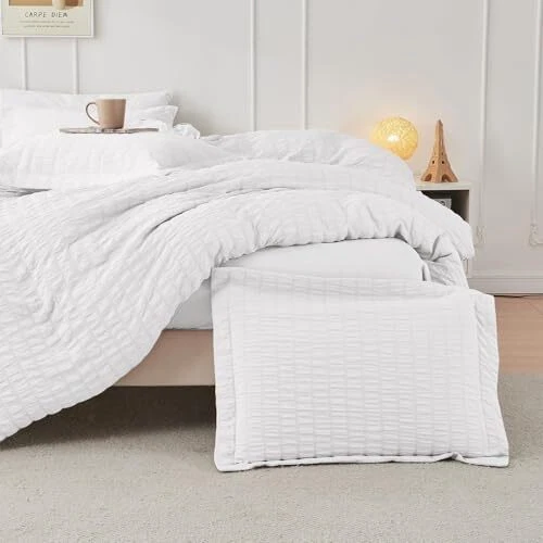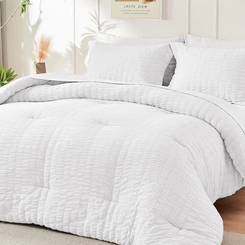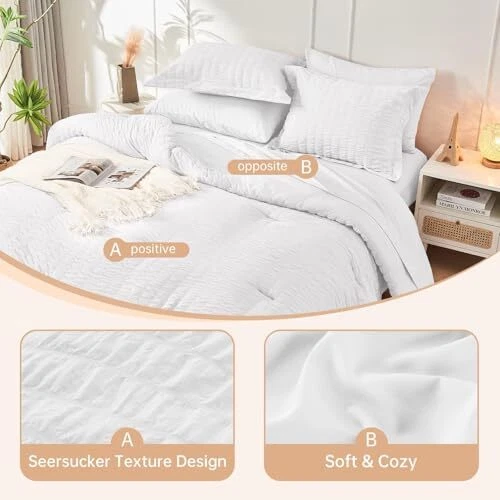 Return Policy Fast Delivery Trusted seller 7- Pieces Queen Comforter Set, Comforter Set White Seersucker Bed in A Bag Queen, All Season Bedding Sets with Comforter, Pillow Sham, Flat Sheet, Fitted Sheet and Pillowcase Product Description Chic Seersucker Design: Compared to other plain comforter sets without any design, this seersucker comforter set displays a simple and trendy pleated pattern in elegant white tones, creating a vivid, three-dimensional wave visual effect All Seasons Versatile: This white bedding set is suitable for all seasons, comfortable and breathable on hot nights without making you sweat. It is fluffy and warm enough on cold nights, The front of the comforter has a "wrinkled look" Easy Care & Pet Friendly: The solid-colored stitching on the comforter effectively prevents clumping, greatly improving its durability and providing you with long-lasting warmth. Our lightweight bed comforter set doesn't attract your pet hair and is easy to clean Cationic-Dyed Technology: Our bed set adopts cationic dyeing technology, which is more unique and innovative than ordinary dyeing. It has not been bleached and does not contain any fluorescent agents the color is more natural, long-lasting What You Can Get: Queen/FULL Size bed in a bag includes 1 comforter (88" x 88"), 1 flat sheet (90" x 102"), 1 fitted sheet (60" x 80"), 2 pillowcases (20" x 30") and 2 pillow shams (20" x 26") Shipping Returns Payment Shipping Shipping is FREE to all addresses other than APO/PO boxes in the lower 48 states. All our stock ships from US-based warehouses. Shipped via USPS or UPS (depending on location and package weight) Unless stated otherwise, all orders will ship within 24-72 hours of your payment being processed. Check our feedback to see the great reviews of FAST shipping we offer. Returns Seller does not accept returns Payment We currently accept payment via eBay managed payments only. Once payment is cleared, we will dispatch your shipment within 1-3 business days. Please refer to the "Shipping" tab for more information regarding shipping speed to your destination.
