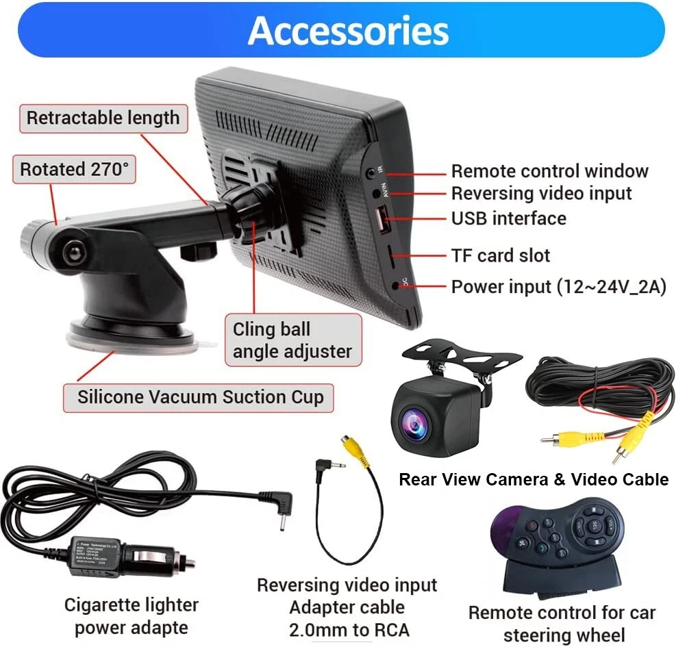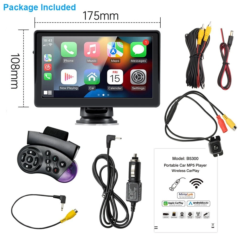 7'' Portable Car Stereo Radio Wireless Apple CarPlay Android Auto Backup Camera Features: 【 Wireless Apple CarPlay & Android Auto 】This car multimedia monitor is compatible with wireless Apple Carplay, wireless Android Auto function. (It also can support Wired CarPlay & Wired Android Auto.) 【 Wired Apple & Android Auto-Link 】This car multimedia monitor is compatible with Apple & Android Wired Auto-Link. 【 Voice Control 】Uses your smartphones such as Hi, Siri / Hello Google assistant wirelessly to make calls and play your music without taking your eyes off the road. 【 Rear View Camera 】This monitor come with HD rear view backup camera. It can help you have a safe reversing and parking. (The video cable length is 20ft(6M), it you want 33ft (10M) cable, you can buy one in our store) 【 FM Voice Transmit 】Our multimedia monitor have a small speaker. If you want to enjoy your original car audio, you can use FM Transmit function to launch voice signal to your original car radio. 【 USB, TF Card, Bluetooth 】This car multimedia monitor can support USB disk, TF card music, video playback. It also can supprot Bluetooth music & handsfree call. 【 HD Touch Screen 】7 inch screen car stereo with 1024x600 HD IPS screen, support 1080P video playback. Enjoy the features such as maps, movies and more. 【 Simple Installation 】This car multimedia monitor with the suction mount secures intellidash to your dashboard or windshield and can be easily removed and stored. 【 Compatible with 99% vehicle 】Our multimedia monitor work voltage is 12-24V. Truck, bus, van, car, both vehicle can be used. It can let everyone enjoy CarPlay & Android Auto. Specification: Model: YT-B5300A OS: Linux Screen size: 7 inches Screen resolution: 1024x600 Radio Transmit frequency: FM 93.0~108.0MHz Output power: built-in 1W speaker Working voltage: 12~24V Working temperature: -10~+60℃ Bluetooth version: 5.0 (default name: CarPlay) Shell size: 188x110mm/7.08x4.33" Phone screen mirroring: support Steering wheel control: not supported Video output: not supported Offline maps: not supported Dashcam input: not supported Built-in speaker: yes USB port: USB 2.0 TF card: support Reversing video input: support Audio format: MP3/AAC/APE/OGG/M4A/RA/WAV Video format: H263/H264/H265/DIVX HD/AVI/FLV/MKV/MPEG/MP4/WMV9/VC/ASF/TS/QT Image format: JPEG/PNG/BMP/GIF/TIFF Package Included: 1 x Car Multimedia Monitor 1 x Power Cable 1 x User Manual 1 x Rear View Camera & Video Cable 1 x Monitor Suction Cup Gasket 1 x Remote Control 1 x Packaging Box Shipping 1. We will send the item to you from the warehouse near you. 2. We only ship to address that you left on the order, must confirm your Shipping address. 3. All the items will be shipping within 1-2 working days after receiving the payment, except some holidays. 4. When the shipping method is express delivery, some areas need to pay remote fees to the courier company. Returns 1. If you have not satisfied as you received the item, please return it within 30 days for a replacement or money back. Please contact us before you return it. 2. All returned items must be in the original packaging with all components and accessories included, and you must provide us the return shipping information (The shipment or the tracking number) 3. Return shipping fee is to be paid by the buyers. We will not be responsible for any custom duty or import tax. Warranty 1.One Year Manufacturer's Warranty for defective items (excluding items damaged and/or misused after receipt). 2.Defective items must be reported and returned to us within the warranty period (and in the original packaging, if possible). You must tell us what the defect is and give us your eBay ID. We do not repair or replace items with an expired warranty. Bluetooth 5.0 Output Power built-in 1W speaker Color Black Fitment Type Direct Replacement MPN Does not apply Material Metal,ABS Carplay Apple Carplay/Android Auto USB Port Support Funtion Car play/Bluetooth/FM /Mirror link/Android Auto Touch screen Type Capacitive Multi-Touch Screen Brand YuanTing Type Radio Model YT-CA706 Unit Size 7'' Features Bluetooth Ready, HD Radio Ready, Touchscreen, USB Input Country/Region of Manufacture China TF Card support