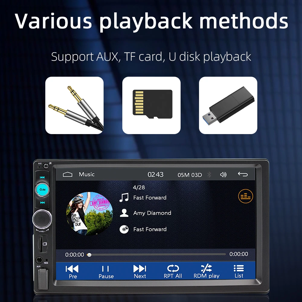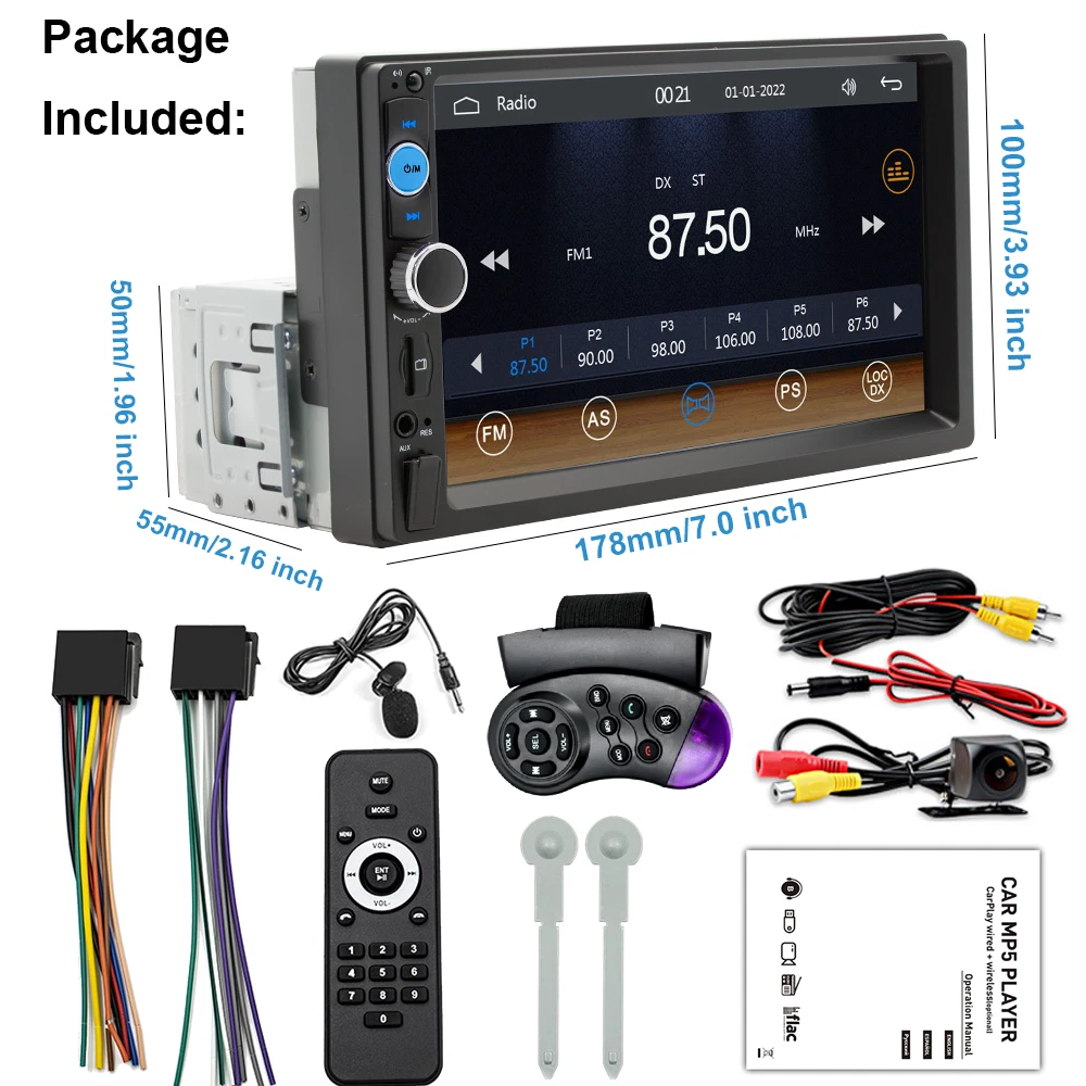 7 inch Single 1 Din Touch Screen Car Stereo Radio Mp5 Player Apple CarPlay/Android Auto Mirror Link Note:Please Check Radio's Size with Car Dashboard Before Buying !!! Features: 1. Mobile Phone Interconnect Android Auto / Apple Carplay 2. Smartphone Mirror Link Android / iOS 3. Radio FM 4. U Disk (audio / video / photo) 5. AUX Input Function 6. Bluetooth Function 7. RCA Audio Output Can Be Connected to the Subwoofer 8. Reverse Rear View Function 9. Button Seven Color to Choice 10. Video Entry 11. Original Car Steering Wheel Learning Function Product details: Model: F7010c Voltage: DC 12V Type: Car MP5 Player System: Sunplus Ecos System Configuration: Full Capacitive Touch Screen Size: Single 1 Din Screen size: 7 inches Resolution: 1024x600 Panel Size: 178x100mm Lighting Panel: 7 Color lights Host Depth: 55mm Single Weight: 680g CarPlay: Wired connection Android Auto: Wired connection Mirrorlink: Mirrorlink (Android / iPhone) Radio: FM1/FM2/FM3 Radio chip: ZT0811 Power: 60W Audio Output: 4x 50W Temperature: -10 ~ 60 ℃ Reverse Image: Support Brake Reminder: Support Steering Wheel Control: Support Bluetooth: Version 5.0 Amplifier Chip: CD7388 Radio Frequency: FM 87.5 ~ 108MHz Video Output: Support Remote Control: 21 Silicone Keys USB Interface: Front panel USB 2.0 Reset Button: Have RCA Terminal: 2 Audio Output, 1 Reverse Input, 1 Video Input, 2 Video Output AUX Input: Have Audio Format: MP3 / WMA / AAC / APE / OGG / M4A / RA / WAV Video Format: H264 HD (720P 1080I 1080P) AVI / FLV / MKV / RMVB / MPEG / ASF / TS / H264 / QT Picture Format: JPEG / PNG / BMP / GIF / TIFF Language: English / Spanish / Portuguese / Simplified Chinese / Chinese / Traditional Chinese / German / French / Turkish / Japanese / Russian / Italian / Polish / Dutch / Danish / Greek / Israelis Package Included: 1 x Car MP5 Player 1 x Power Cable 1 x Remote Control 1 x Car Backup Camera 1 x Steering Wheel control remote 1 x Backup Camera 1 x Microphone 1 x User Manual Payment 1. We only accept payment via PayPal, other payment is not acceptable. 2. Please make sure your shipping address is the same of your PayPal address before you pay. Shipping 1. We ship to Worldwide,e xcluded some far away places. 2. We only ship to confirmed PAYPAL address; your PAYPAL address must match your Shipping address. 3. Any non-received items caused by invalid address registered on PayPal are not in our full refund or replacement policy. Shipping fee has including the local handing and packaging fee. 4. All the items will be shipping within 1-2 working days after receiving the payment, except some holidays. 5. When the shipping method is express delivery, some areas need to pay remote fees to the courier company. Taxes, Customs & Duties 1. Some countries are required to collect customs duties. Please confirm your local customs duties before placing orders. 2. We will not be responsible for any custom delay or tax, because transit time is highly depended and provided by postal Service. Returns 1. If you have not satisfied as you received the item, please return it within 30 days for a replacement or money back. Please contact us before you return it. 2. All returned items must be in the original packaging with all components and accessories included, and you must provide us the return shipping information (The shipment or the tracking number) 3. Return shipping fee is to be paid by the buyers. We will not be responsible for any custom duty or import tax. Warranty 1.One Year Manufacturer's Warranty for defective items (excluding items damaged and/or misused after receipt). 2.Defective items must be reported and returned to us within the warranty period (and in the original packaging, if possible). You must tell us what the defect is and give us your eBay ID. We do not repair or replace items with an expired warranty. Feedback