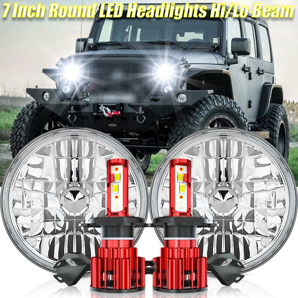7" Inch Round Diamond Crystal Clear Glass Lens Headlight Conversion Kit contains everything you need to upgrade your headlights to the newest LED headlight technology while keeping that classic look! -Made with High Quality Glass Lenses - NOT cheap plastic! -Housing has Removable bulb sockets for you to install the new LED bulbs! -Direct Plug & Play design (certain vehicles will require slight modification) -Professional Installation is highly recommended -Warranty 5 years Pair (2 Bulbs Right And Left) 7" Inch Diamond Crystal Clear Semi Sealed Beam Glass Lens Housing Headlights. This Pair Of Headlights Includes 70W Super White LED H4 Light Bulbs. These Headlights Have A Clean Custom Look But Fit Into The Stock Buckets And Plug Into The Stock Wiring Without Modification. These Light Up 500 Percent Brighter And Whiter Than The Standard Stock Sealed Beam Incandescent Headlight Bulbs. These Have The Original 3 Prong Plug Design On The Back So They Will Plug Directly Into The Original Wiring Harness. These Will Fit Any Car Or Truck That Has 2 Round Glass Headlights That Are 7" Inches. 9003/H4 LED Bulbs Specifications -Color: 6000K Cool White -Power Consumption: 50 Watt -Luminosity: 10,000 LM -360 Degree / Z6 Series CSP Chip Perfect Beam Angle -H4 - Dual Beam Function (You will have HIGH AND LOW!) -500% Brighter than Stock Halogen -Built in IC Circuit (Current Regulator)-Prevents LED Damage From Voltage Variations & Spikes. -Lifespan: 50,000 Hours -Operating Voltage: DC 12V / 24V -Amperage: 1.9A - 2.9A -Maintenance free, Waterproof IP67, Shockproof -Warranty 5 years Contents: - 2x Headlight Housings - 2x H4 LED Bulbs (Hi/Lo Dual Beam) On Nov 15, 2024 at 01:08:06 PST, seller added the following information: