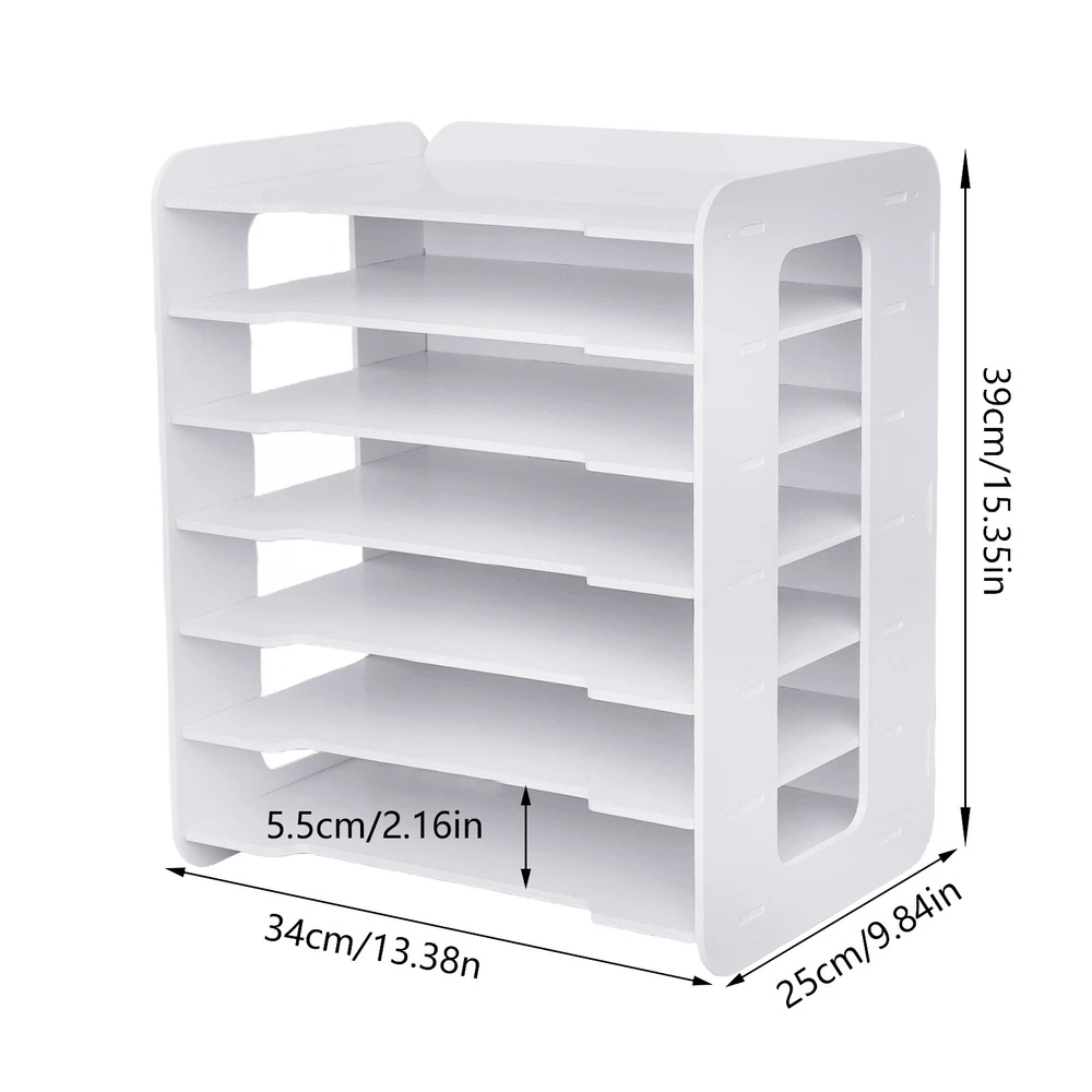 7 Tier Desktop Organizer Paper File Holder Document Storage Rack Office Home NEW Description Do You Want Your Desk to Be Clean and Tidy? so Let's Try Our Seven-layer File Organizer! It Is Small, but It Can Provide You with Enough Storage Space and save Space to the Greatest Extent. and Its Humanized Hollow Ventilation Design and Partition Depression Design Can Also Facilitate Your Use! Package Included Application This File Organizer Is Very Suitable for Storing Letters, A4 Paper, Documents, Folders, Etc. in Offices and Studies. 1* Back Plate 2* Side Panels 7* Partitions All Accessories for Assembly Key Features Desk Paper Manager: It Has a Seven-level Partition Design That Allows You to Sort and Store Different Documents. and That Allows You to Quickly Select the Documents You Need, Saving You Time. Space-saving: with a Small Footprint of 9.84*13.38in, This File Organizer Is Small and Won't Take up Too Much Space. and It Makes Good Use of the Vertical Space, Which Saves More Space for You. Large Storage Space: It Provides You with 7 Layers of Storage Space. Its Top Layer Can Also Be Used to Store some Stationery. As Long As You Have One, You Can Get a Clean and Tidy Desktop! Solid Structure: the File Organizer Is Reinforced with Mortise and Tenon Joints and Screws, so It Won't Shake or Collapse Easily. It Allows You to Store More Files. User-friendly: the Side Panels of the File Organizer Are Hollow, Which Not Only Makes It Easy for You to Move the File Organizer but Also Is Well-ventilated and Easy to Clean. the Recessed Design of the Partition Makes It Easier for You to Remove the Files. and It Is Smoothly Curved, Which Protects You from Scratches When Accessing Your Files. Easy to Install: You Just Need to Connect the Various Plates in the Package Together to Get a Simple and Stylish File Organizer. and It Adopts the Plug-in Installation Mode, Which Is More Convenient for You to Install. In Addition, It Is Complete with Accessories, so You Don't Need to Buy Additional Tools. Good Material: This File Organizer Is Made of Pvc, an Environmentally Friendly Material. This Material Has the Characteristics of Water Resistance, Mildew Resistance and Corrosion Resistance, so You Can Use It for a Long Time. Thick Partition: Its Partition Is up to 0.197in Thick. Compared with Other File Organizers, It Is More Difficult to Break. so You Can Rest Assured to Store Your Documents on It. Customer Service: We Aim to Provide Quality Products and Services. If You Have Any Problems, Please Feel Free to Contact Us. We Will Reply and Solve the Problem for You As Soon As Possible. Details Top Bulge: Once You Have Fitted One Back Panel and Two Side Panels, the Raised Sections Prevent Small Items Placed on the Top from Falling off. Hollow Side Panels: This Design Makes It Easy for You to Move and Clean the File Organizer. and It Can Also Play a Role in Ventilation to Protect Your Files. Recessed Partition: This Design Is Convenient for You to Take Documents, While the Smooth Arc Surface Will Not Hurt You, Which Is Practical and Safe. Specification Name: Horizontal Seven Layer File Organizer Mounting Type: Desktop Style: Simple Material: Pvc Color: White Number of Layers: 7 Product Size: 34*25*39cm/ 13.38*9.84*15.35in Layer Spacing: 5.5cm/2.16in Partition Thickness: 0.5cm/0.197in Package Size: 42*32*6cm/16.54*12.6*2.36in Net Weight: 1.6kg/3.53lbs Gross Weight: 1.7kg/3.75lbs Notes Please Allow the Slight Color Difference Caused by the Shooting Light and 1-3 Cm Error Due to Manual Measurement, and Make Sure You Do Not Mind Before Ordering. Payment Delivery details Terms of sales About us Contact us Payment We accept ebay payment 。 Fees such as import duties, taxes are not included in the item price or shipping costs. These charges are the buyer's responsibility. Delivery details Shipping: 2-9 working days to: USA Terms of sales We maintain high standards of excellence and strive for hundred percent customer satisfaction. Feedback is very important to us. We hope that you contact us immediately before you give neutral or negative feedback, so that we can address your concerns. It is impossible to address issues if we do not know about them! About us Your satis faction is our ultimate goal. We work hard to earn your trust and future business. Our certified technicians have tested each item before shipping. The unit comes with 1 year limited warranty on all manufacturing defects. a) If you receive a defective item, you may return it or ask for a discount. Please contact us within 14 days after you receive the package. b) What you returned must be intact and in its original packaging as re? u. Customer is responsible for shipping costs of the returned item. c) We will cover the cost of shipping back t with the shipping rate indicated in the registration page. We will send you a new unit or refund the full payment you paid. Thank you. Contact us Business Hour Business Hour: Monday To Friday: 8:30 AM to 5:00 PM (Beijing China time) Due to time zones, our reply to your questions may not be immediately. But within above working time, we will reply your email within 24 hours. If it's non-workdays, please kindly be patient and wait till Monday. Please contact us with ebay message. Please feel free to contact us if you have any questions. Monday To Friday: 8:30 AM to 5:00 PM (Beijing China time) Due to time zones, our reply to your questions may not be immediately. But within above working time, we will reply your email within 24 hours. If it's non-workdays, please kindly be patient and wait till Monday. Please contact us with ebay message. Please feel free to contact us if you have any questions. Product length 34cm Product width 25cm Product height 39cm product weight 1.6kg Style Simple Number of Layers 7 Application scenarios Home Office School Classroom Brand Unbranded MPN Does not apply Number of Pockets 6 Type 7 Tier White Wooden Organizer Rack Sheet Size N/A Material plastic Features Easy to Install Color White U