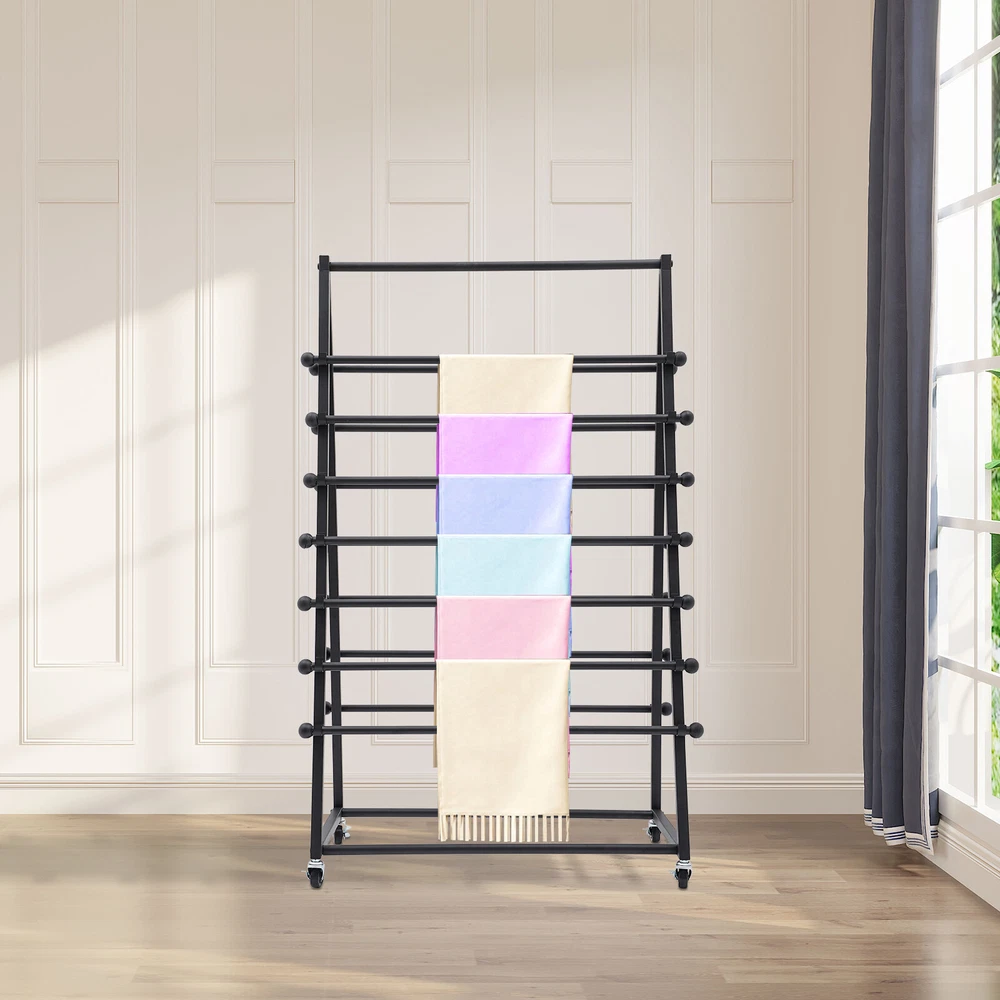 Specification Material: Carbon Steel Color: Black Style: Modern Shape: Triangular Process: High-temperature Baking Paint Mounting Type: Freestanding Assembly Required: Yes Number of Tiers: 7 Number of Crossbars: 14 Each Tier Load Capacity: 4.5kg/10lbs Gross Weight: 7.5kg/16.53lbs Net Weight: 7kg/15.43lbs Each Rod Diameter: 1.6cm/0.63in Package Included 1* Ribbon Organizer 1* English Installation Instruction All Accessories for Assembly 7 Tier Ribbons Roll Storage Rack Metal 2-Sided Ribbon Organizer Wire Spool Stand Key Features Build to Last: It is made of high-quality carbon steel with a high-temperature baking paint treatment , which will not rust or corrode, and is durable and waterproof to meet your long-term storage needs. Ample Space: The overall height of the 7-tier design is 47.24 inches, the spacious spacing and double-sided use make it good for placing items and keeping them fresh, giving you a clean and tidy visual experience. Thoughtful Design: With 14 removable bars, you can neatly store and display a variety of ribbons. Plus, it allows you to quickly restock or change ribbons as you need them. Excellent Load Capacity: The thicker tubes and sturdy triangular construction allow each tier to hold approximately 10 lbs. for your silk scarf and scarf display needs. Move and Fix at Will: Four universal wheels on the bottom (all with brakes) help you move and secure the product. Versatile Decoration: The elegant black color and simple lines make it a work of art and can be adapted to most home or store décor styles. In addition, colorful ribbons placed on the aspect will also make it look more vibrant and beautiful. Effortless Clean: Thanks to its smooth surface, removable crossbars and simple structure, you can wipe away stains with a soft rag. Easy to Assemble : With complete accessories and an English installation diagram, you can assemble it quickly and easily and enjoy the fun of the assembly process. Ideal Gift: Thanks to its practicality and beauty, you can give it as a Christmas, Thanksgiving, or housewarming gift to craft enthusiasts. Protective Package: We have used air bubble bags to wrap this product, designed to minimize damage to the product during shipping. Details Round Edges: The smooth, and burr-free edges make it not only more comfortable to use but also enhance the safety of use. Spherical Blocks: The spherical blocks on the crossbar prevent the ribbon from falling off and make the product look better. Application It can be used for both DIY, craft store, business, home, craft room, florist, gift store, studio. It can store towels, ribbons, scarves, shawls, ties, scarves, ribbon rolls, Vinyl rolls, clothes, bags and more! Specification Material: Carbon Steel Color: Black Style: Modern Shape: Triangular Process: High-temperature Baking Paint Mounting Type: Freestanding Assembly Required: Yes Number of Tiers: 7 Number of Crossbars: 14 Each Tier Load Capacity: 4.5kg/10lbs Gross Weight: 7.5kg/16.53lbs Net Weight: 7kg/15.43lbs Each Rod Diameter: 1.6cm/0.63in Product Size: 70*40*120cm/ 27.56*15.75*47.24in Package Size: 120*43*6cm/47.24*16.93*2.36in Package Included 1* Ribbon Organizer 1* English Installation Instruction All Accessories for Assembly Notes Please note that this product does not include ribbons and other display items. Please measure the size before use to see if it fits your needs. Please allow the slight color difference caused by the shooting light and 1-3cm error due to manual measurement, and make sure you do not mind before ordering. Payment Delivery details Terms of sales About us Contact us Payment We accept ebay payment 。 Fees such as import duties, taxes are not included in the item price or shipping costs. These charges are the buyer's responsibility. Delivery details Shipping: 2-9 working days to: USA Terms of sales We maintain high standards of excellence and strive for hundred percent customer satisfaction. Feedback is very important to us. We hope that you contact us immediately before you give neutral or negative feedback, so that we can address your concerns. It is impossible to address issues if we do not know about them! About us Your satis faction is our ultimate goal. We work hard to earn your trust and future business. Our certified technicians have tested each item before shipping. The unit comes with 1 year limited warranty on all manufacturing defects. a) If you receive a defective item, you may return it or ask for a discount. Please contact us within 14 days after you receive the package. b) What you returned must be intact and in its original packaging as re? u. Customer is responsible for shipping costs of the returned item. c) We will cover the cost of shipping back t with the shipping rate indicated in the registration page. We will send you a new unit or refund the full payment you paid. Thank you. Contact us Business Hour Business Hour: Monday To Friday: 8:30 AM to 5:00 PM (Beijing China time) Due to time zones, our reply to your questions may not be immediately. But within above working time, we will reply your email within 24 hours. If it's non-workdays, please kindly be patient and wait till Monday. Please contact us with ebay message. Please feel free to contact us if you have any questions. Monday To Friday: 8:30 AM to 5:00 PM (Beijing China time) Due to time zones, our reply to your questions may not be immediately. But within above working time, we will reply your email within 24 hours. If it's non-workdays, please kindly be patient and wait till Monday. Please contact us with ebay message. Please feel free to contact us if you have any questions. On Apr 15, 2026 at 19:08:15 PDT, seller added the following information: