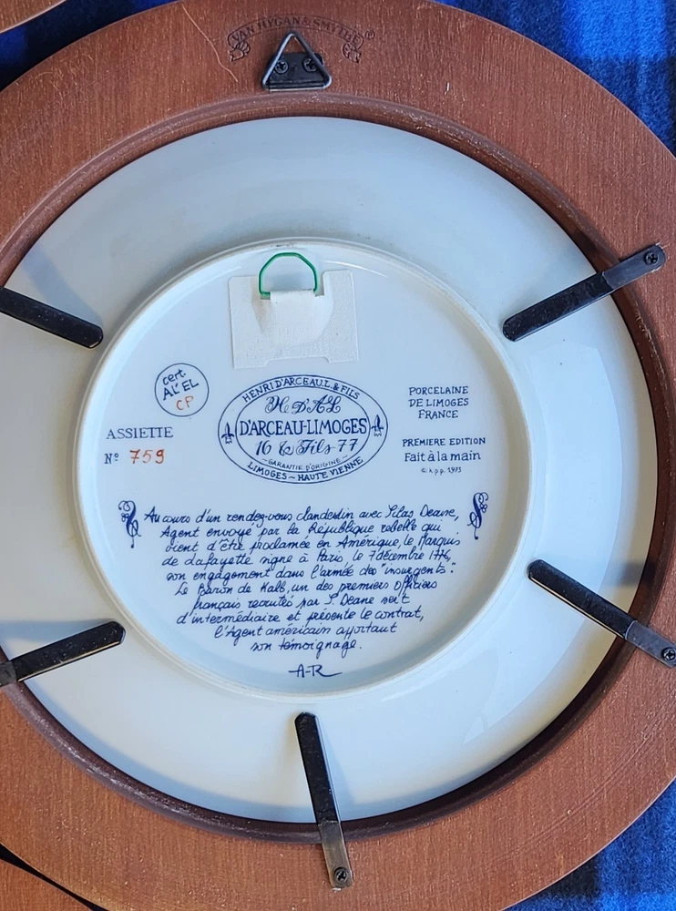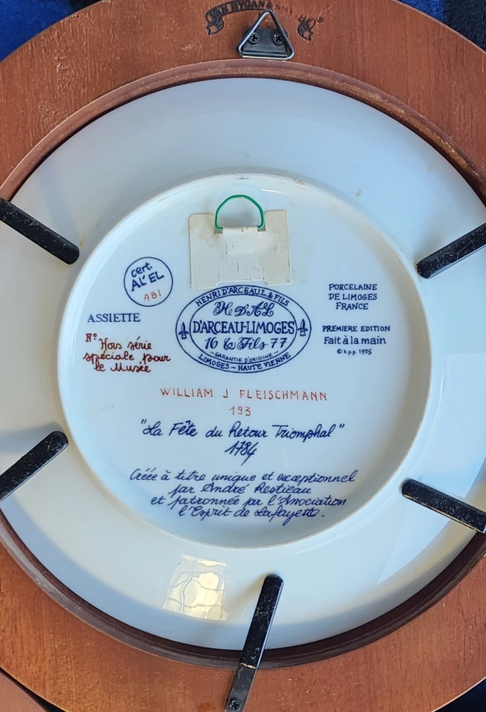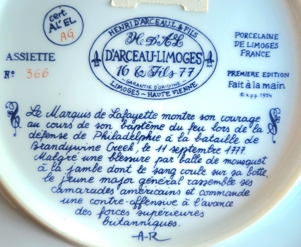 Vintage: Yes Style: American Directoire Time Period Manufactured: 1974 Shape: Round Pattern: Historical Figures Color: White Era: Late 20th Century (1970-1999) Handmade: Yes Type: Collector Plate Theme: American Material: Porcelain Production Style: Art Pottery Occasion: All Occasions Antique: No Brand: Henri D'Arceau L & Fils Production Technique: Pottery Country of Origin: France Item Diameter: 8.5 in Origin: France Features: Date-Lined, Engraved, Limited Edition Culture: American