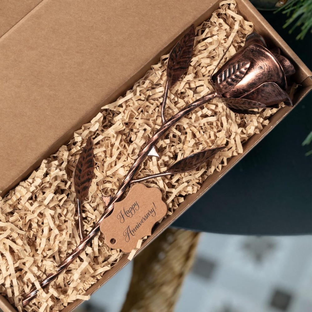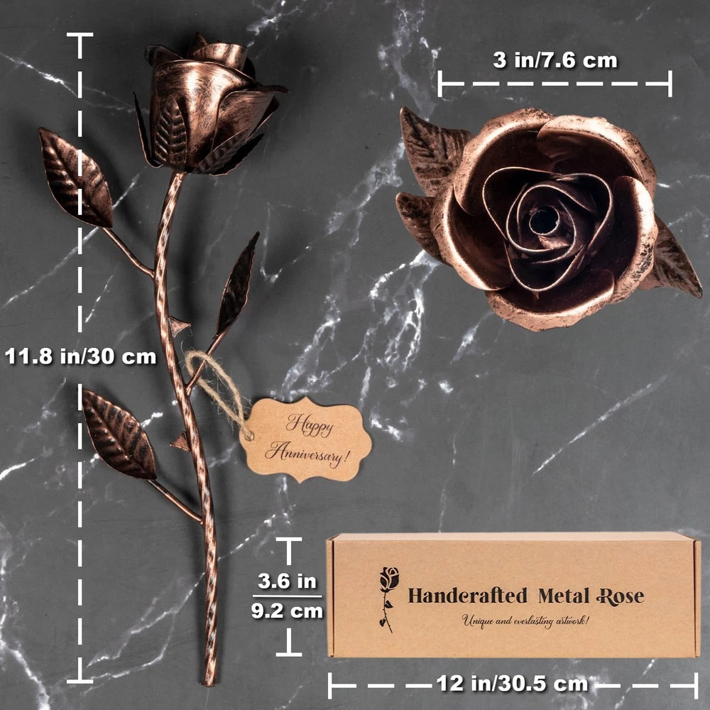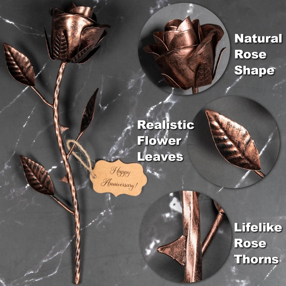 7 Year Anniversary Copper Gift for Her - Copper Gift for Wife 7th Weeding Anniversary Metal Rose for Couples Him Husband, Everlasting Flower 22nd 22 Year Handcrafted Love Stained Artwork Antique Copper Anniversary Gift Ideas: Looking for a ideal 7 year anniversary gift for your special ? Present her with this hand-forged eternal metal rose as a symbol of your everlasting love, never end, never fade away! Copyright registered Everlasting Artwork: Each rose is handcrafted by our experienced craftsmen, of a kind. Every copper gift for 7 year anniversary is unique and has its own distinctive beauty. Makes a great copper gifts for 7th wedding anniversary. Rose measures: 11.8×3×3 inches Great 22nd Anniversary Gift for Her: These metal flowers are the ideal 7 or 22 year anniversary gifts for wife. Also the exquisite copper 7th anniversary gifts for couples or any other occasions like Valentine’s Day, Christmas, etc. Traditional 7th/22nd Anniversary Copper Gift: This handcrafted copper gift for her will never die or wilt, representing your affection for your loved . And the great 22nd anniversary copper gifts to show your wishes to the couple Meaningful Keepsakes: Different from the everyday kind of gift, these 7 year wedding anniversary copper gifts for wife are hand-cast to perfection in every detail. Featuring every realistic detail of a rose, a true milestone memento! Also the ideal copper anniversary gifts for him. Ready to gift! Gift : 12×3.6×3.6 inches