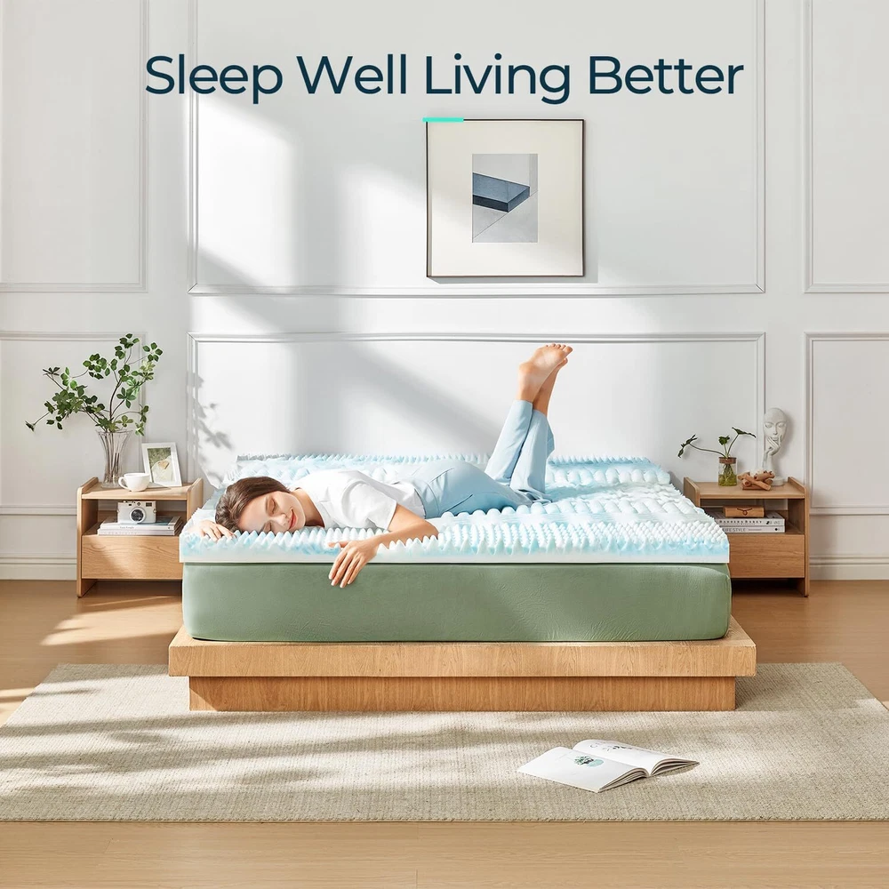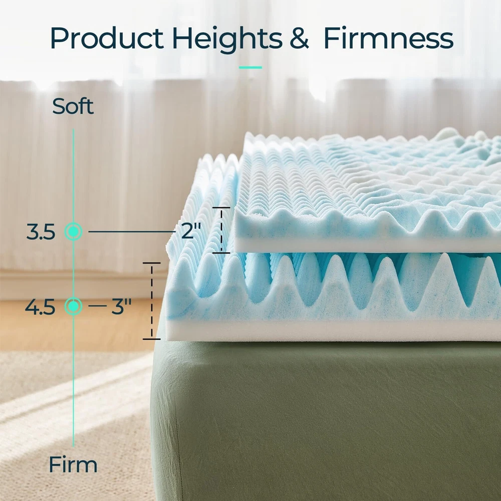 【7-Zone Support】: Crafted with 7 zones design, twin xl mattress topper delivers tailored support for different part of your body. This intelligent construction ensures an even distribution of your body, and engineered varying degrees of softness to provide the right support for your head, shoulders, spine, pelvic, knees, calves and feet. 【Enhanced Cooling Infusion】: Experience all night’s cooling sleep with the temperature regulation feature of our mattress topper. Actual beads are infused to dissipate heat faster while the zone design promotes air ventilating and breathability, ensuring your fresh and cool sleeps and no more sweaty dreams. 【Comfortable Memory Foam】: The slow-rebound feature of our 35D high density memory foam cradles to your body’s unique contours and let your body relax faster as you lay down. Rest easy cause our twin size memory foam mattress topper is CertiPUR-US certified, meeting the standards for smell, material, performance and durability. 【Elevate Your Bed with 】: Are you yearning for a softer and more inviting bed, but held back by its high cost? Our memory foam mattress topper twin offers you an affordable solution by giving your bed a total makeover and effectively extends its life span. 【5-Year 】: Your satisfaction is our first priority. We stand behind our products with 5 years and a 30-day trial period. If you have any questions or unsatisfied with our 7-zone mattress topper, support team is available around the clock to assist you. *Upon unpacking, please kindly allow 48-72 hours for this mattress topper to fully expand.
