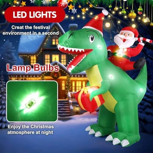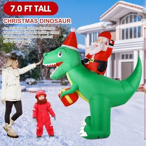 7 ft Christmas Inflatables Outdoor Decorations, Blow Up Dinosaur Christmas