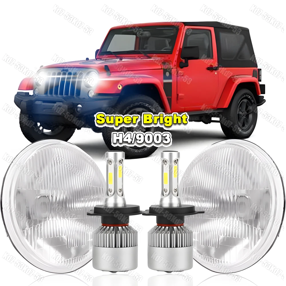 7" Inch Round Diamond Crystal Clear Glass Lens / Headlight Conversion Kit contains everything you need to upgrade your headlights to the newest LED headlight technology while keeping that classic look! -Made with High Quality Glass Lenses - NOT cheap plastic! -Housing has Removable bulb sockets for you to install the new LED bulbs! -Direct Plug & Play design (certain vehicles will require slight modification) -Professional Installation is highly recommended -Warranty 5 years Pair (2 Bulbs Right And Left) 7" Inch Diamond Crystal Clear Semi Sealed Beam Glass Lens Housing Headlights. This Pair Of Headlights Includes 70W Super White LED H4 Light Bulbs. These Headlights Have A Clean Custom Look But Fit Into The Stock Buckets And Plug Into The Stock Wiring Without Modification. These Light Up 500 Percent Brighter And Whiter Than The Standard Stock Sealed Beam Incandescent Headlight Bulbs. These Have The Original 3 Prong Plug Design On The Back So They Will Plug Directly Into The Original Wiring Harness. These Will Fit Any Car Or Truck That Has 2 Round Glass Headlights That Are 7" Inches. H4 LED Bulbs Specifications -Color: 6000K Cool White -Power Consumption: 100 Watt -Luminosity: 10,000 LM -360 Degree / P2 Series CSP Chip Perfect Beam Angle -H4 - Dual Beam Function (You will have HIGH AND LOW!) -500% Brighter than Stock Halogen -Built in IC Circuit (Current Regulator)-Prevents LED Damage From Voltage Variations & Spikes. -Lifespan: 50,000 Hours -Operating Voltage: DC 12V / 24V -Amperage: 1.9A - 2.9A -Maintenance free, Waterproof IP67, Shockproof -Warranty 5 years Contents: - 2x Headlight Housings - 2x H4 LED Bulbs (Hi/Lo Dual Beam)