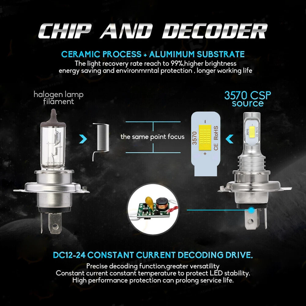 Note: Without mounting bracket, some models may need mounting bracket! 7" Inch Round Diamond Crystal Clear Glass Lens / Headlight Conversion Kit contains everything you need to upgrade your headlights to the newest LED headlight technology while keeping that classic look! -Made with High Quality Glass Lenses - NOT cheap plastic! -Housing has Removable bulb sockets for you to install the new LED bulbs! -Direct Plug & Play design (certain vehicles will require slight modification) -Professional Installation is highly recommended -Warranty 5 years Pair (2 Bulbs Right And Left) 7" Inch Diamond Crystal Clear Semi Sealed Beam Glass Lens Housing Headlights. This Pair Of Headlights Includes 70W Super White LED H4 Light Bulbs. These Headlights Have A Clean Custom Look But Fit Into The Stock Buckets And Plug Into The Stock Wiring Without Modification. These Light Up 500 Percent Brighter And Whiter Than The Standard Stock Sealed Beam Incandescent Headlight Bulbs. These Have The Original 3 Prong Plug Design On The Back So They Will Plug Directly Into The Original Wiring Harness. These Will Fit Any Car Or Truck That Has 2 Round Glass Headlights That Are 7" Inches. H4 LED Bulbs Specifications -Color: 6000K Cool White -Power Consumption: 100 Watt -Luminosity: 8,000 LM -360 Degree / P2 Series CSP Chip Perfect Beam Angle -H4 - Dual Beam Function (You will have HIGH AND LOW!) -500% Brighter than Stock Halogen -Built in IC Circuit (Current Regulator)-Prevents LED Damage From Voltage Variations & Spikes. -Lifespan: 50,000 Hours -Operating Voltage: DC 12V / 24V -Amperage: 1.9A - 2.9A -Maintenance free, Waterproof IP67, Shockproof -Warranty 5 years Contents: - 2x Headlight Housings - 2x H4 LED Bulbs (Hi/Lo Dual Beam)