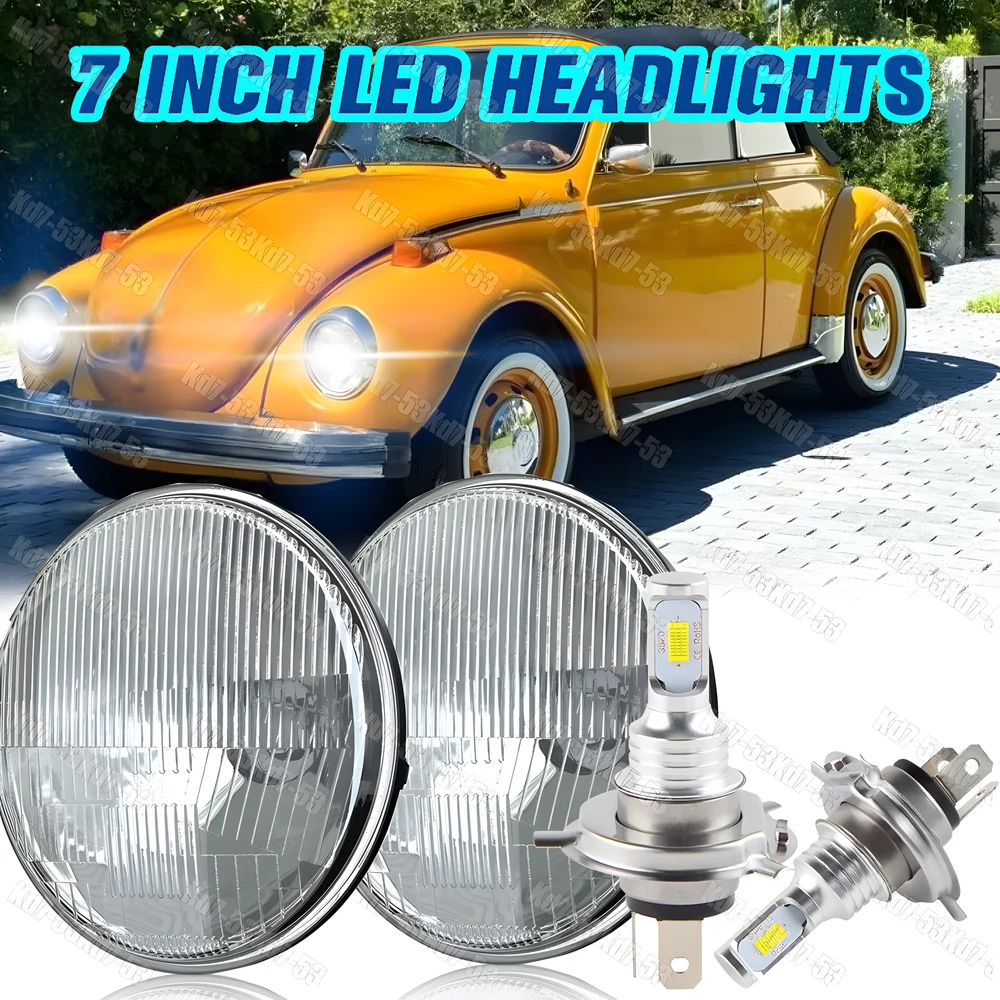 7" inch Round LED Projector Hi/Lo Beam Headlights Kit For 1950-1979 Beetle