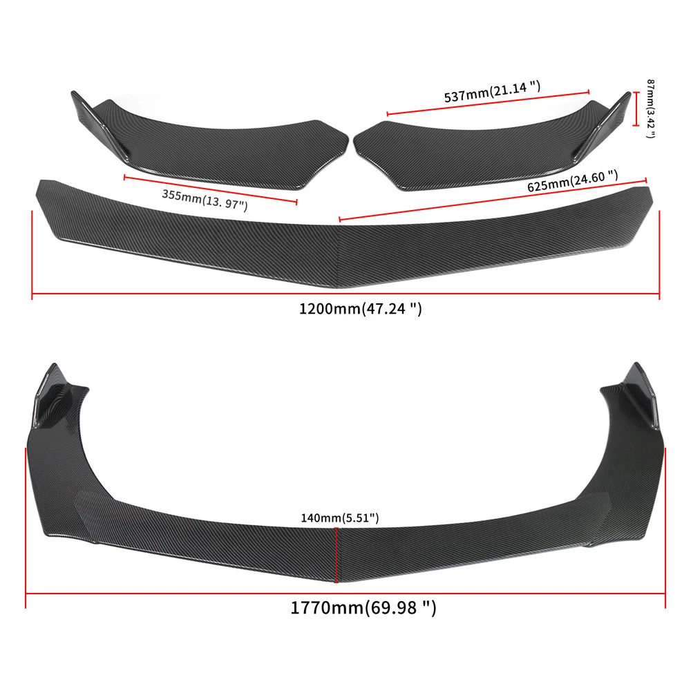 Package includes: 1 x Front Lip Spoiler (4 Pieces) 2*Strut Rods Come with screws Features: 100% Brand New JDM Style Front Bumper Chin Lip Splitter Color: Carbon look Great Upgrade For Your vehicle's exterior look Easy installation ( professional installation required ) Improves the aerodynamics of Your Vehicle Gives your vehicle an improved appearance and Style Made From High Quality ABS that is Very Flexible and won't Crack Gives your vehicle a sporty ang aggressive look Strut Rods ★ Length : 15cm ★ Material : Stainless Steel ★ Quatity : 2 x Stainless Steel Bumper Lip Splitter Tie Rod Bars. ( Stainless steel has weldability, corrosion resistance and heat resistance.) ★ Position : This exquisite and compact lever is mainly fixed on the body components (front and rear surround, skirt, head and tail lip), and can also be installed in the car center console or interior trim panel ★ Require : Product will require drilling holes into the bumper and/or lip/diffuser to attach safely to the vehicle. On Jan 16, 2025 at 05:09:19 PST, seller added the following information: