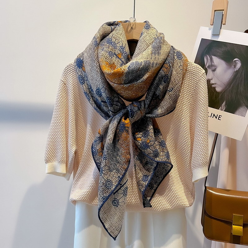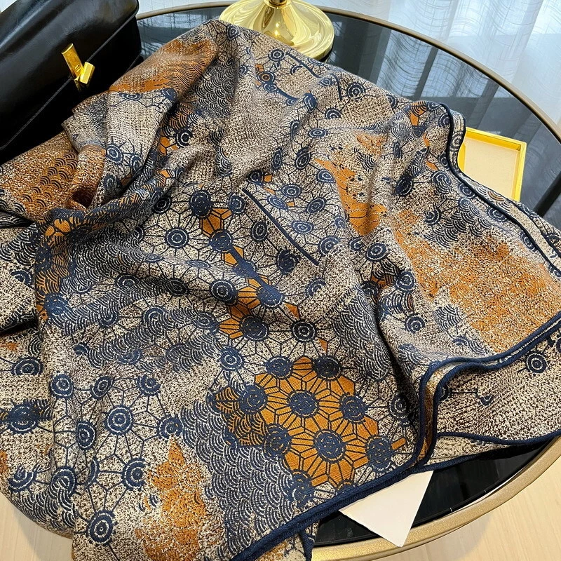 $ 7.9270% Cashmere 30% Silk Double Face Square Shawl with Chain Print 53 Inch