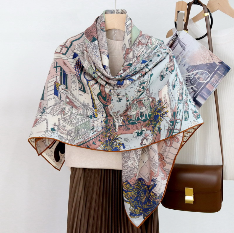 Season: Fall Theme: fashion Item Width: 135cm Features: Neck Warmer Pattern: Floral Type: Scarf Style: Square Scarf Fabric Type: silk and cashmere Vintage: Yes Item Length: 135cm Handmade: Yes UPC: Does not apply Department: Women gtin13: Does not apply Material: Cashmere, Silk Brand: Unbranded Color: Multicolor