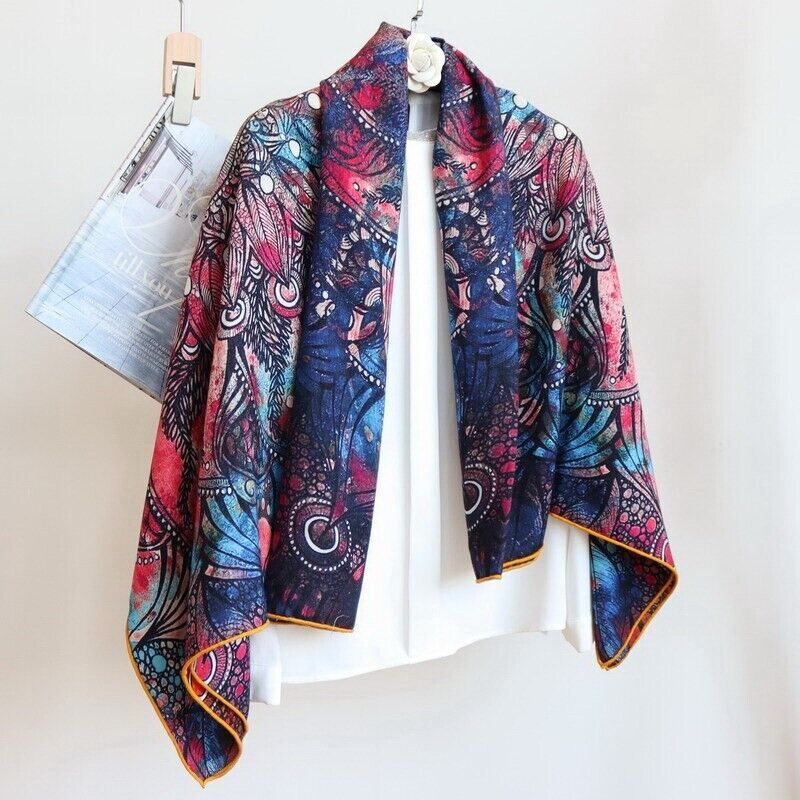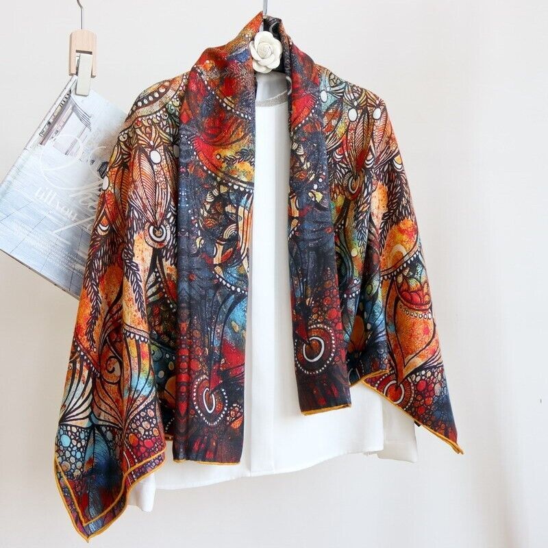 70% Cashmere 30% Silk Double Face Square Shawl with Floral Print 53"