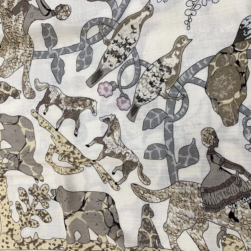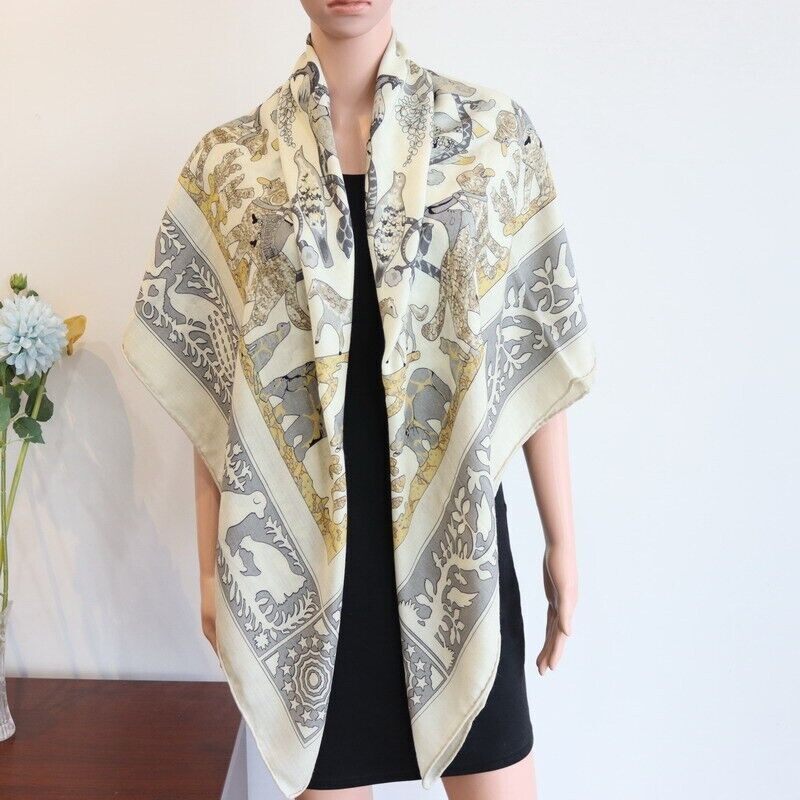 70% Cashmere 30% Silk Double-Sided Square Scarf Shawl 53" Floral Print