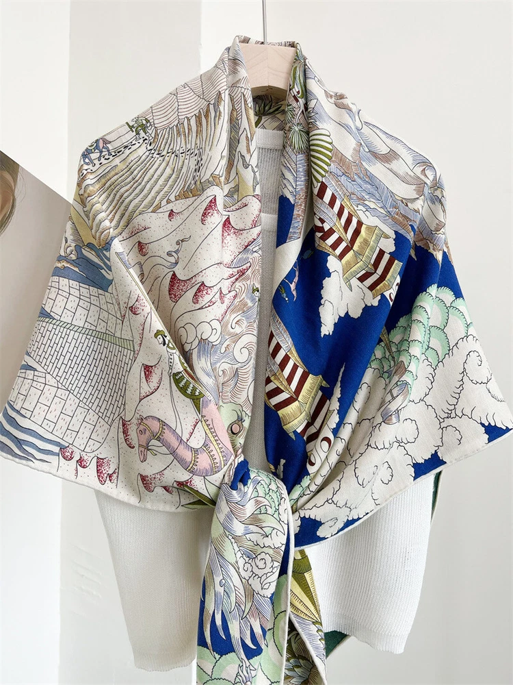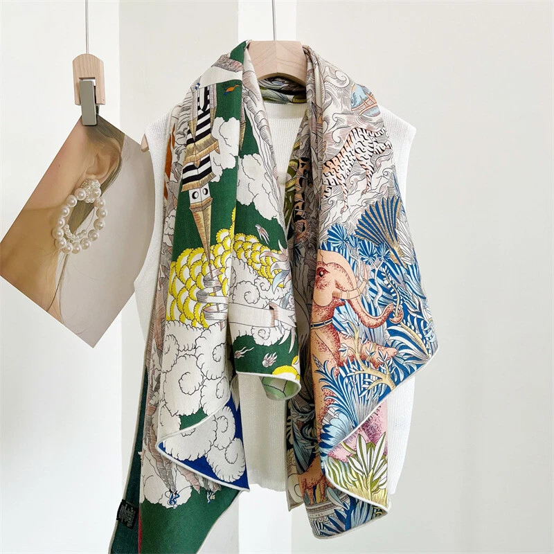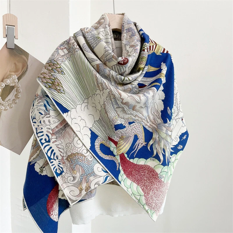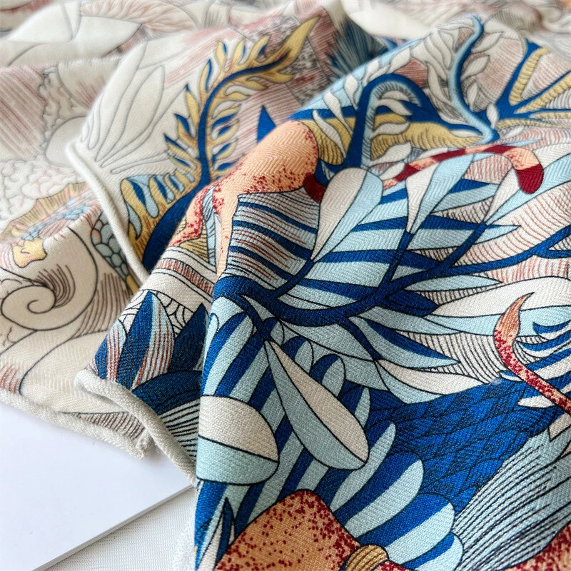 Luxury 70% Cashmere 30% Silk Camellia Print Double Face Wrap Scarf 70x25