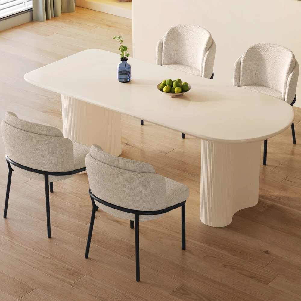 About this item ★ Size: Dining table size: 70" x 31.49" x 29.52" ★ Rounded Edge Design: Our dining table distinguishes itself with gracefully rounded corners, setting it apart from conventional rectangular designs. The soft, curved edges not only create a more inviting and warm ambiance but also enhance safety for those seated around it, making it an ideal choice for households with young children or pets. ★ Superior Construction Materials: Our dining table is meticulously crafted from robust high-quality board material, utilizing four distinctive techniques and eco-friendly board to ensure unparalleled strength and stability. The utilization of premium materials and expert craftsmanship guarantees that this dining table will not only be an aesthetically pleasing addition to your living space but also a resilient and enduring piece of furniture that can withstand the test of time. ★ Distinctive Table Legs: The Guyii kitchen table showcases exquisitely designed wavy table legs that imbue the design with a captivating three-dimensional aspect. These legs are not only visually striking but also provide steadfast support, thanks to the table's solid floor-level construction and remarkable weight-bearing capability. Whether you're hosting an elaborate dinner party or enjoying a casual meal with loved ones, this table effortlessly combines style and functionality to impress. ★ Effortless Cleaning: This dining table is thoughtfully crafted with materials that prioritize ease of cleaning without compromising on style or durability. The tabletop boasts a smooth surface that offers a seamless and wipeable finish, enabling spills, stains, and food particles to be effortlessly removed with a simple swipe of a cloth. Bid farewell to stubborn marks or lingering residue, as this table simplifies cleanup to an absolute delight. ★ 100% Customer Guarantee - Guyii provides you with quality products and excellent customer service. If you encounter any problems with the dining table, please do not hesitate to contact us, we will provide you with fast and friendly customer service. Get yours and more for family and friends TODAY!