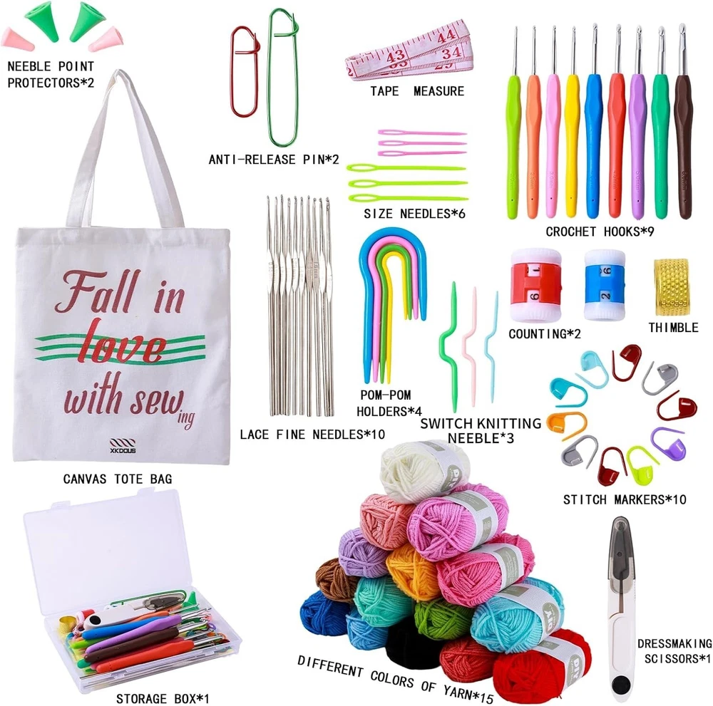 Product Description: Complete Crochet Set: This crochet kit contains 15 different colors of yarn, 9 crochet hooks, 10 lace fine needles, 10stitch markers,, 5 bead pins, 4 pom-pom holders, 3 sewing pins, 2 counting. 15 Colors Crochet Yarn Kit: Our Learn to crochet kits for adults beginner includes a super soft crochet yarn set with 15 rich colors. Quality Yarn Selection: Soft and durable yarns in vibrant colors, perfect for creating beautiful projects. Crochet Bag Organizer: Keep your crocheting kit for beginners tidy with the crochet storage organizer for crochet accessories and supplies. Ideal Gift Choice: Whether for yourself or a loved one, this beginner crochet kit is the perfect gift for anyone eager to explore the world of crochet. Payment: We accept Payoneer, Visa,Immediate Payment is required! Shipping : We provide FAST, FREE SHIPPING to the Continental 48 US States. We do not ship to Alaska, Hawaii, APO/FPO, PO Boxes, or any US Protectorates. PLEASE PROVIDE A PHYSICAL ADDRESS. Your order will be processed within the allotted time frame. Most items ship out with 3 Business Days after payment is received. Please not that some orders may be shipped in multiple packages. Return: We take our reputation seriously. If you have any questions or concerns, please contact us and we will respond back to your message within 24 hours.