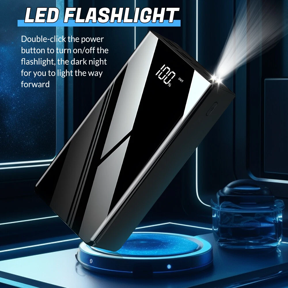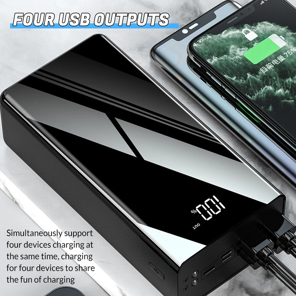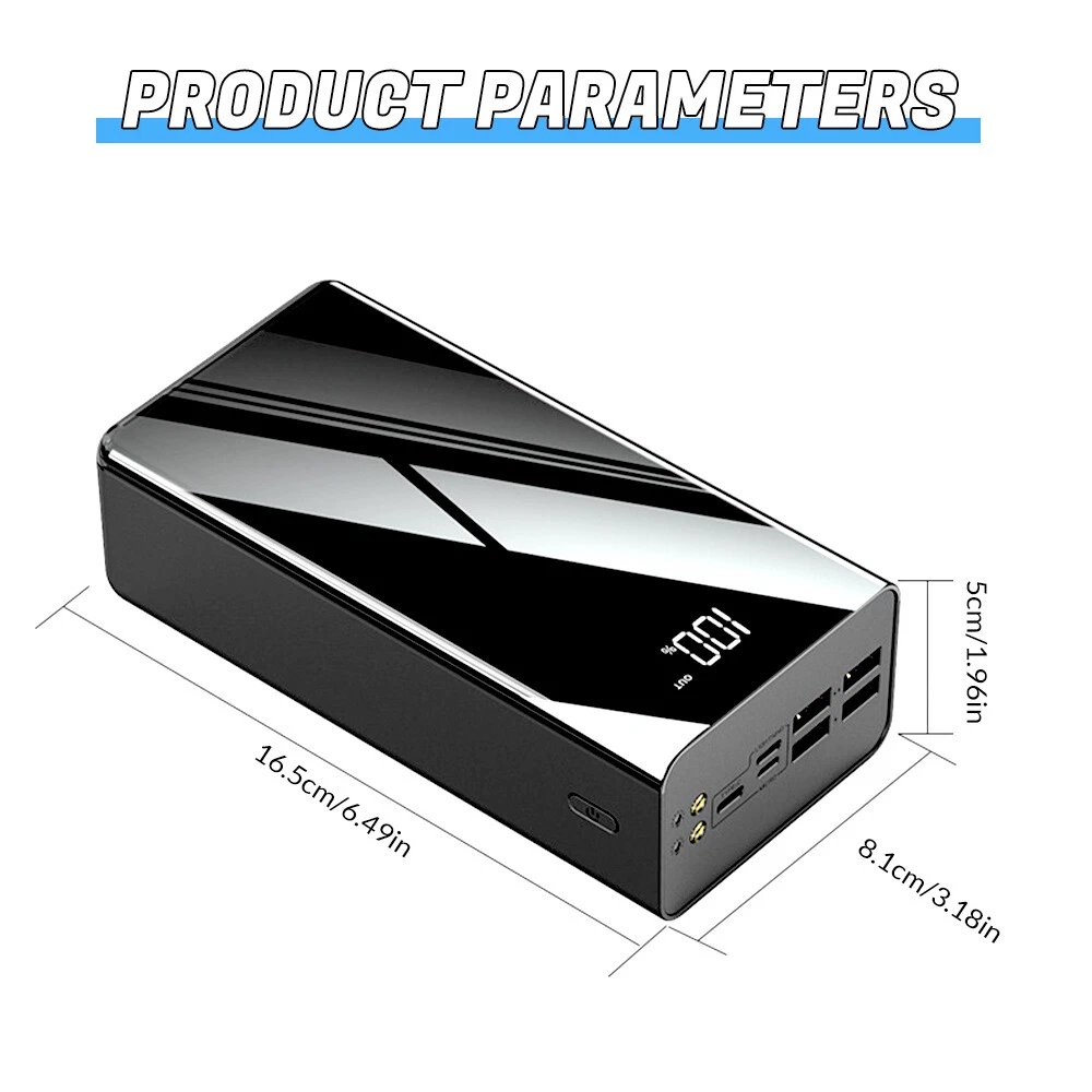 A:120W 70000mAh Power Bank Feat ures : 【 7 0 0 00mAh Ultra High Capacity】This power bank with 70000mAh capacity is perfect for outdoor using like camping, hiking,boating etc,it can also be used for home emergency. It can charge your electronic devices 12-20 times. Keep your phone always on,no need to worry about out of battery. 【4 Output and 3 Input】4 USB output ports design allow you to charge 4 devices simultaneously. Compatible with most of cell phones like iPhone, Samsung Galaxy Series,Huawei, earphones, Bluetooth speaker, mini fans and other USB enabled devices. 【Accurate LCD Power Digital Display】This Power Bank built-in advanced smart digital display technology. The power display accuracy is up to 100% which ensures you know the remaining power clearly and never missing recharging in time. 【Super Bright LED Light】The power bank is equipped with a super bright LED light, which can be used as a desk lamp at home for easy reading , it is a perfect and must-have outdoor companion for outdoor life such as staying in a car, camping, traveling, outdoor photography, fishing, astronomical observation .No matter where you are, it can bring you brightness in the dark. Specifications: Bat tery type: lithium polymer battery Bat tery Capacity: 7 0 0 00mAh Charging power: 120w Input(Micro): DC5V=2.1A Input(Type-C): DC10V=6.5A Output(USB): DC20V=3 25A Output(PD): DC9V=2.25A Function : charging treasure self detachable cable camping light intelligent digital display support 7 devices charging at the same time 4USB output + 3 input (Apple, Type-C, micro) adapted to three charging port charging Package list: 1 x Power Bank 1 x Charging Cable 1 x User Man nual =========================================== B:66W 30000mAh Power Bank Specification: Item: 66W Super Fast Charge Power Bank Capacity: 30000mAh Input: Micro USB input: 5V/2A Type C Input: PD20W Output: USB Output: 22.5W Type C Output: PD20W Total power: 66W power bank Material:ABS Plastic Color: Black Feature: Support Fast Charge Support PD 20W Two-Way Fast Charging Support PD 3.0 Fast Charging Support Type C Input and Output With LED Digital Display Package Included: 1x Power Bank 1x USB Cable 1x User Manual ======================================= C: 66W 70000mAh Power Bank Feat ures : 【 7 0 0 00mAh Ultra High Cap acity】 This power bank with 70000mAh capacity is perfect for outdoor using like camping, hiking,boating etc,it can also be used for home emergency. Keep your phone always on,no need to worry about out of battery. 【4 Output and 3 Input】 4 USB output ports design allow you to charge 4 devices simultaneously. Compatible with most of cell phones like iPhone, Samsung Galaxy Series,Huawei, earphones, Bluetooth speaker, mini fans and other USB enabled devices. 【Accurate LCD Power Digital Display】 This Power Bank built-in advanced smart digital display technology. The power display accuracy is up to 100% which ensures you know the remaining power clearly and never missing recharging in time. 【 Super Bright LED Light 】 The power bank is equipped with a super bright LED light, which can be used as a desk lamp at home for easy reading , it is a perfect and must-have outdoor companion for outdoor life such as staying in a car, camping, traveling, outdoor photography, fishing, astronomical observation .No matter where you are, it can bring you brightness in the dark. 【 Safer and longer 】 Built-in high-quality lithium polymer battery and protection, longer standby time, protect your equipment from overcurrent, overheating and overcharge damage, safe and reliable. Specifications: Battery type: lithium polymer battery Input:PD20W fast charging + 5V/2.1A Output:66W super fast charging + PD20W super fast charging Charging power:PD22.5W Product actual capacity: 7 0000 mAh Compatible brands: Multi-device universal Suitable for:Suitable for outdoor, camping, traveling, business trips and other portable use Function : charging treasure camping light intelligent digital display support 7 devices charging at the same time 4USB output + 3 input (Apple, Type-C, micro) adapted to three charging port charging Package list: 1 x Power Bank 1 x User Man nual