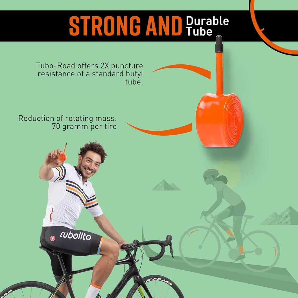 【Versatile Compatibility】Tubolito’s TPU inner tube 700C fits tires from 18mm to 32mm, compatible with both rim and disc brakes a wide range of road bikes. 【Enhanced Durability】Tubolito's road bike tubes are twice as strong as standard butyl tubes, ensuring superior toughness worry-free cycling. 【Reduced Rotating Mass】By reducing 70 grams per tire, Tubolito tubes improve bike handling and performance, weighing almost 2/3rds less than regular tubes. 【Double Puncture Protection】Providing twice the puncture resistance of standard butyl tubes, Tubolito’s road bike tubes deliver reliable protection road tires between 18mm to 32mm in width, ensuring smooth rides. 【Easy Installation】Tubolito’s 700C bike tube installs effortlessly in 3 steps: remove old tube, insert new one, and check pressure. Simple and -free. 【Varied Valve Options】Select from 42 mm (38 grams), 60 mm (39 grams), and 80 mm (40 grams) Presta valves to match your bike setup and preferences precisely. Product Description